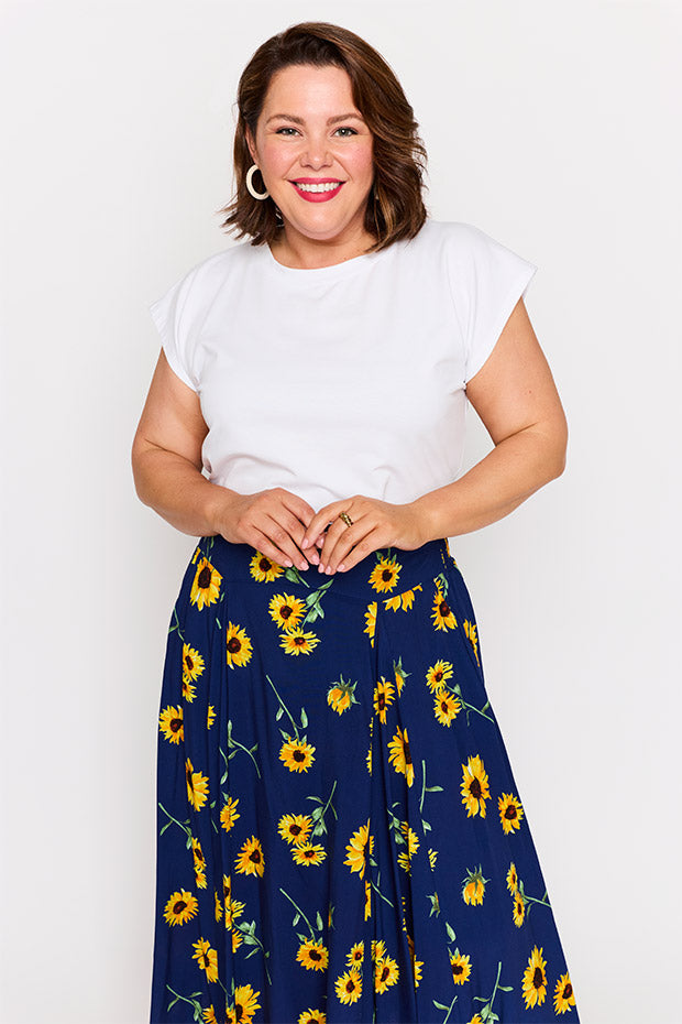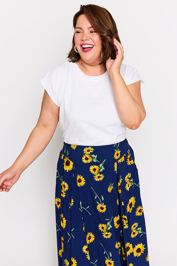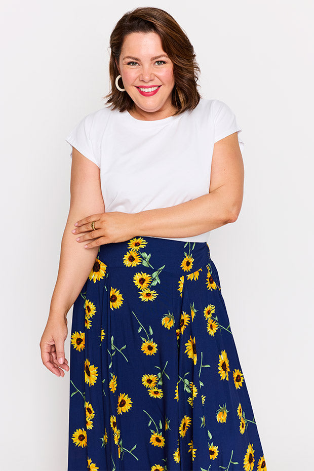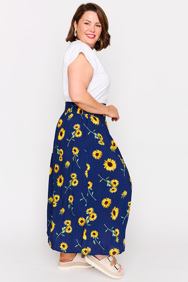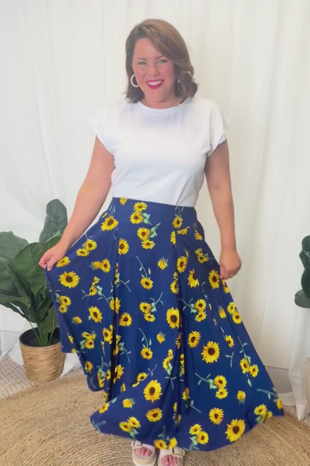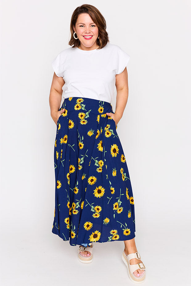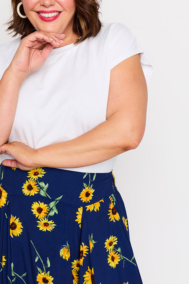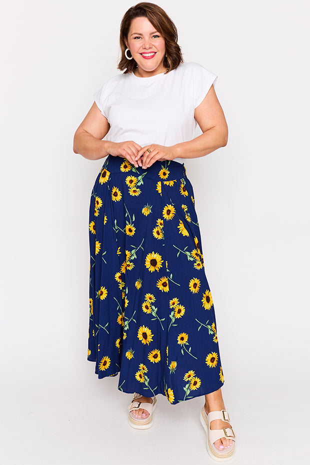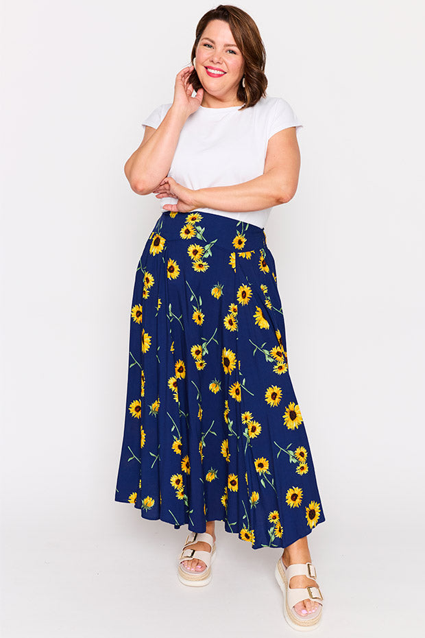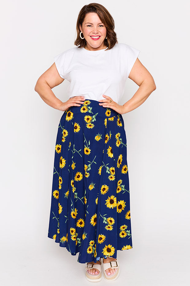 Brighten up your day with this Katelyn Skirt in our cheerful Sunflower Print. Light, breezy, and effortlessly stylish—perfect for picnics, brunch, or sunny strolls.