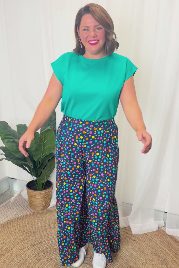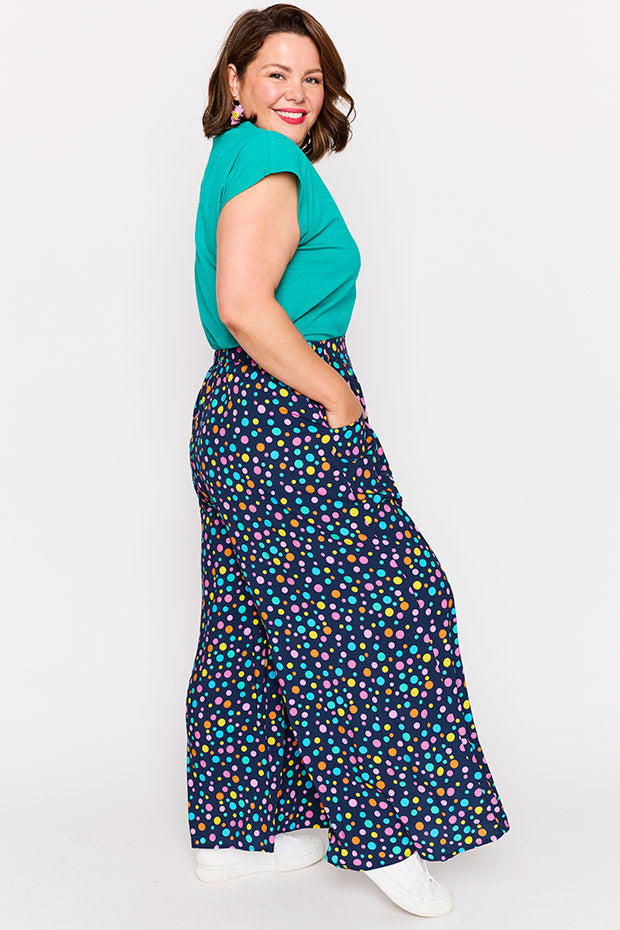 Brighten your day in this Xane Pant, in our playful Smarty Spot print exclusively designed by our very own Kim from Zonkt®. With it's fun print, it's the perfect piece to add a pop of joy to any occasion.