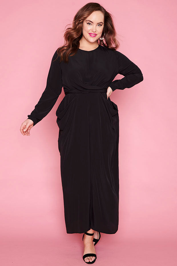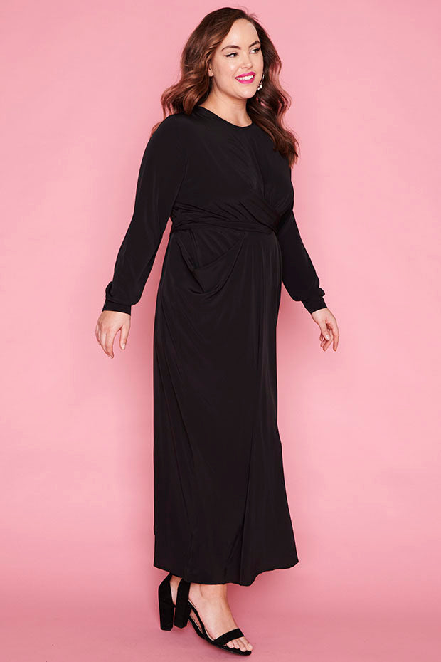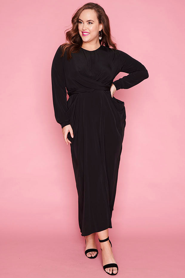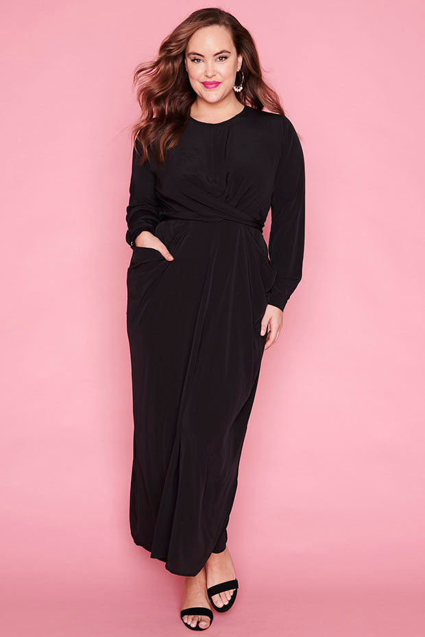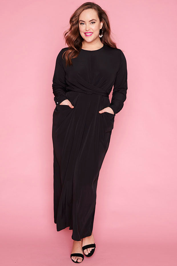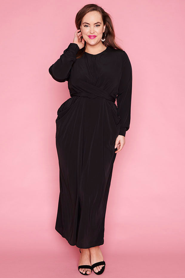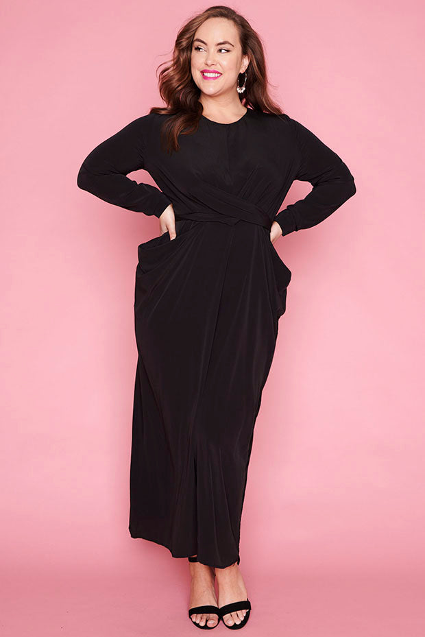 Wow ,a magical dress with volumes of sensual womanly style.Delightfully soft draping fabric and clever crossover bodice design that you have the power to adjust to your whim .Love it’s long line and the pockets that give your hips the sacred geometry they deserve ,this maxi will cast a spell on you 💋.