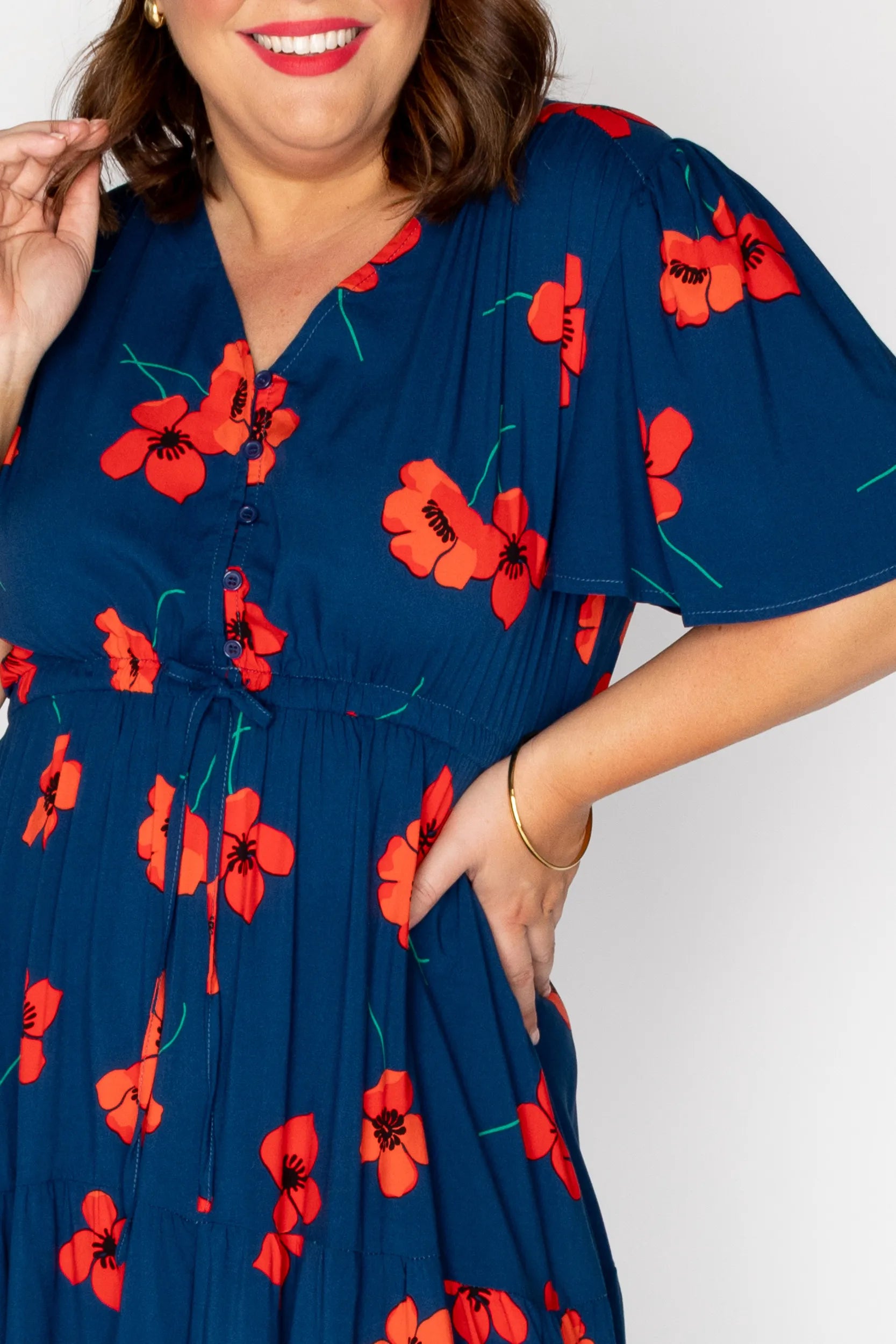 Generous fit - perfect for my broad shoulders and large chest. I'm not overly tall (168cm) but this is a great length. It did shrink (shorten) a bit in the wash, but now with these rayon dresses I plan ahead to give myself the time to give them a quick steamy iron to relax the fibres and get the length back. The print is just so lovely. I've received many compliments āŗļø