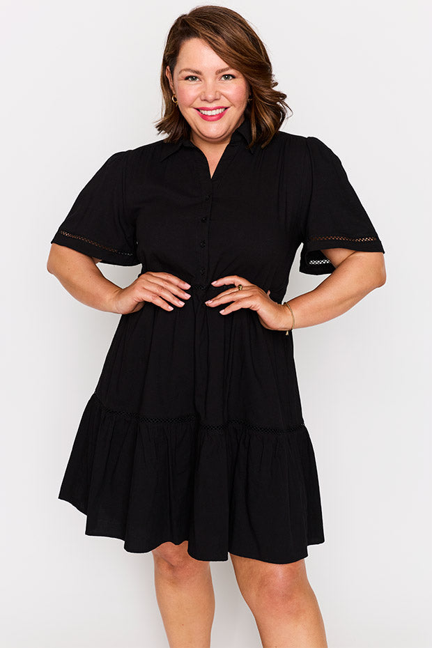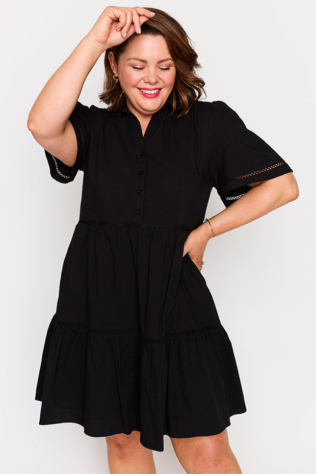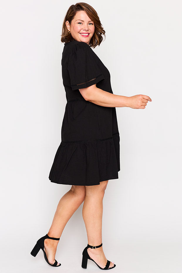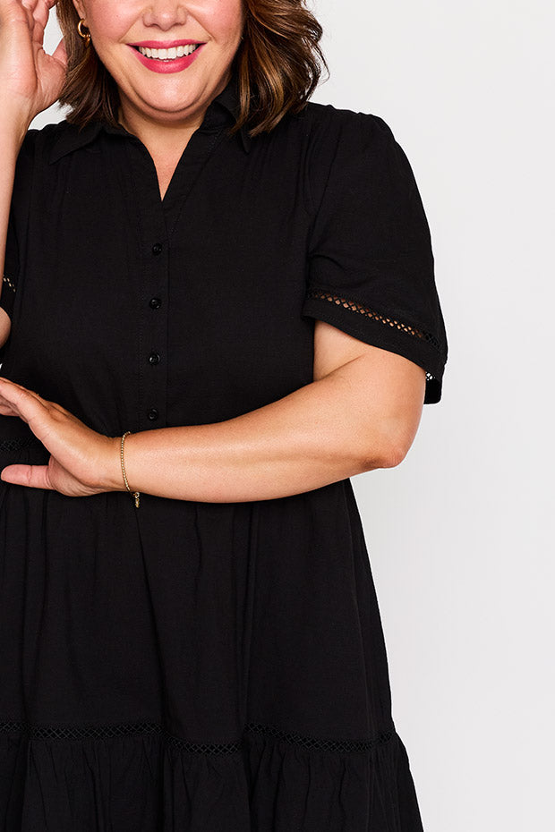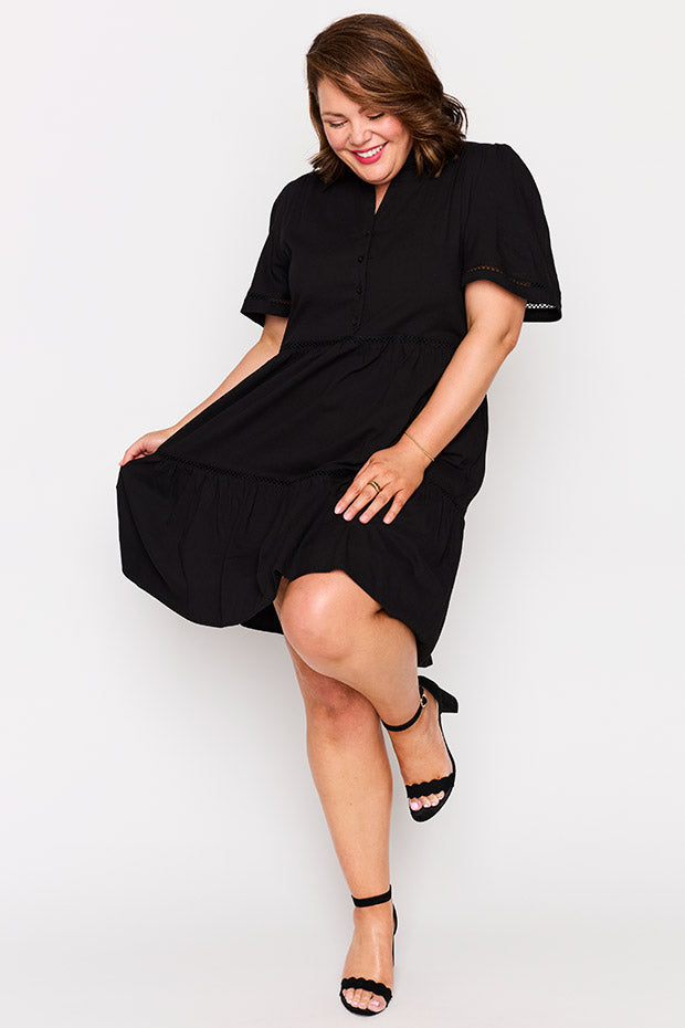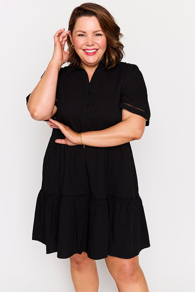 Absolutely amazing black dress. So pretty and great for cas or dinner out. Lovely fit and shape.