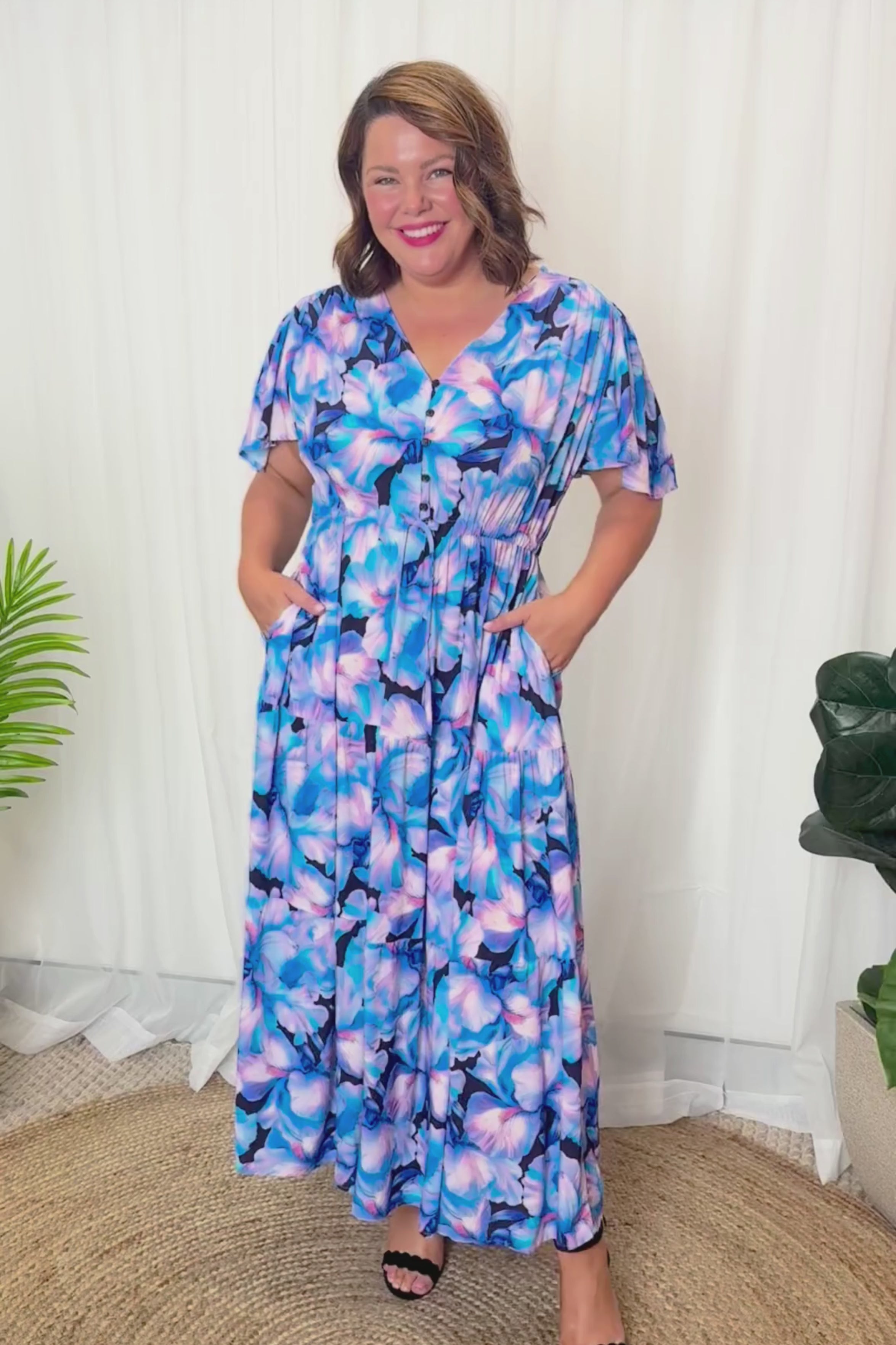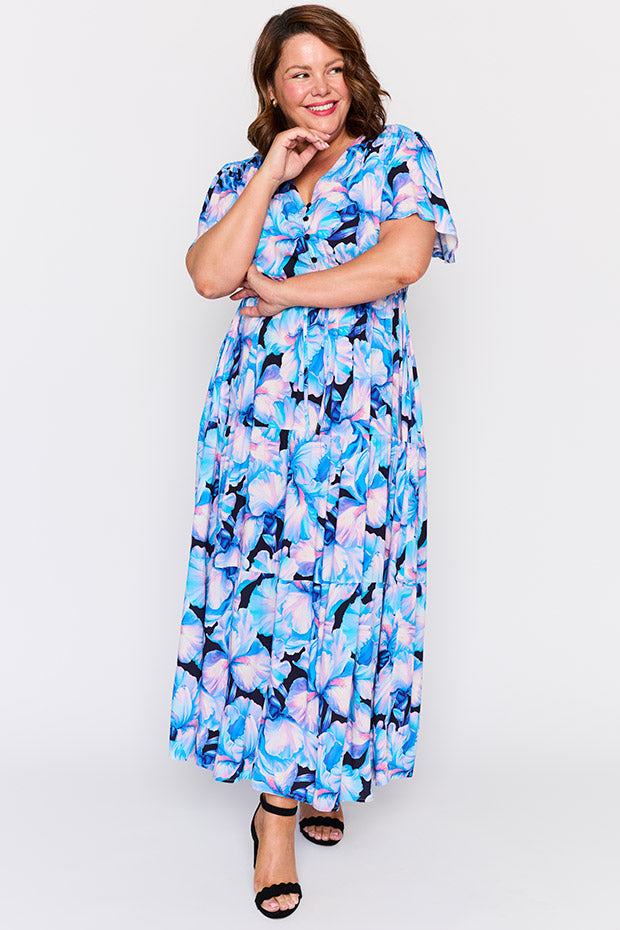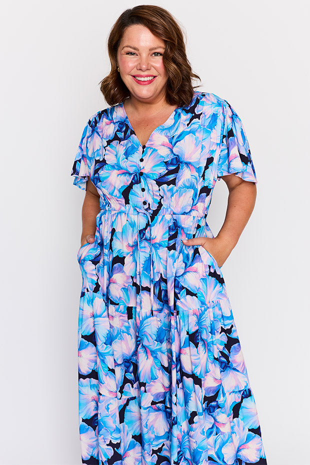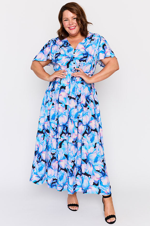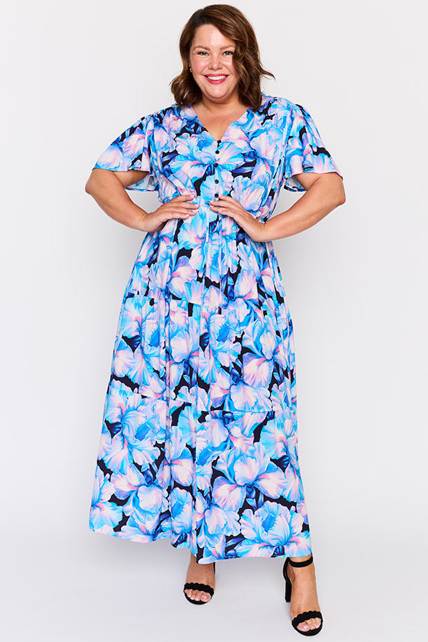Brighten up your day with this Alexia Dress, in our serene Iris Moon Print. Light, breezy, and effortlessly stylish - this Summer Dress is perfect for picnics, brunch, or garden strolls.