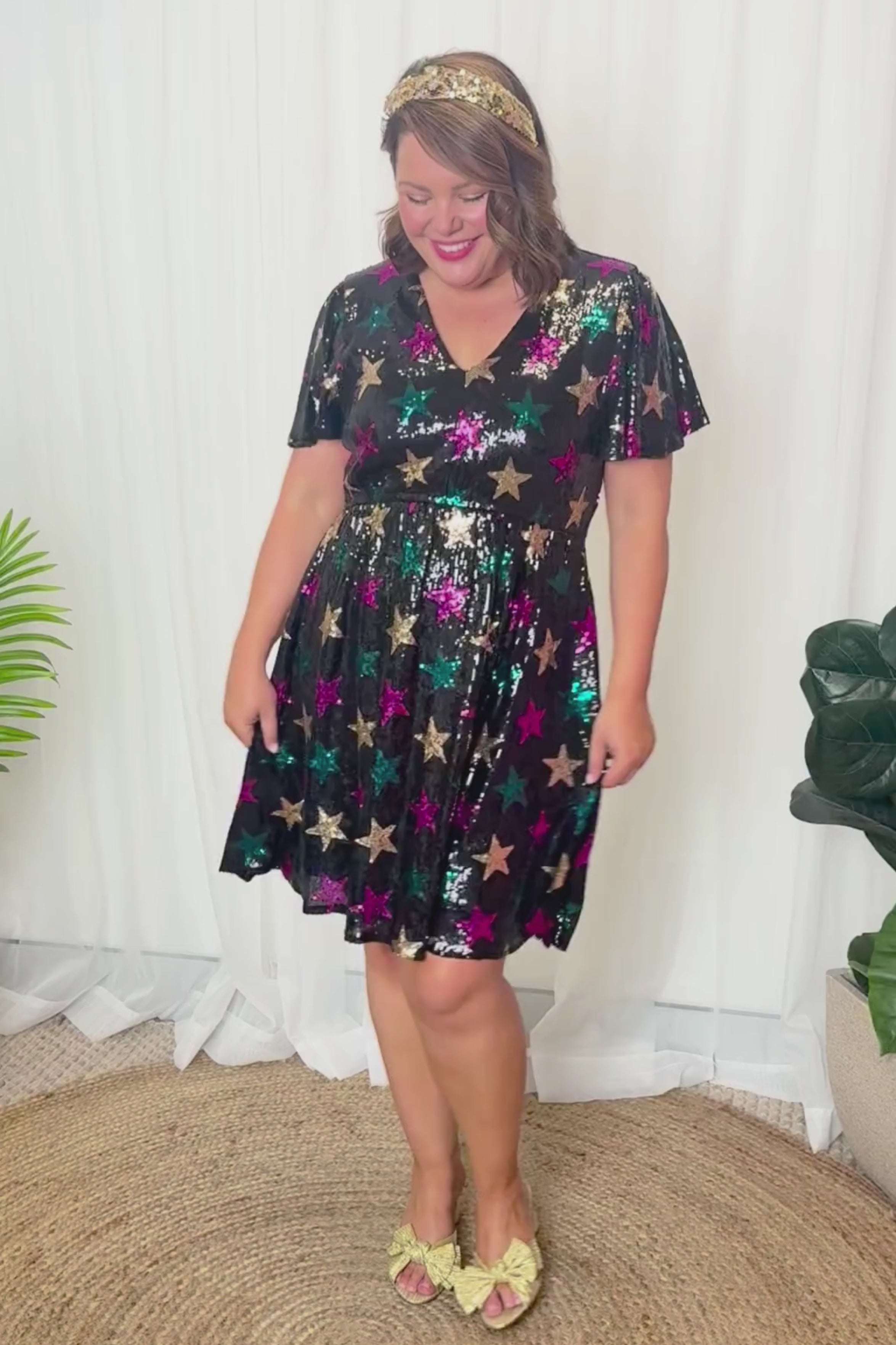 Turn heads in the Angelica Dress. A dazzling sequin Cocktail Dress adorned in our Star design. Equal parts Party Dress and statement piece, it’s designed to shine at any evening event. With its elegant sparkle and feminine charm, Angelica is your go-to for unforgettable nights out.