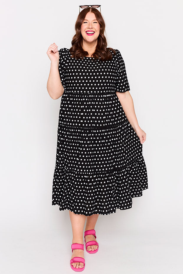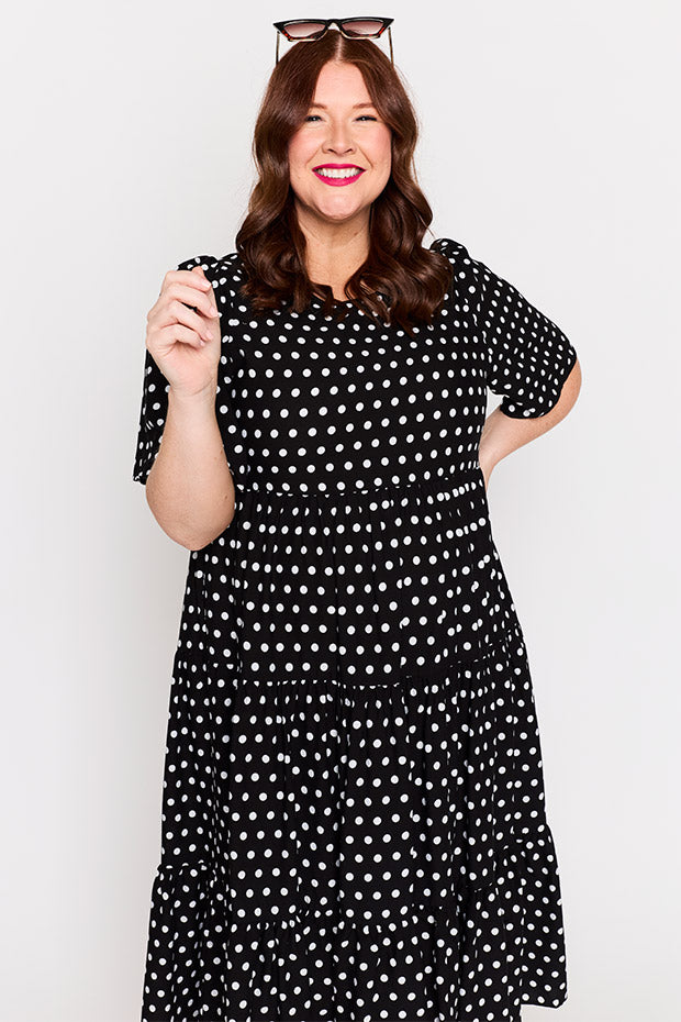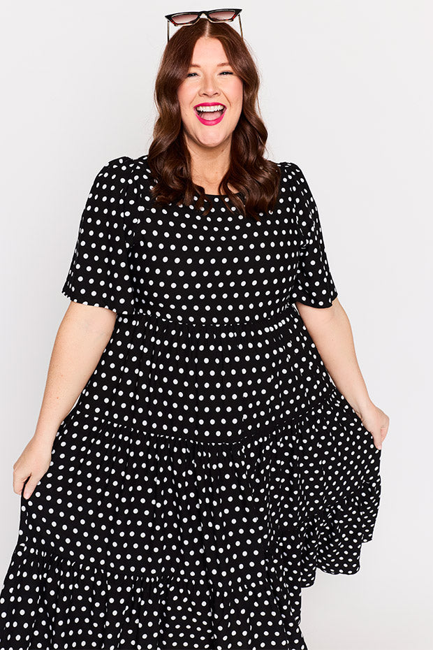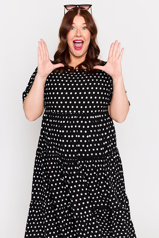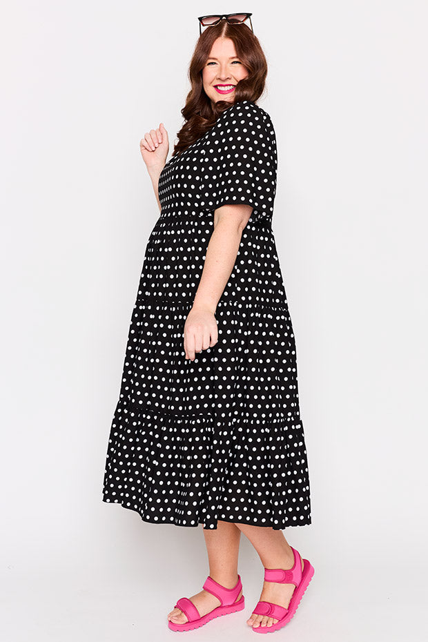 Add a classic staple to your wardrobe with our Charli Dress in our Pretty Spot print, designed by our very own Kim from Zonkt®. Classic with a modern twist, our Pretty Spot print is perfect for effortless everyday style. Chic, versatile, and easy to dress up or down.