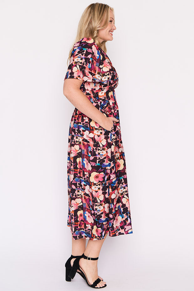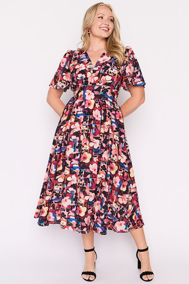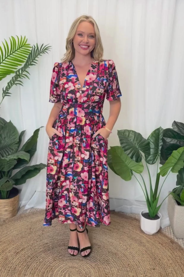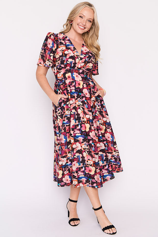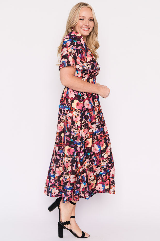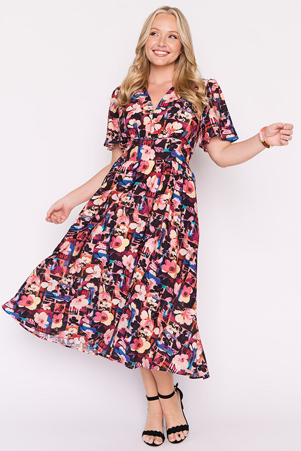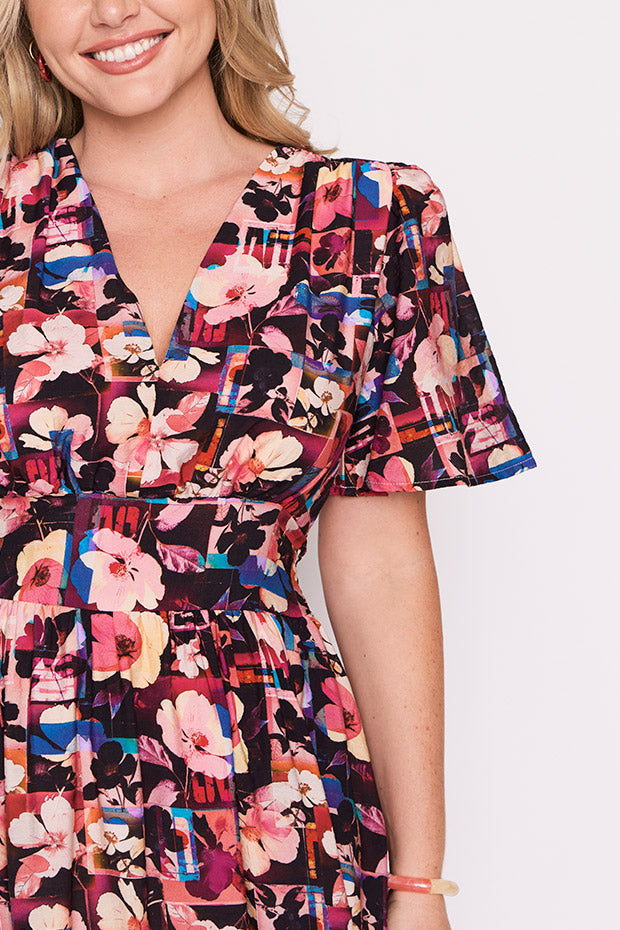 You can never have too much colour with our Evie Floral Collage Dress ✨🌼