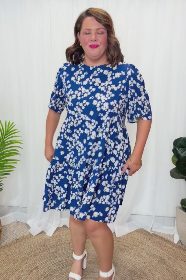 Brighten up your day with this Izzie Dress in our cheerful Blue Petal Whimsy Print. Light, breezy, and effortless Summer Dress—perfect for picnics, brunch, or sunny strolls.