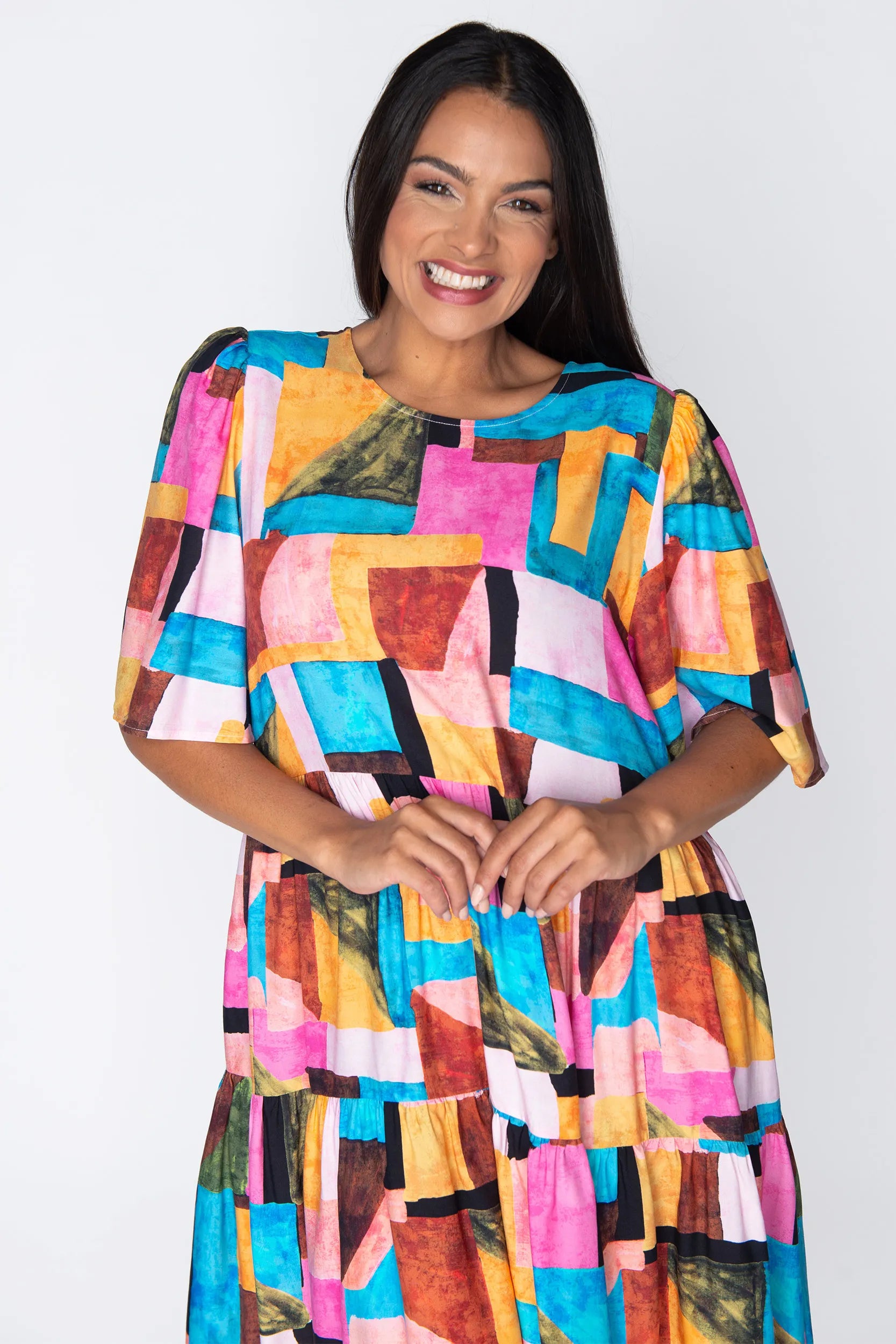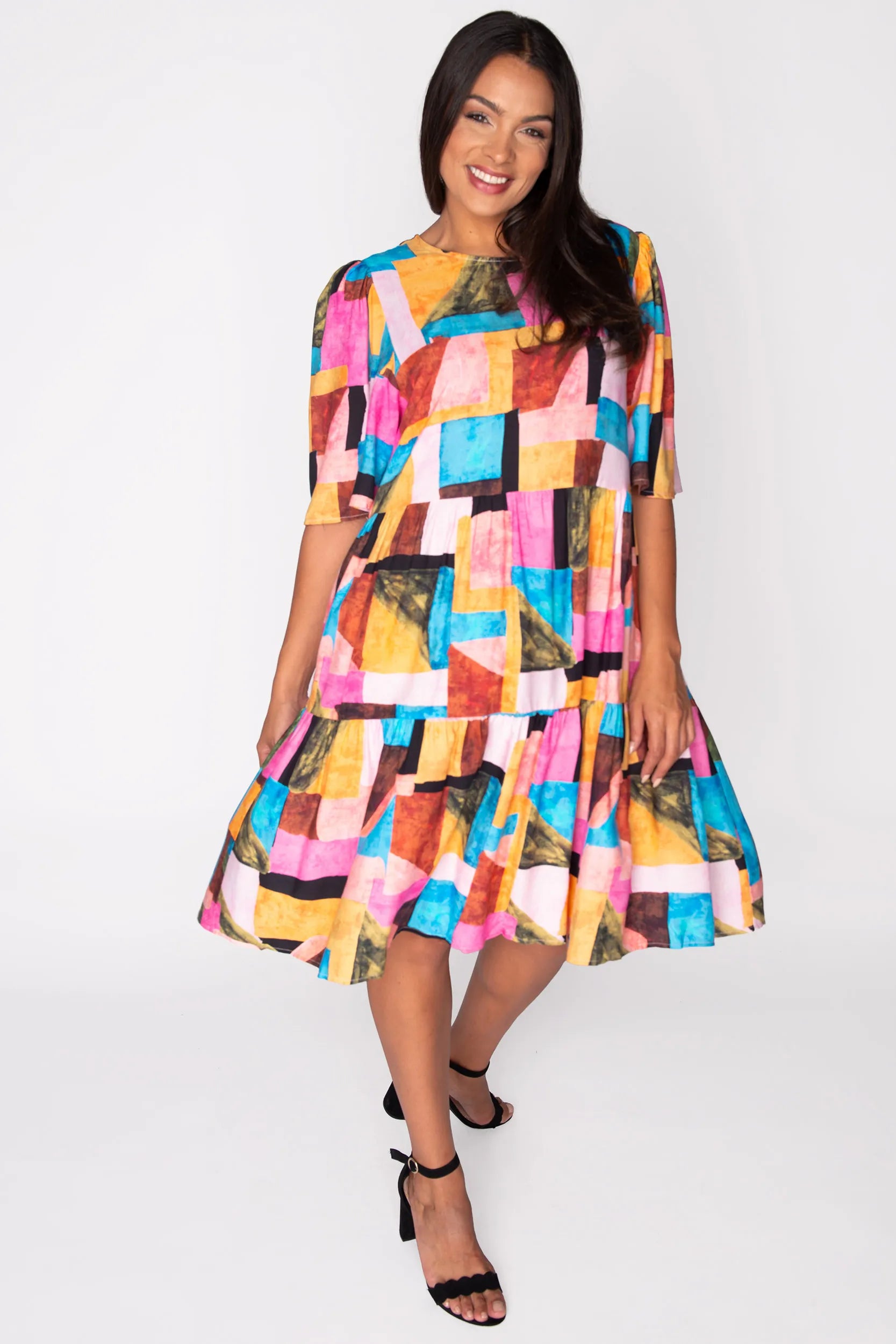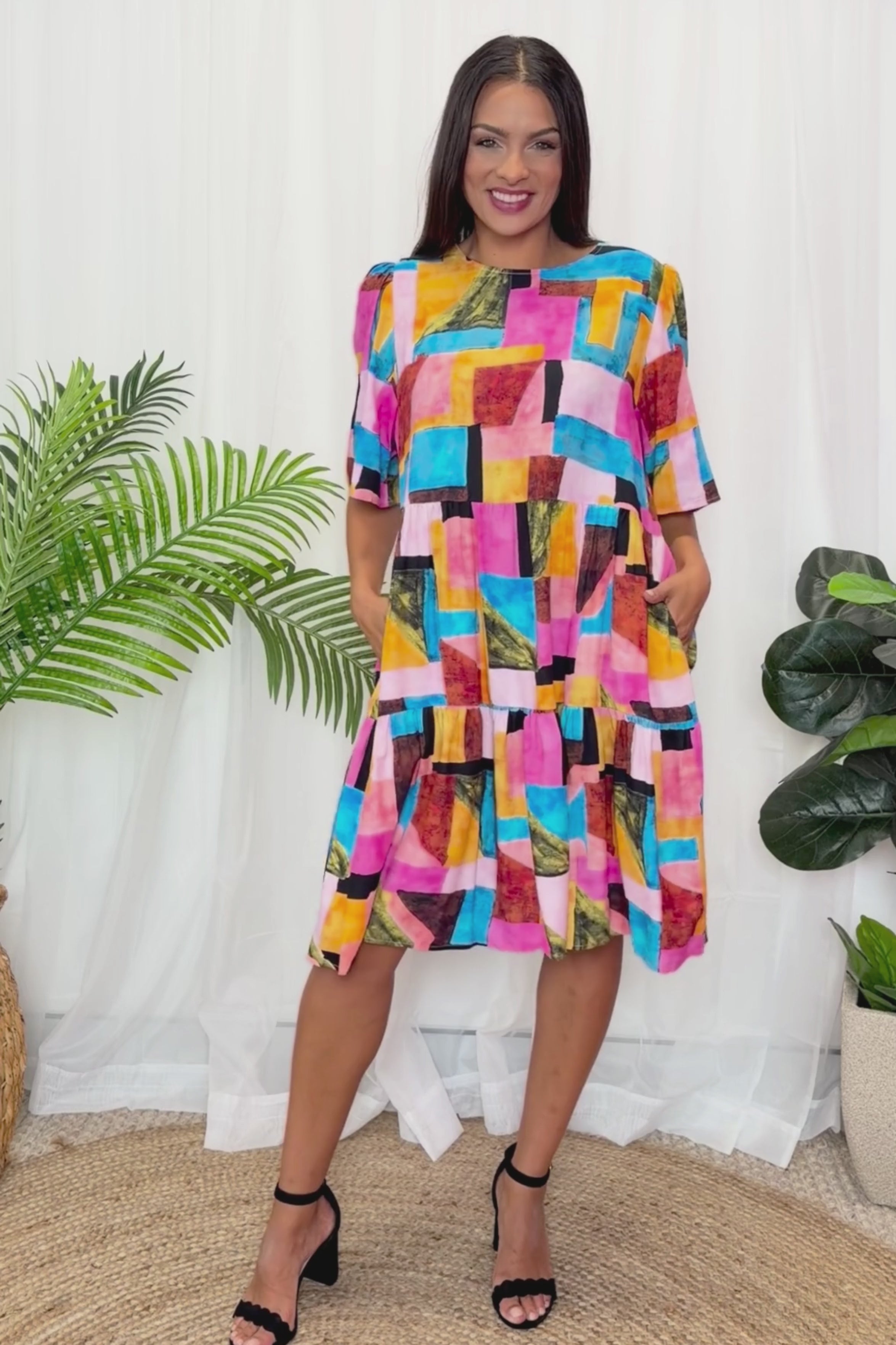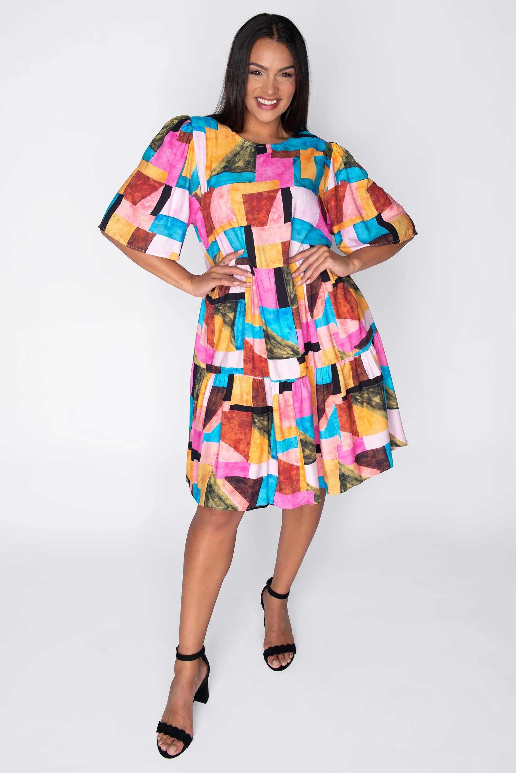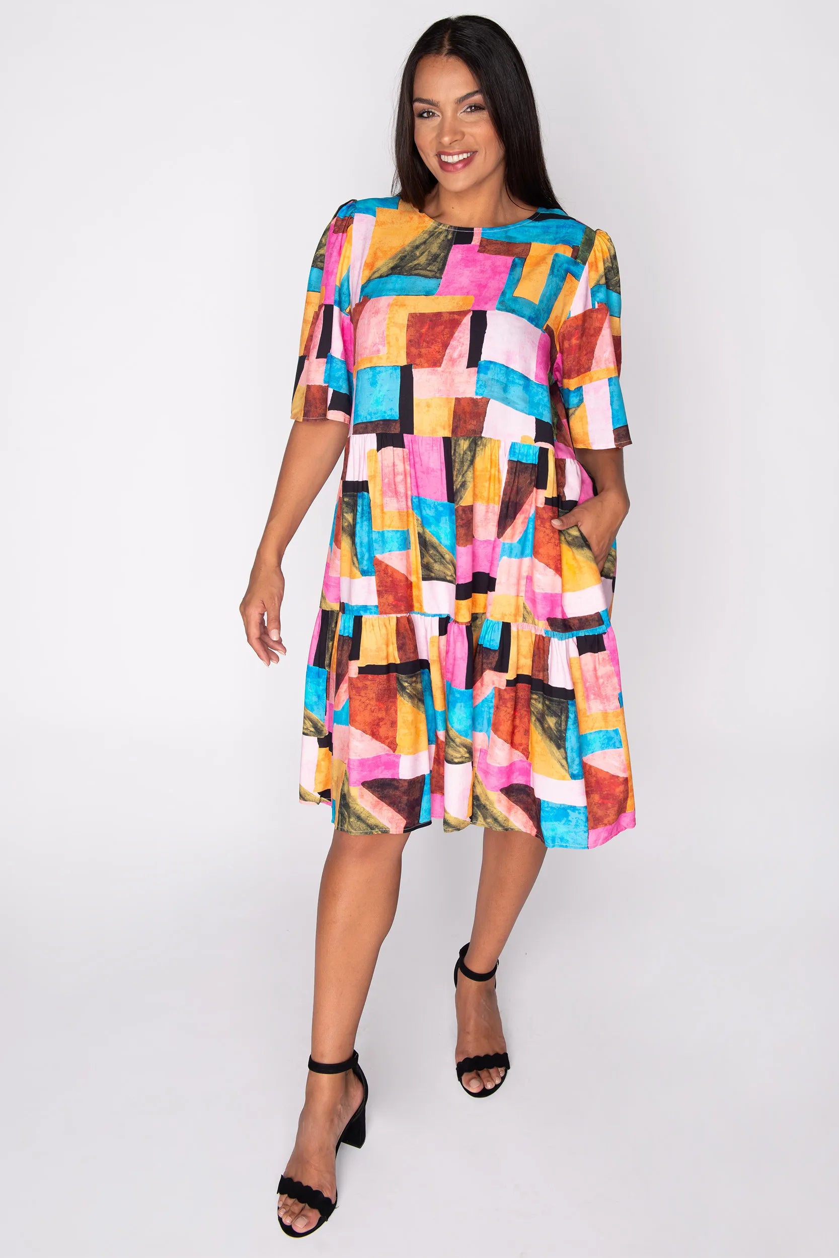 Step out in style with our Izzie Dress, featuring our Geo Pop print. This modern print will bring a touch of class to your classroom as the perfect Teacher Dress, or the ideal Summer Dress for warm day strolls!