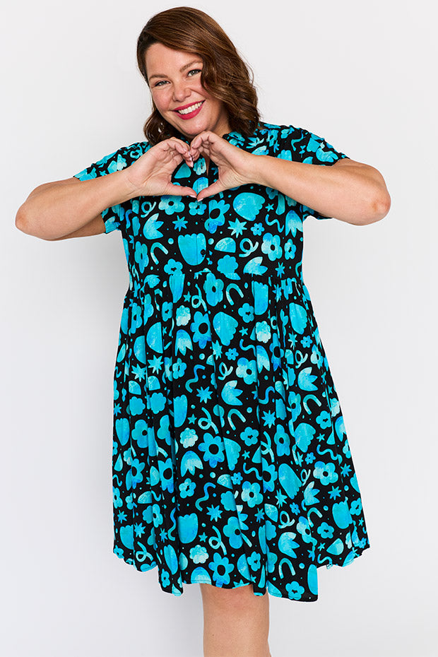 Brighten up your day with this Kimba Dress in our in our Stardust Florals Print, exclusively designed by the oh so talented Teggun Ashleigh. Fabulous, flowy, and effortlessly stylish - this Summer Dress is perfect for picnics, brunch, or a Fun Print Teacher Dress!