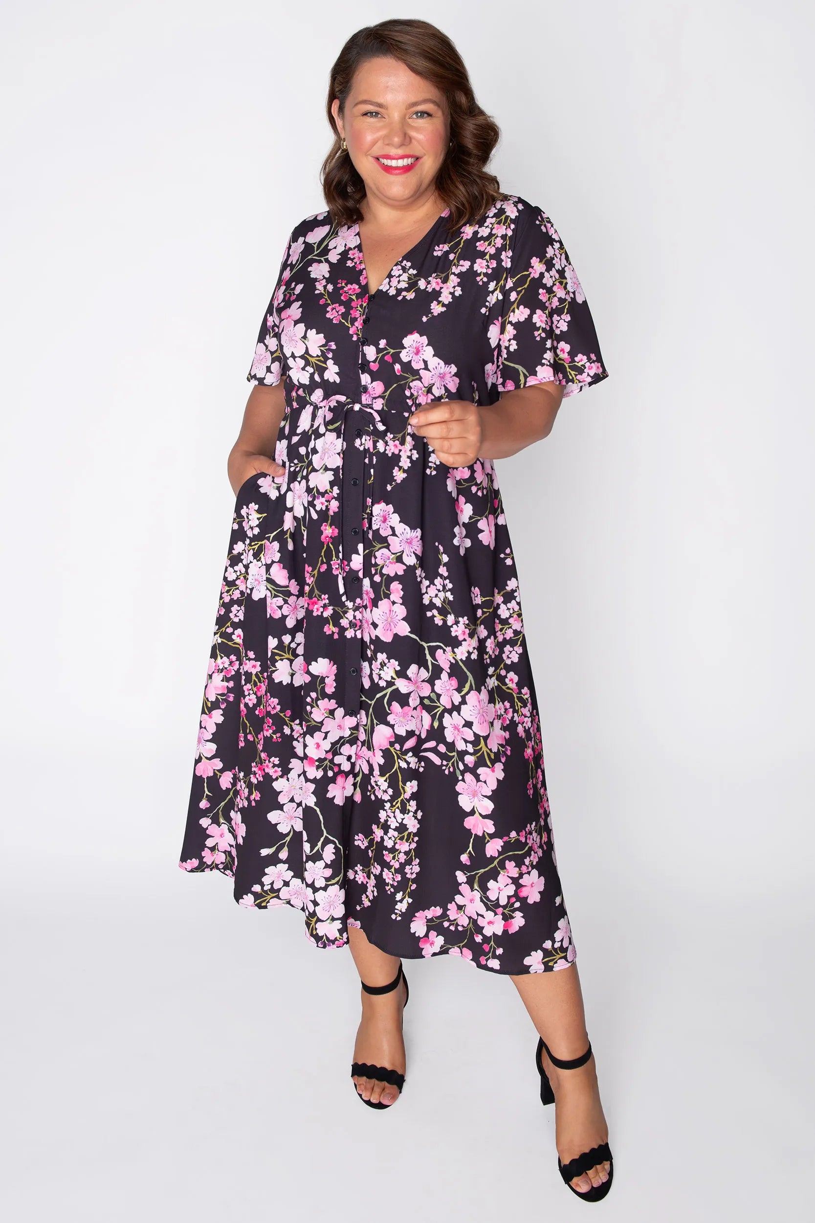 Light and dreamy, Marley Dress features our delicate Blackout Cherry Blossom print that embodies the definition of the ultimate Summer Dress! Effortlessly feminine and perfect for picnics, garden strolls, or a fun Teacher Dress!