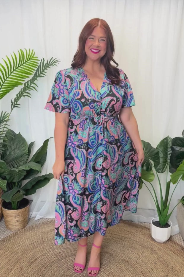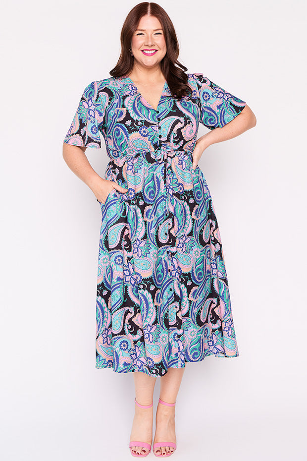 Chic and sophisticated, this Marley Dress features our classic French Paisley print that adds a touch of vintage charm and effortless elegance. Perfect for both daytime outings and evening soirées, it's a refined staple with a romantic flair.