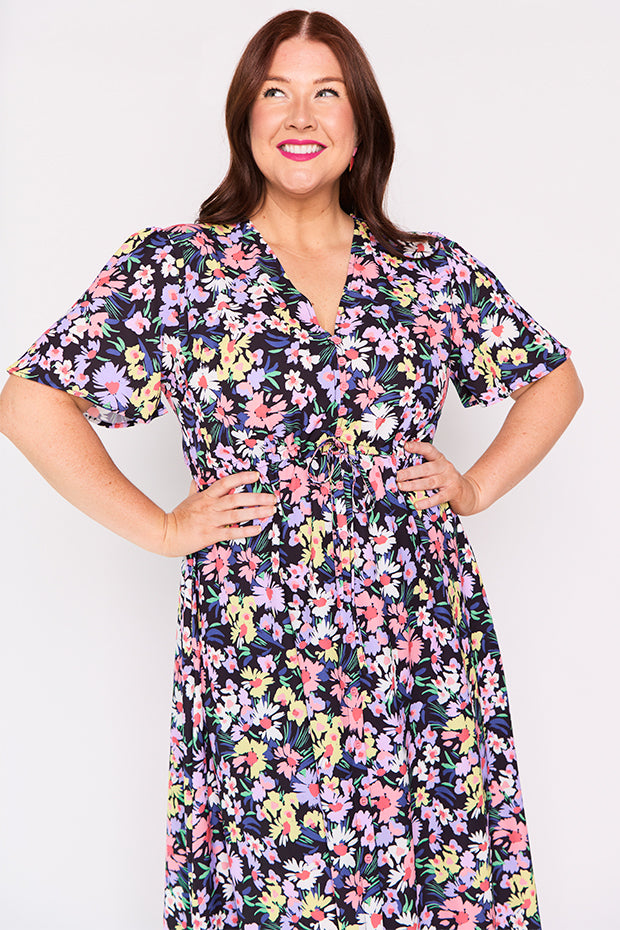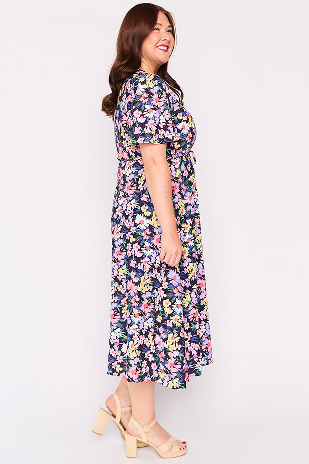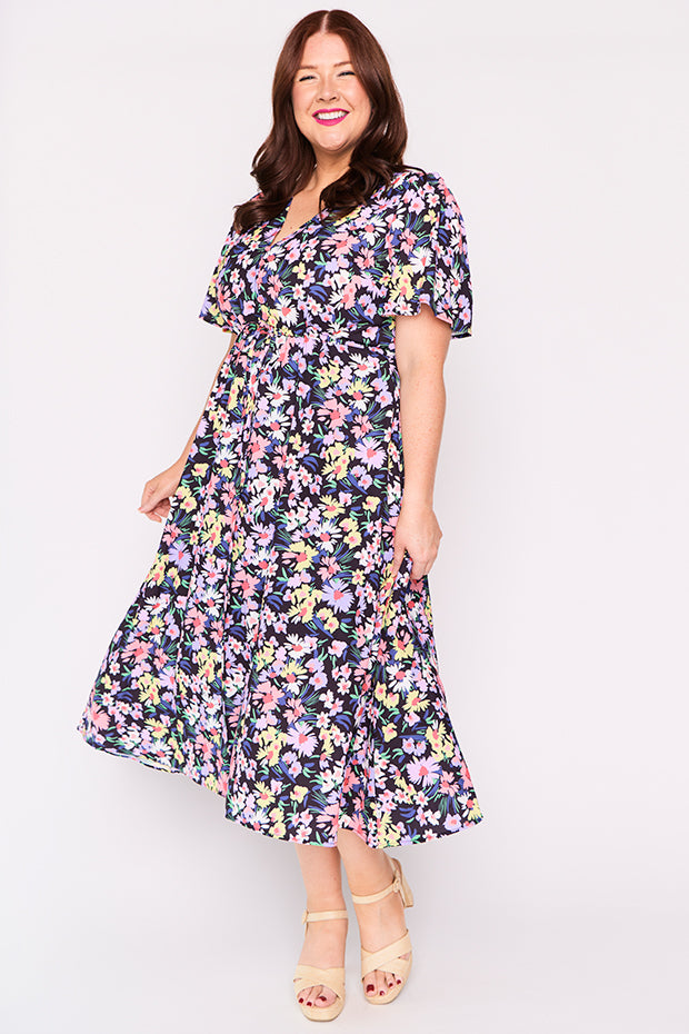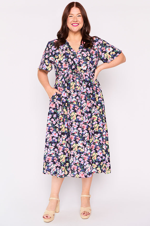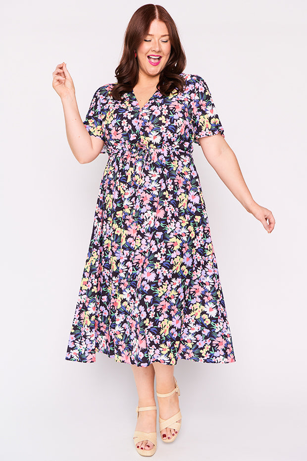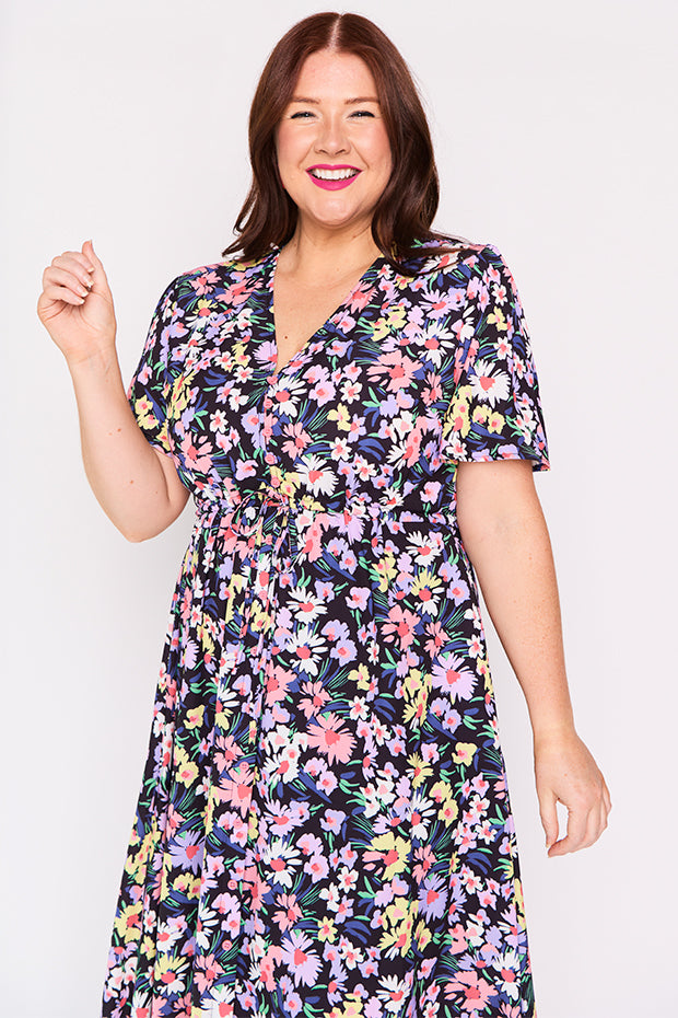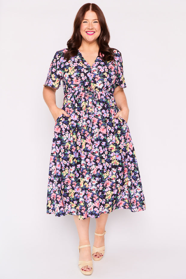 I purchased this after seeing a friend wearing it. I had previously dismissed it when I saw it online but in person I was wowed by the perfect mix of colours and fun floral pattern. It is a great match for my lavender Twoobs and is easy to wear to work or to a social occasion. Great colours for spring/summer.