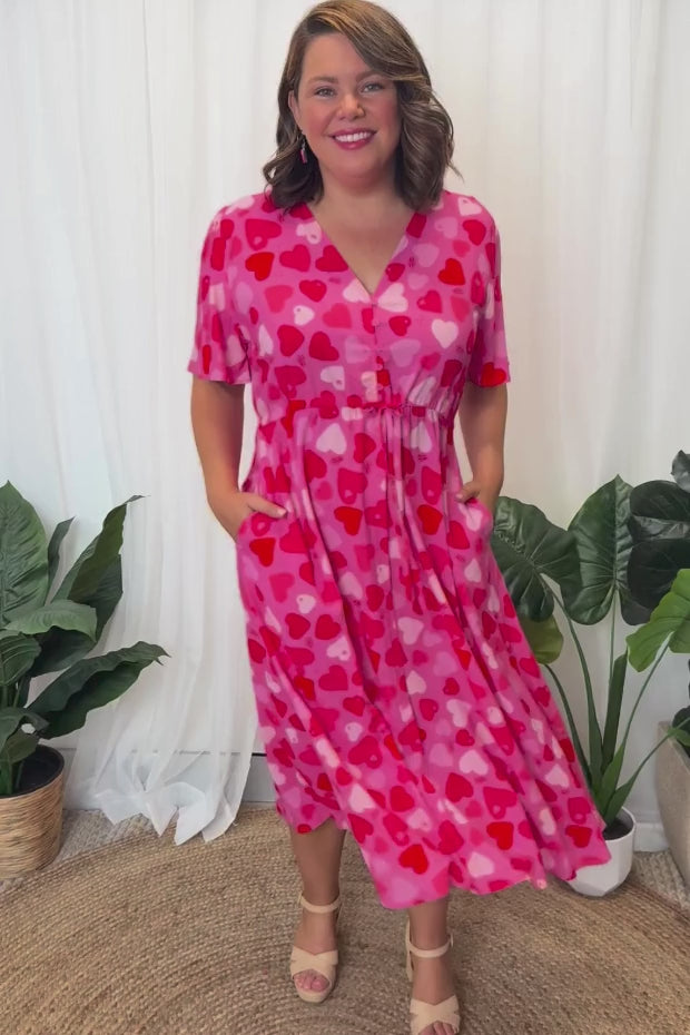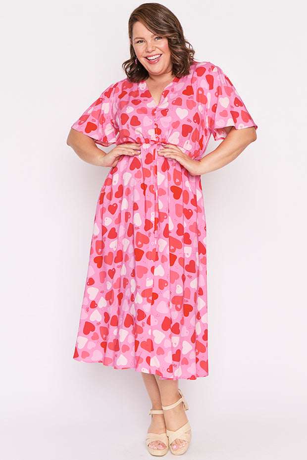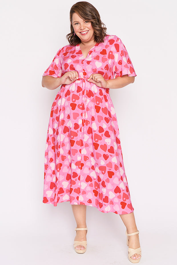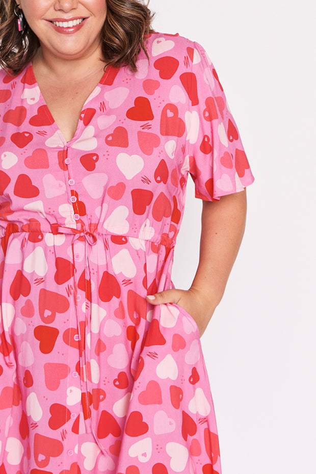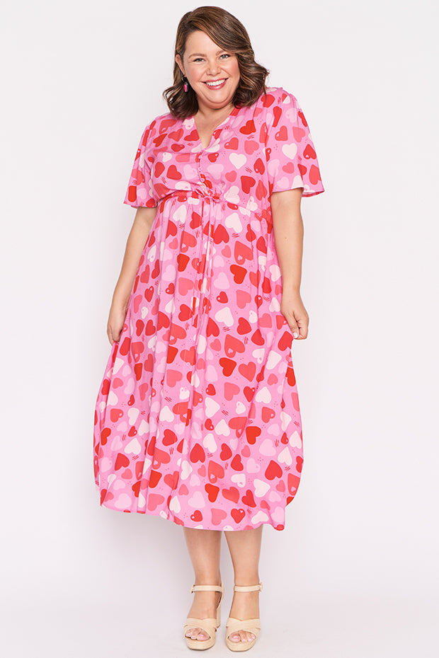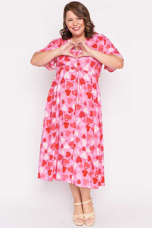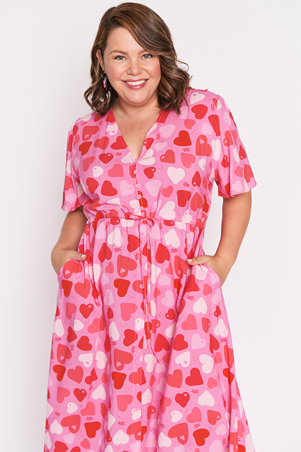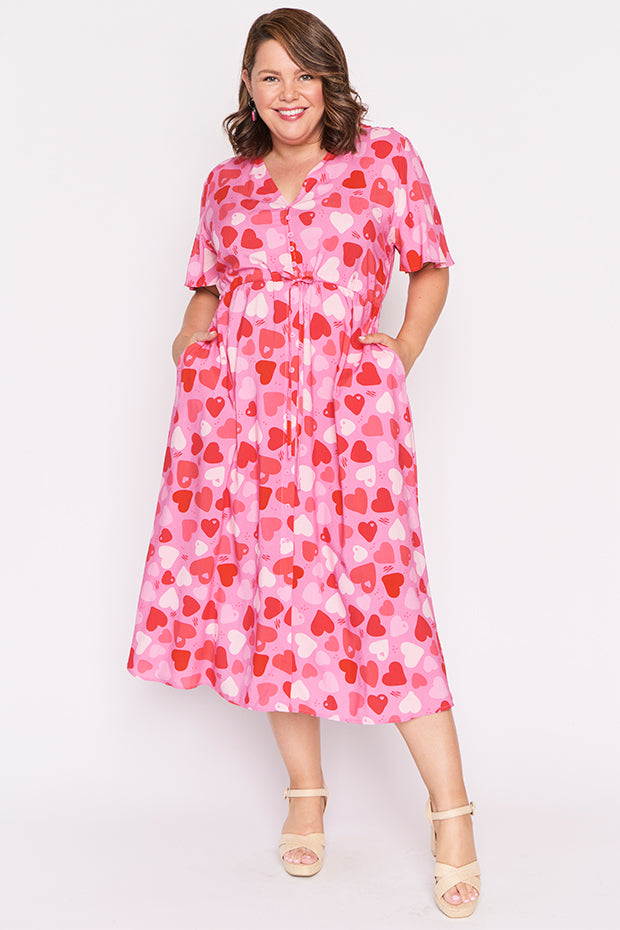 Designed in a lightweight rayon fabric, Michelle features a loose bodice, with short wide sleeves & a button up V-neckline. We love the comfy drawstring waist, with a loose flared skirt (with pockets!) creating a feminine vintage silhouette and that perfect twirl moment!