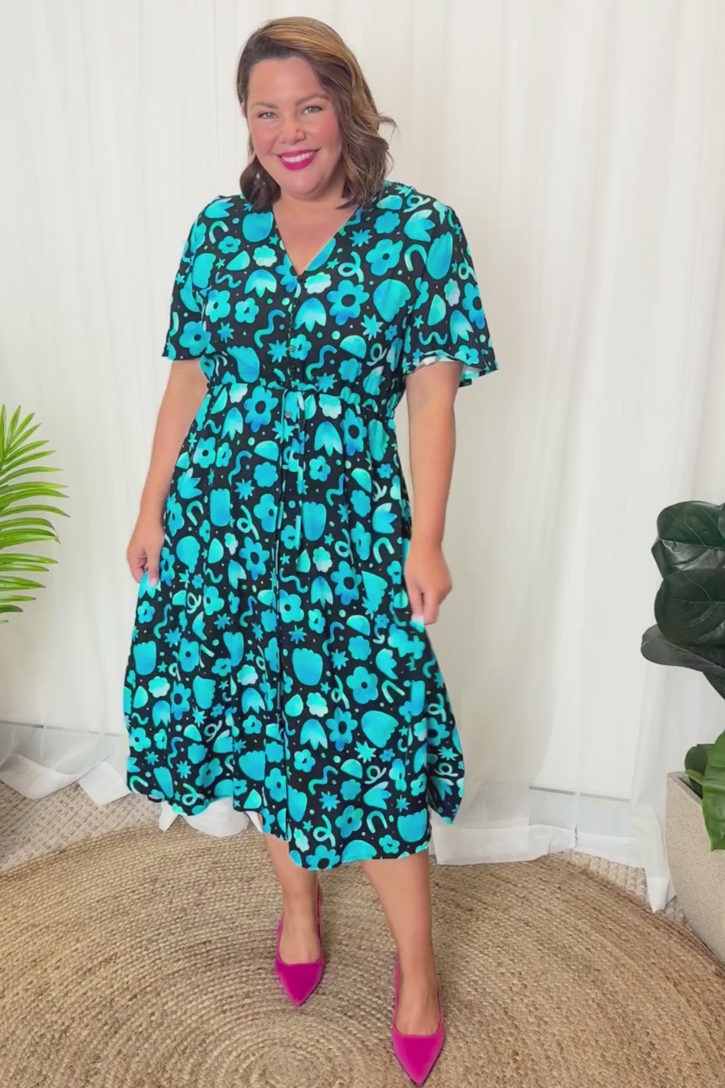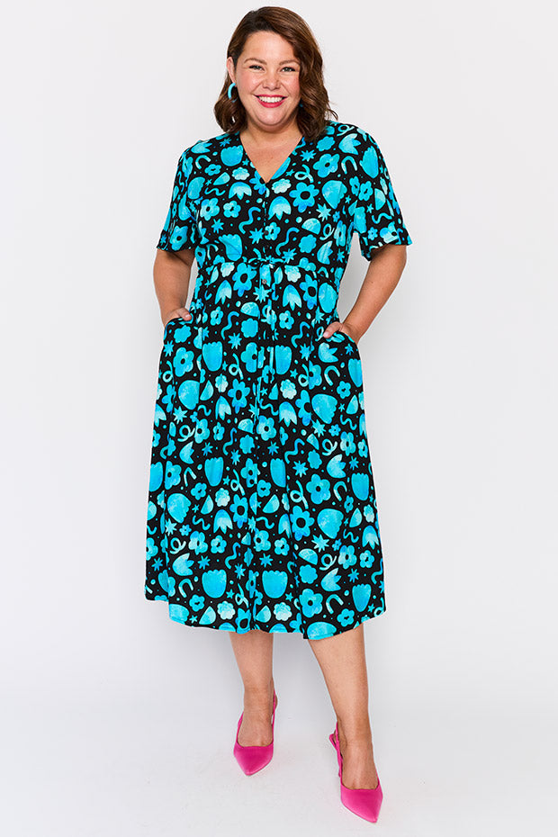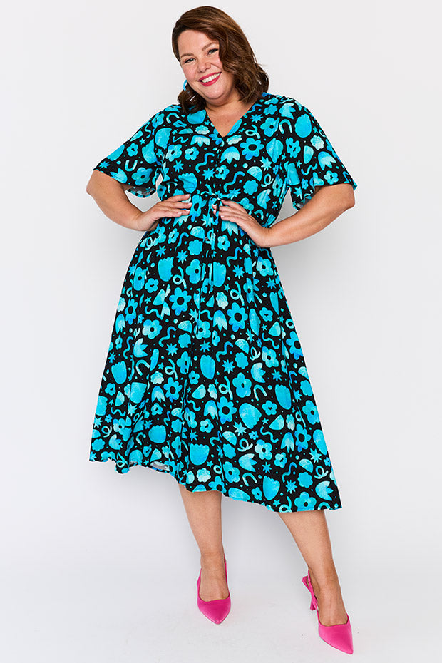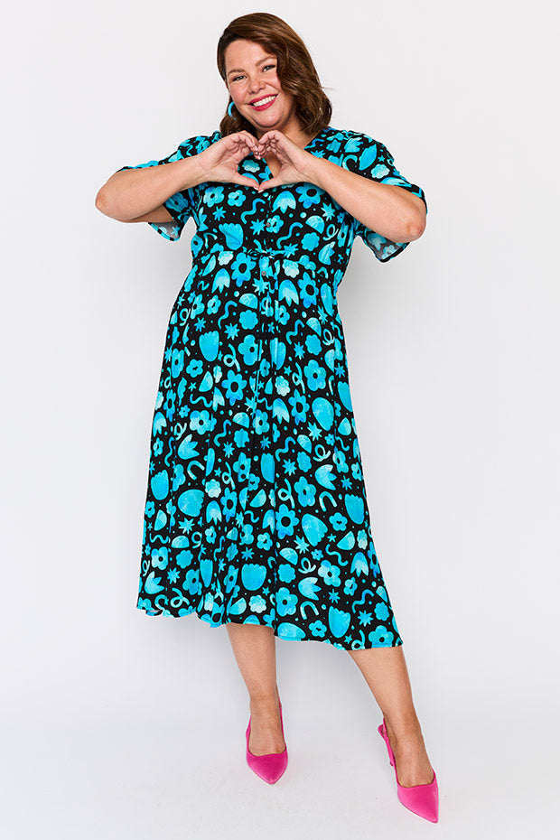 Brighten up your day with this Michelle Dress in our in our Stardust Florals Print, exclusively designed by the oh so talented Teggun Ashleigh. Fabulous, flowy, and effortlessly stylish - this Summer Dress is perfect for picnics, brunch, or a Fun Print Teacher Dress!