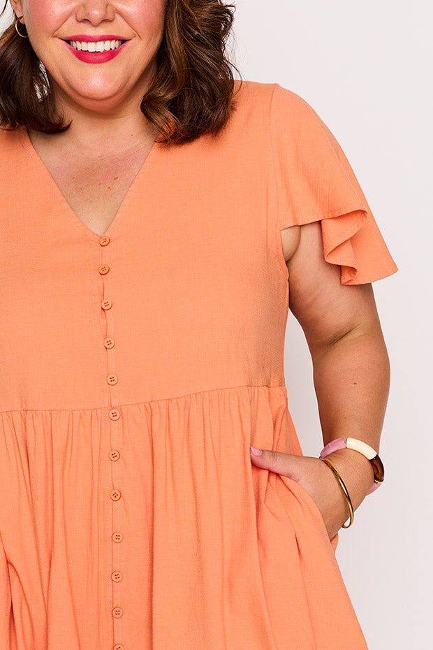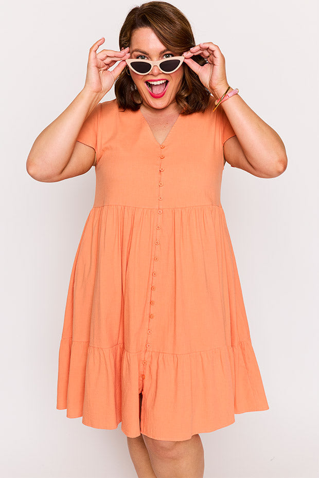 This coral-coloured Summer Dress is the perfect Teacher Dress - comfortable, stylish, and classroom-ready. Its lightweight fabric and cheerful hue make it ideal for warm days, whether you're at school or out enjoying the sun, the Mikey Dress is ideal for any occasion.