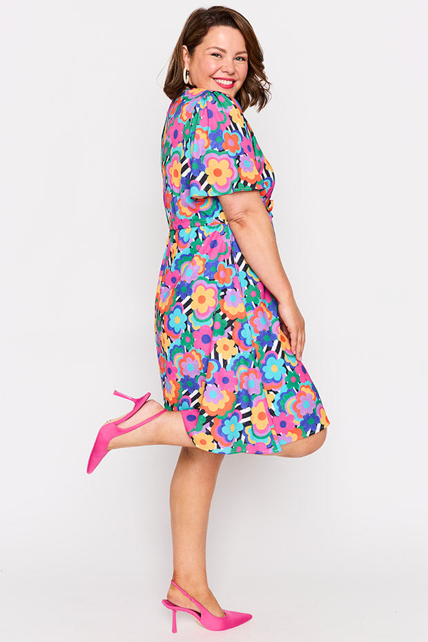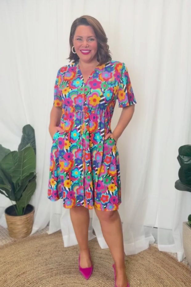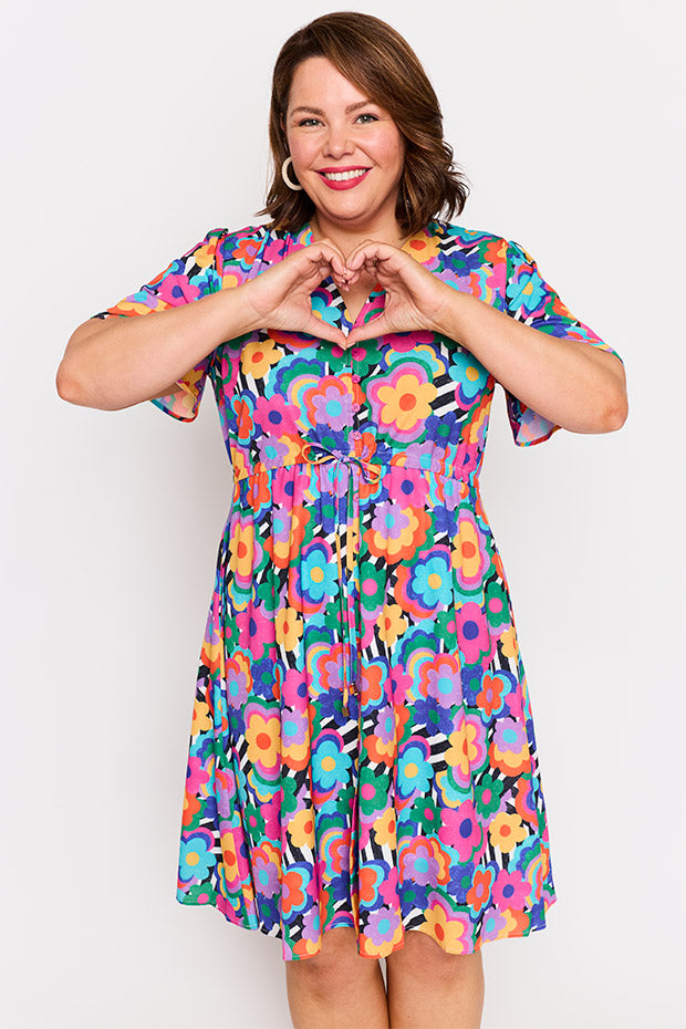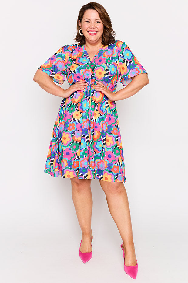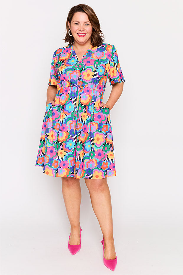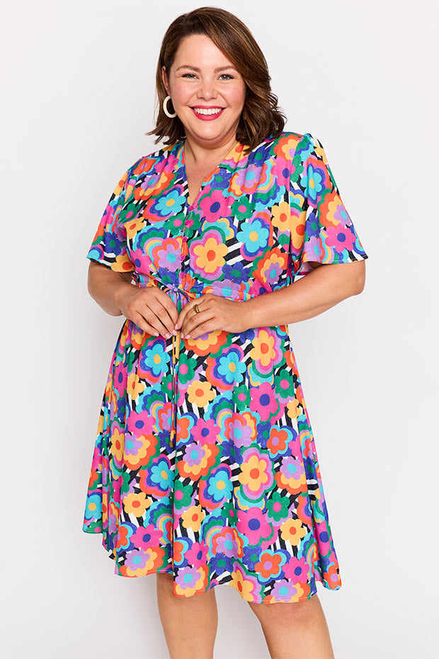Bloom in style in this Siena Dress! Adorned in our Electric Blooms print, exclusively designed by the oh so talented Teggun Ashleigh. It's the perfect piece to add a cheerful touch to any day. Light, lively, and effortlessly eye-catching—this dress is pure sunshine in fabric form.