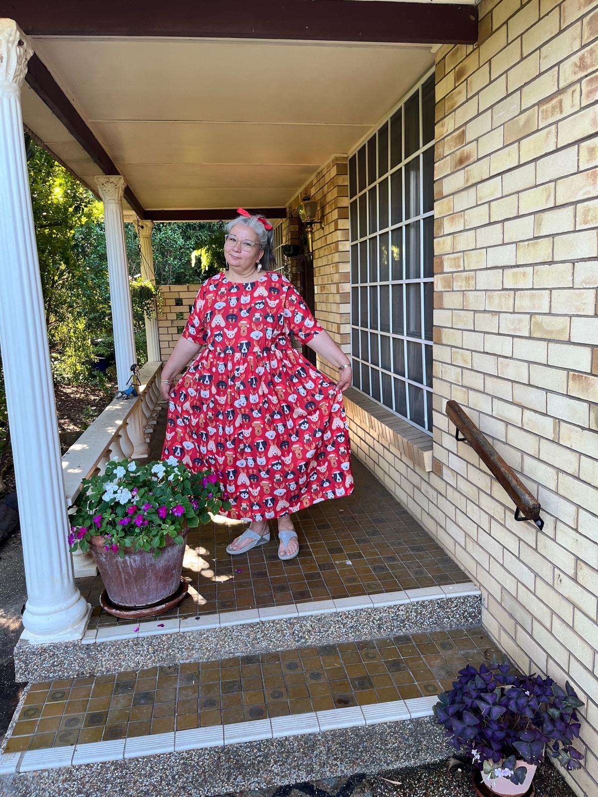 I love my puppy Christmas dress I'm all set for the big day everyone knows I'm I'm a dog lover gorgeous fabric and a.beautiful shade of red comfortable fit 🥰👍