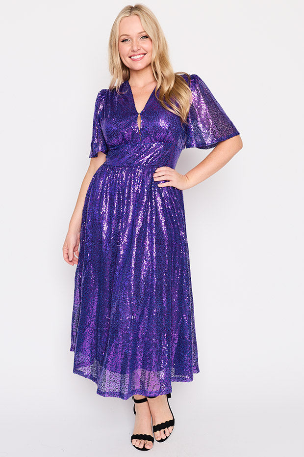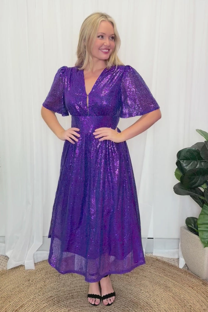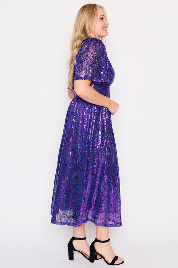 Shine bright in our Tamie Party Sequin Dress, adorned with shimmering purple sequin designs. Designed to catch the light from every angle, it’s the perfect Cocktail Dress for special events, or any occasion where you’re ready to sparkle and stand out.