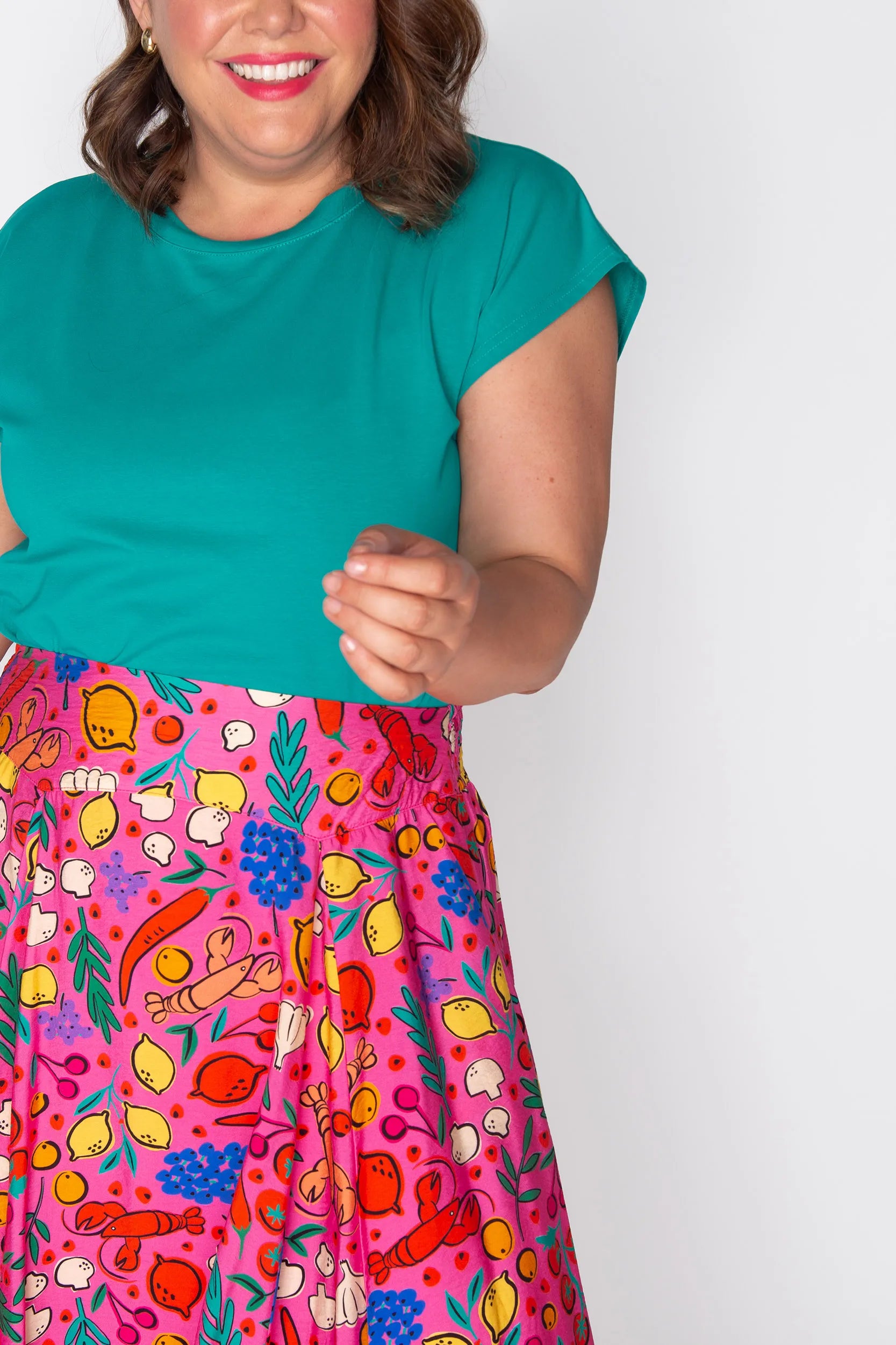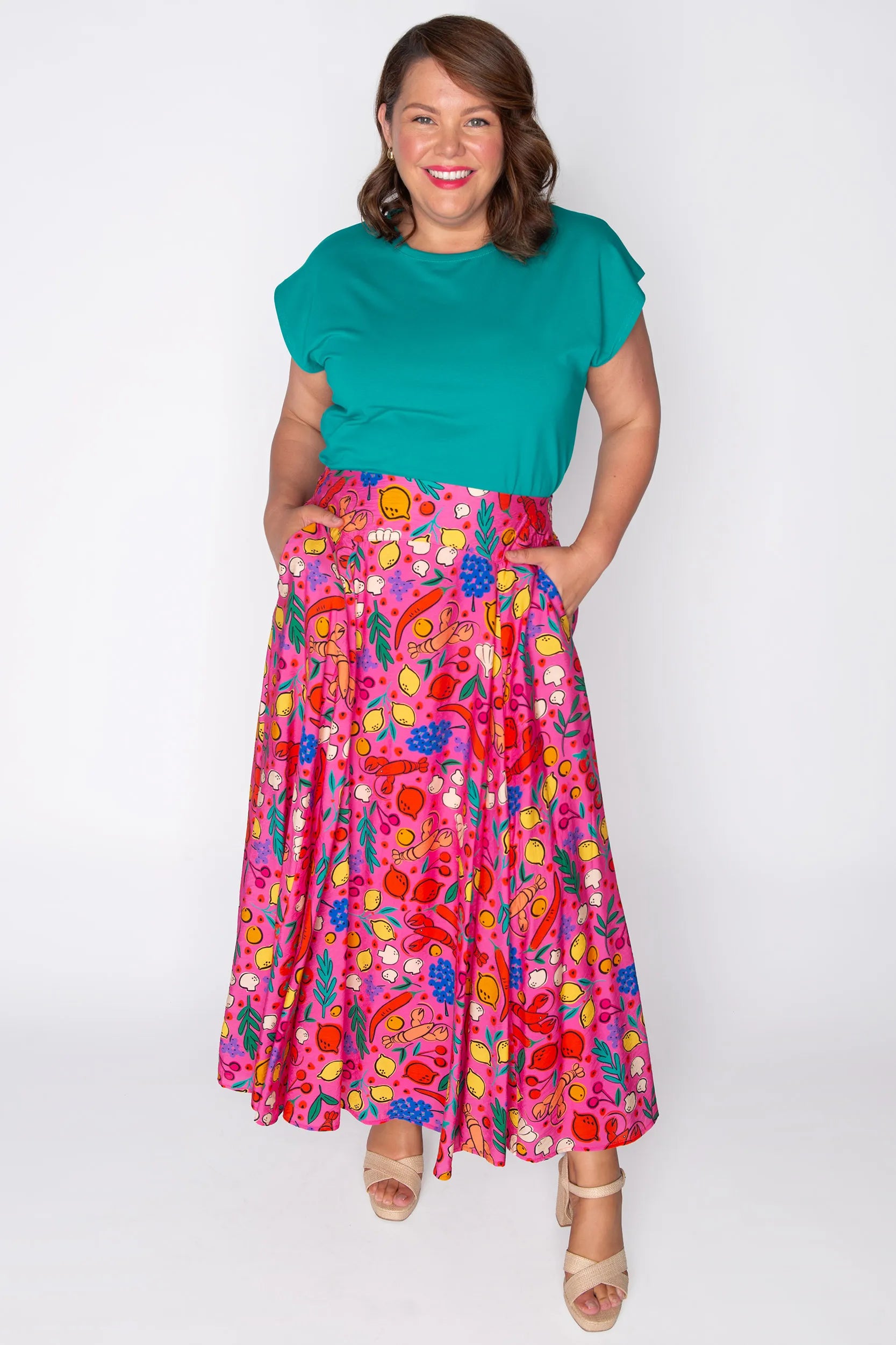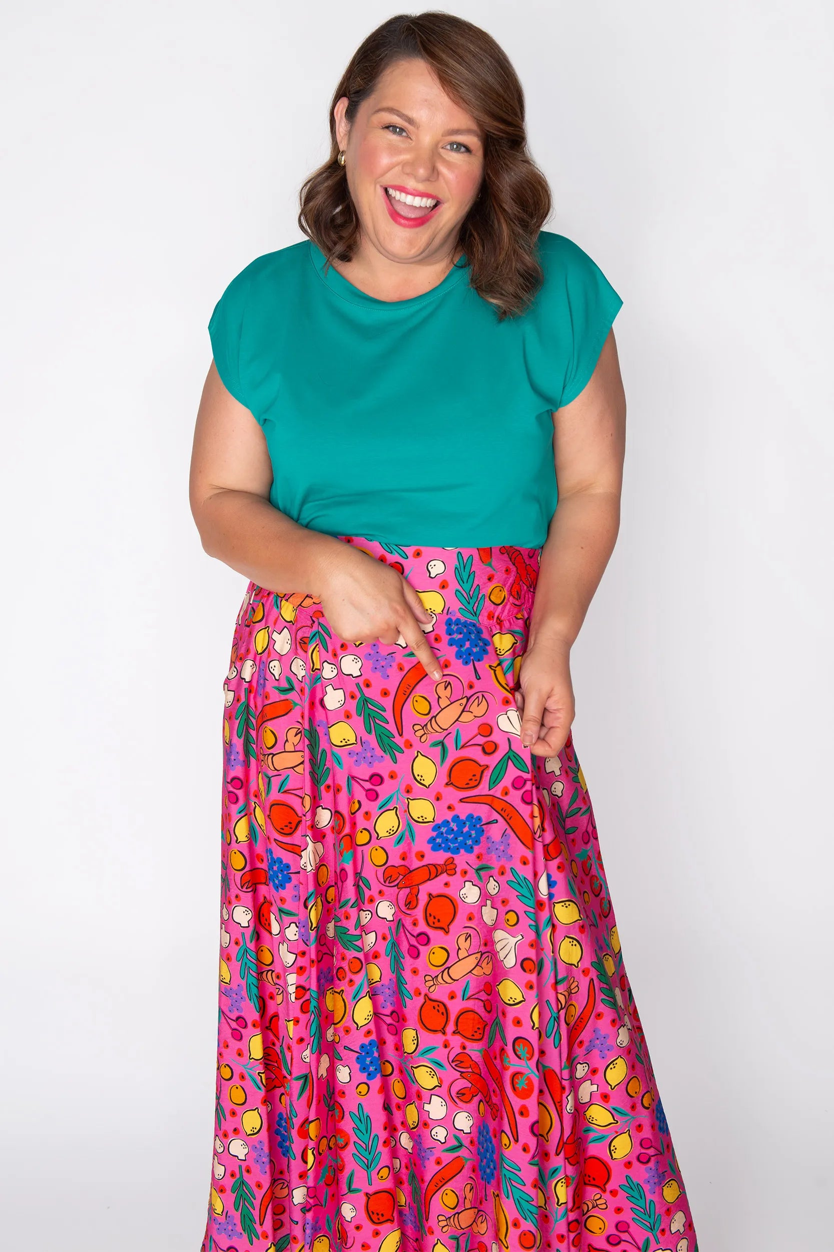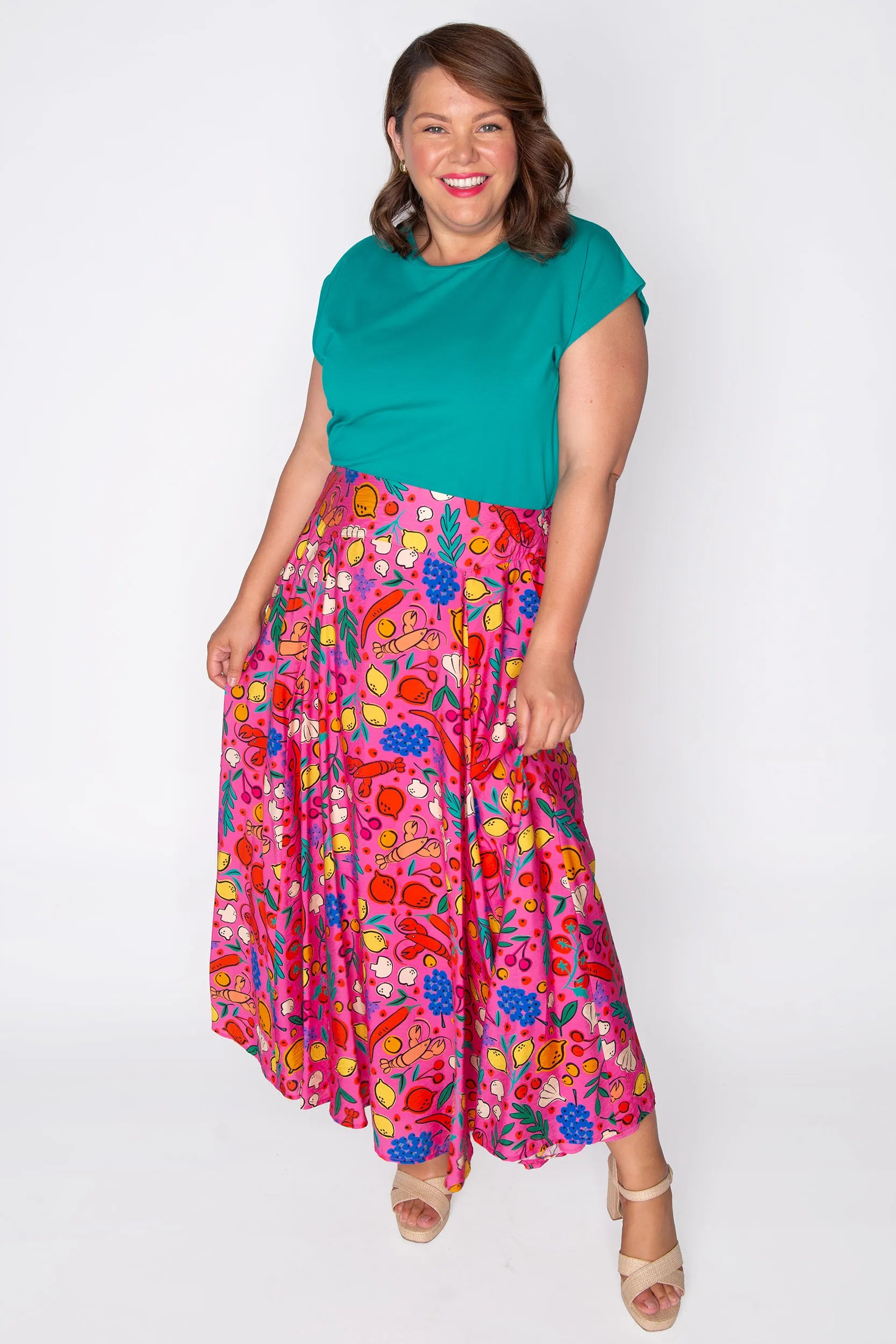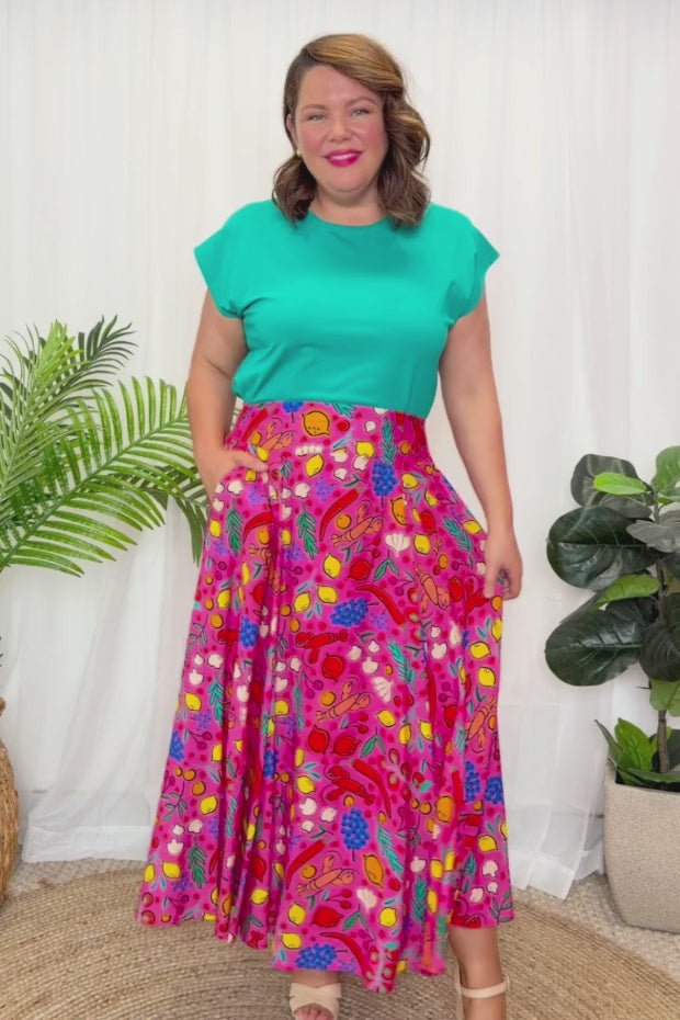 Turn heads and start parties in our La Festa print, where fashion meets flavor. Exclusively designed by the oh so talented Annie Coti of Banana Pop Designs. This Zara Skirt captures the joyful energy of a lively street festival, making it the ideal Summer Skirt. Your go-to Fun Print for any occasion that calls for a pop of personality, this dress serves bold style with a delicious twist.