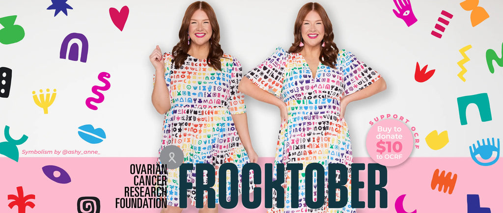 This year, we've released three special styles in our new Teal Hearts Print (designed by @zonktdesigns) - the Nyla Dress, the Michelle Dress, and the Alexia Dress - and every frock sold, $10 will be donated directly to OCRF.