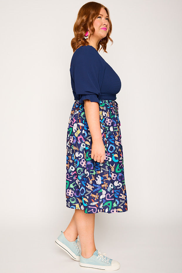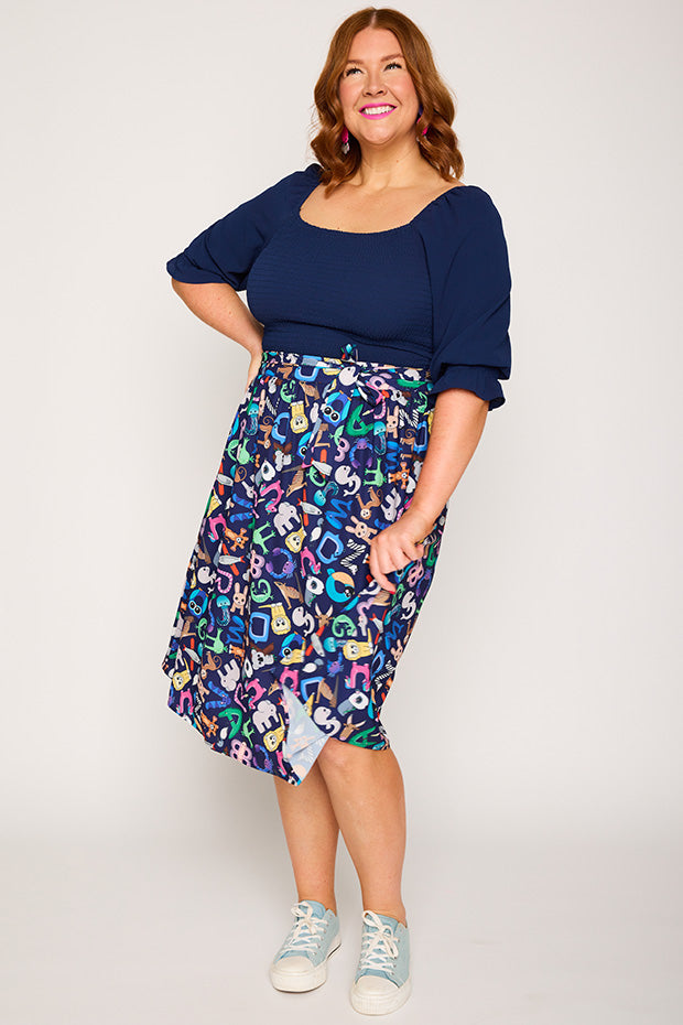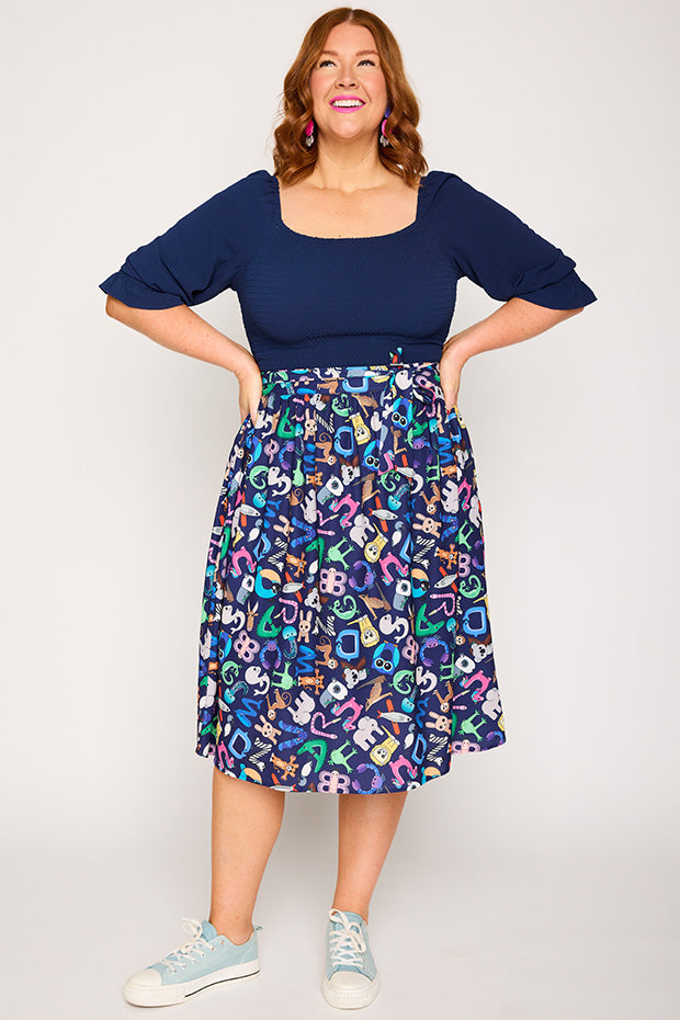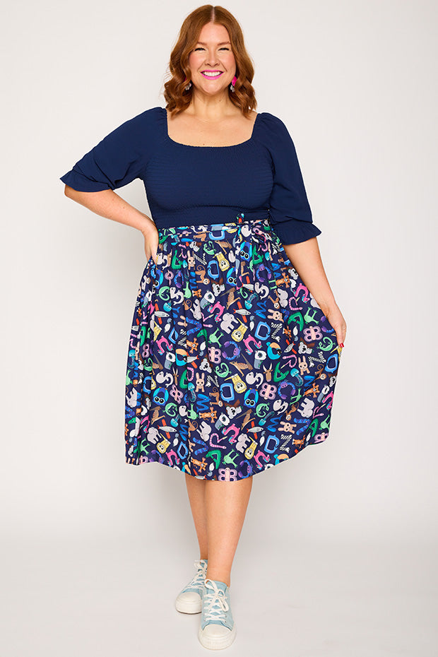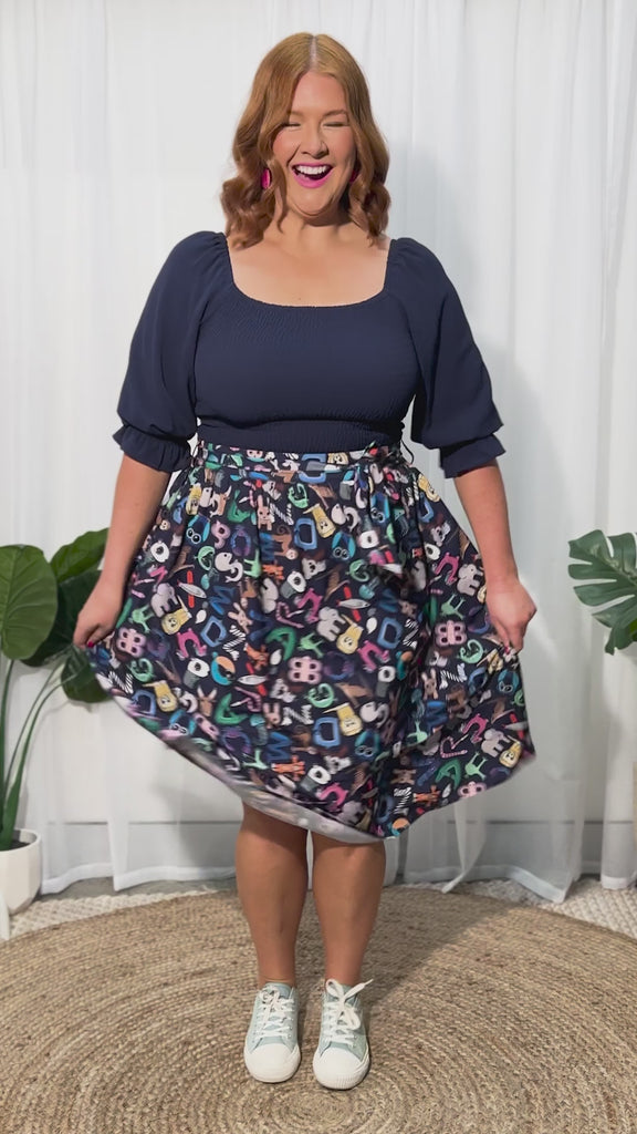 Love this skirt! The print is fantastic, I get lots of compliments. My workplace is very casual, but the darker background of the print means it can be dressed up a bit if needed. Highly recommend!