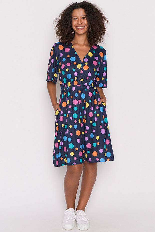 Love this dress. The sizing and length is perfect. Love the pockets too.