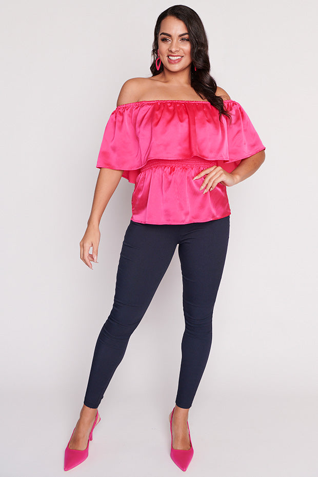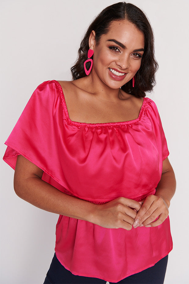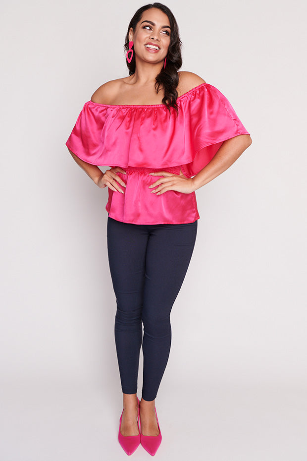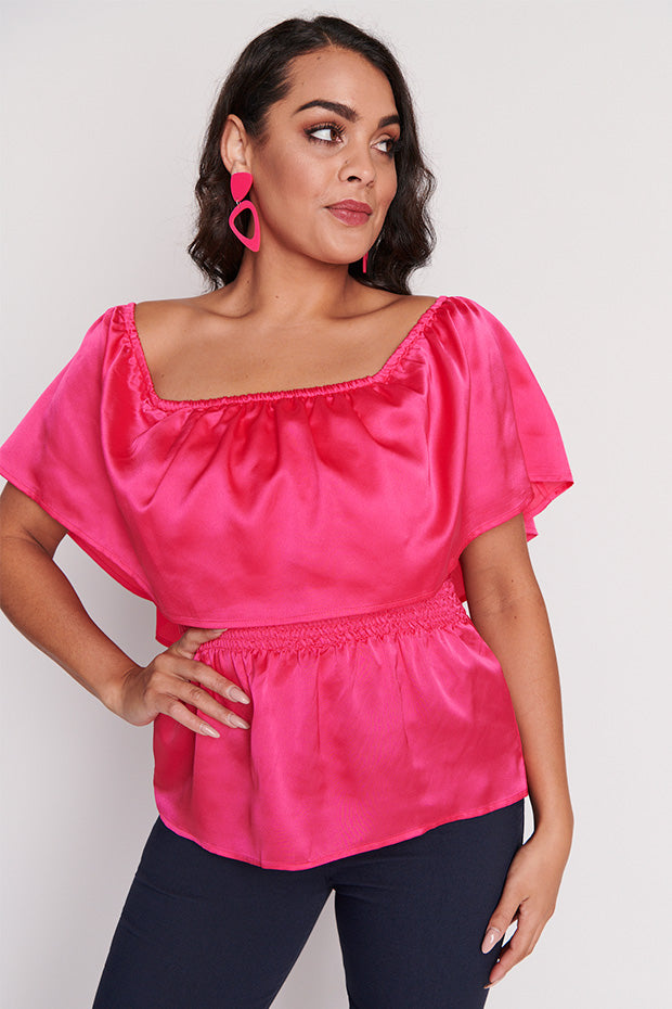 Designed in aĀ lightweightĀ satin fabric &Ā featuringĀ stretchyĀ shirred bodyĀ that ensuresĀ a perfect fit, unique to your body, without minimising your comfort! We love theĀ stretchy frilled necklineĀ &Ā Ā looseĀ sleevesĀ that can be wornĀ on or off the shoulderĀ for that extra touch ⨠AND that frilled peplum hem?Ā Isn't itĀ just divine?!š»
