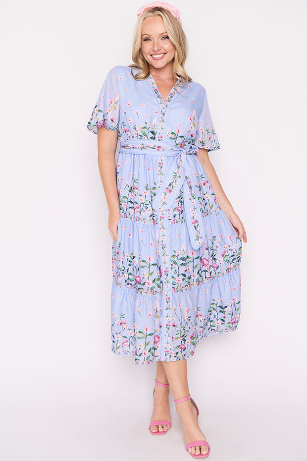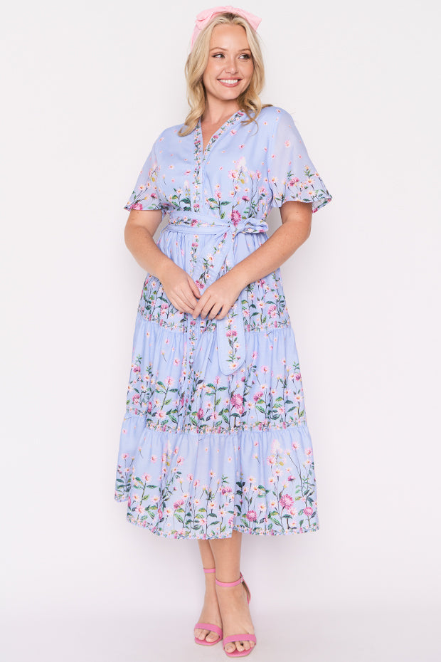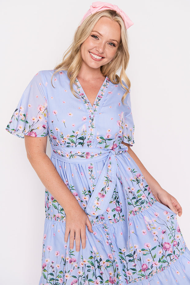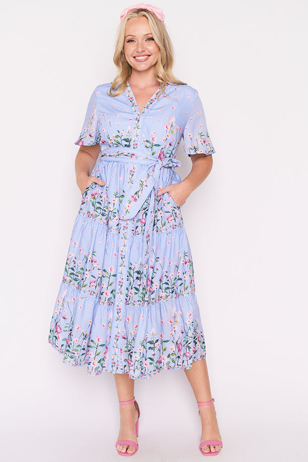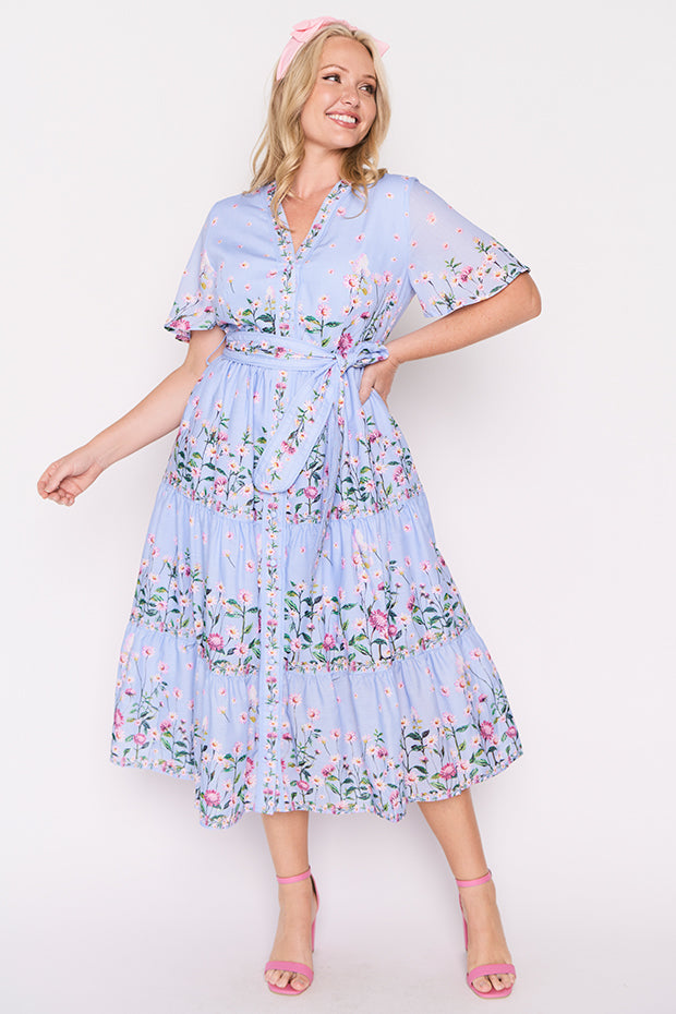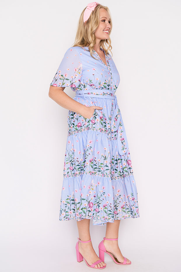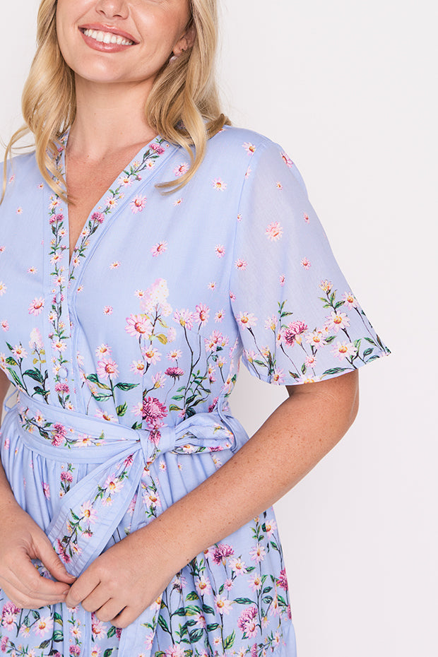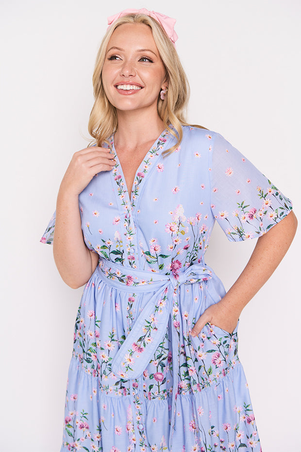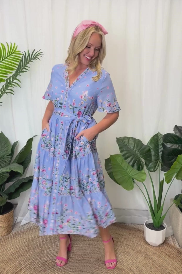 Featuring a panelled, functional button down V-neckline with sweet a relaxed sleeve. The 3-tiered, fully linedĀ button down skirt and removable waist tieĀ creates ultimate comfort whilst giving that classic full length silhouette. And of course... she's gotĀ pockets!