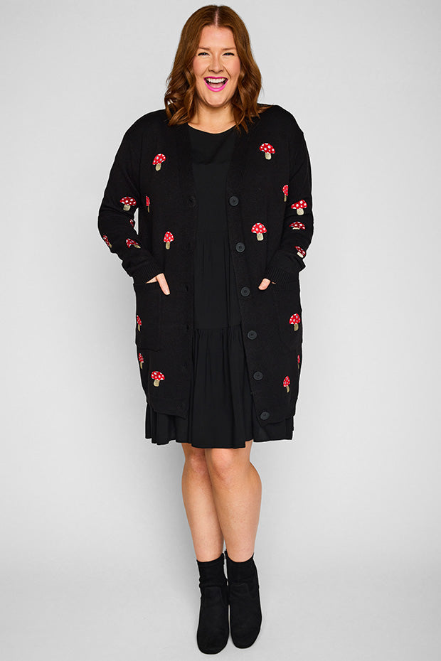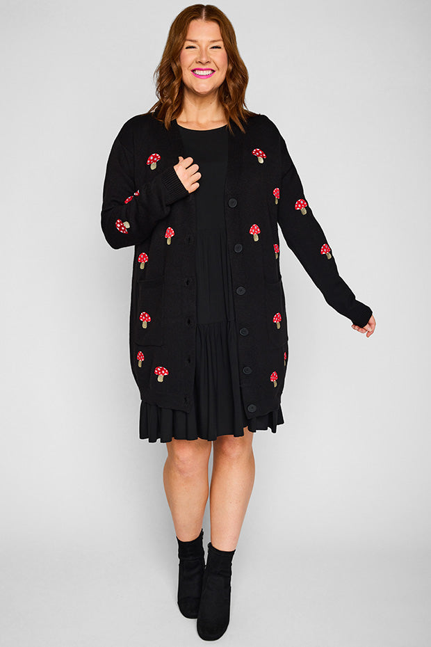 We are super excited to welcome Angela back! Add her to your wardrobe for that essential throw over! 💖 Check out her gorgeous embroided mushrooms 🍄