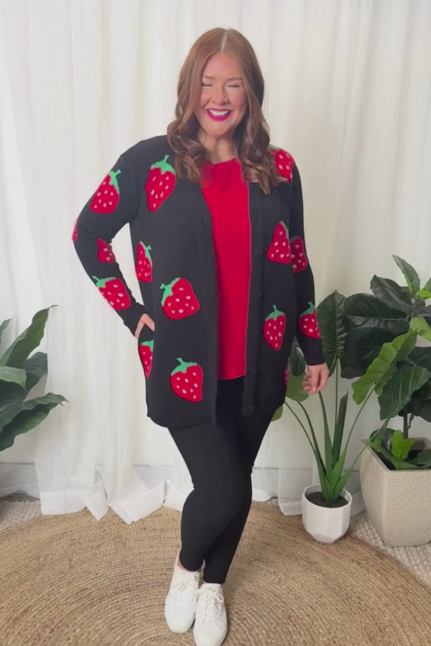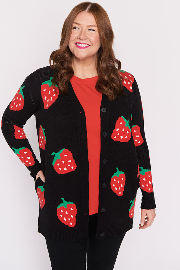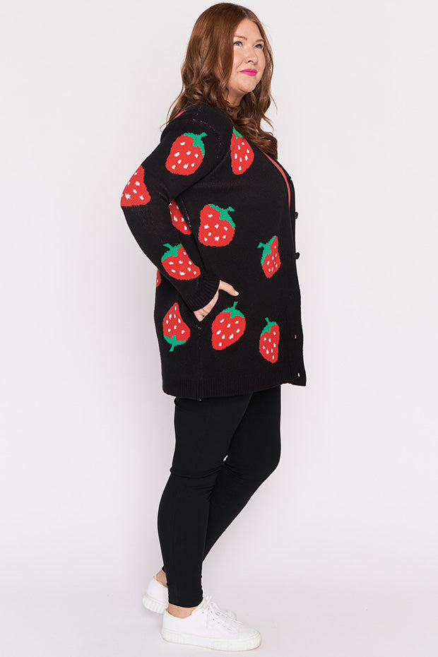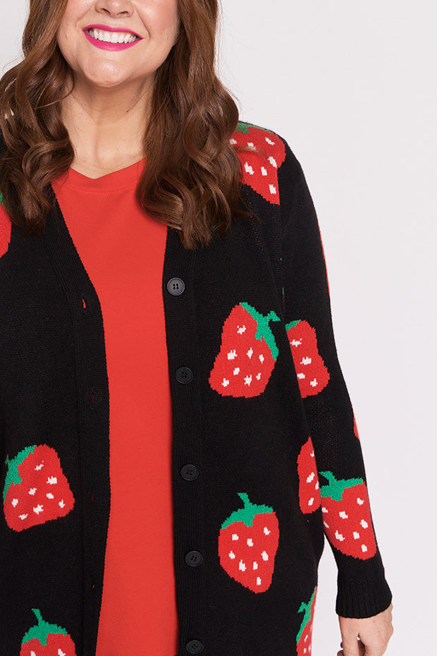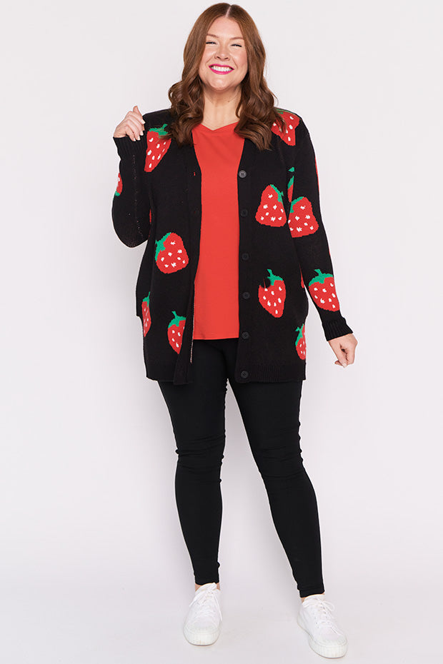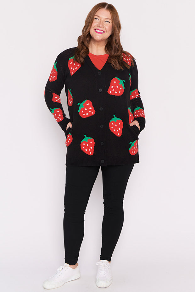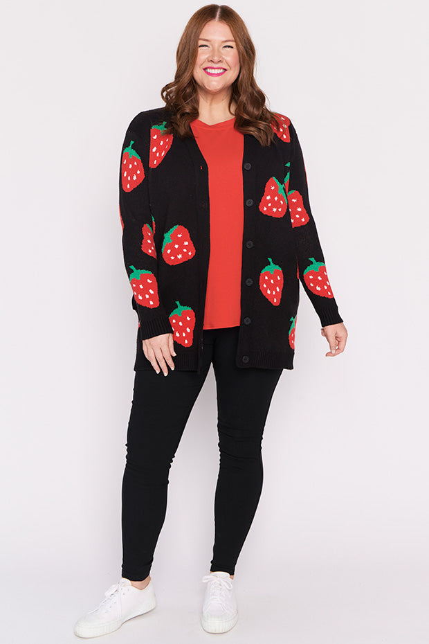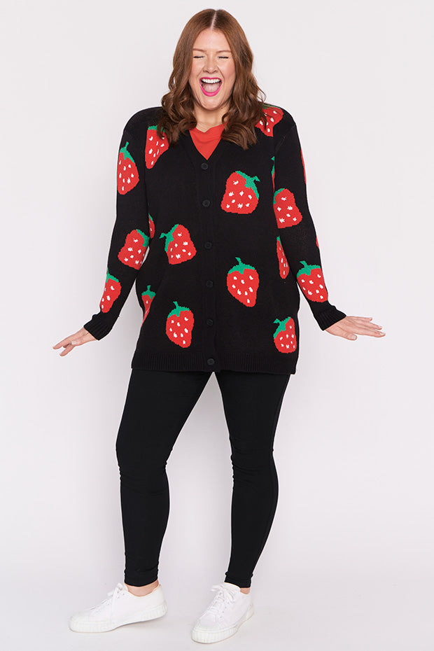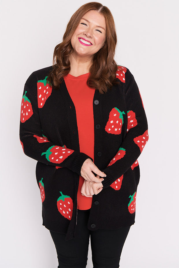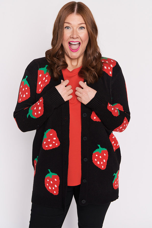 The snuggest addition to your wardrobe.. the Annalise Black Strawberry CardiĀ šŸ“