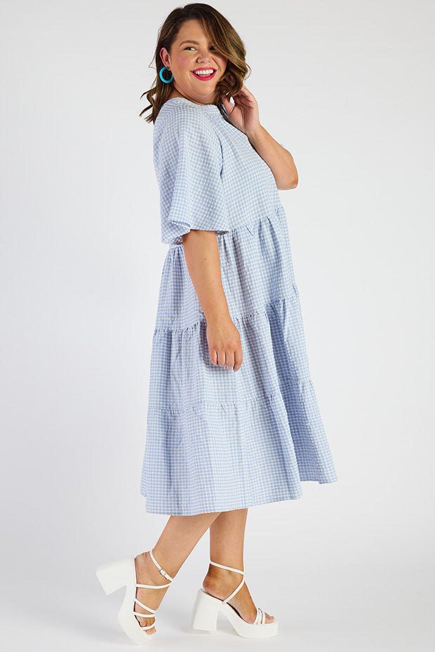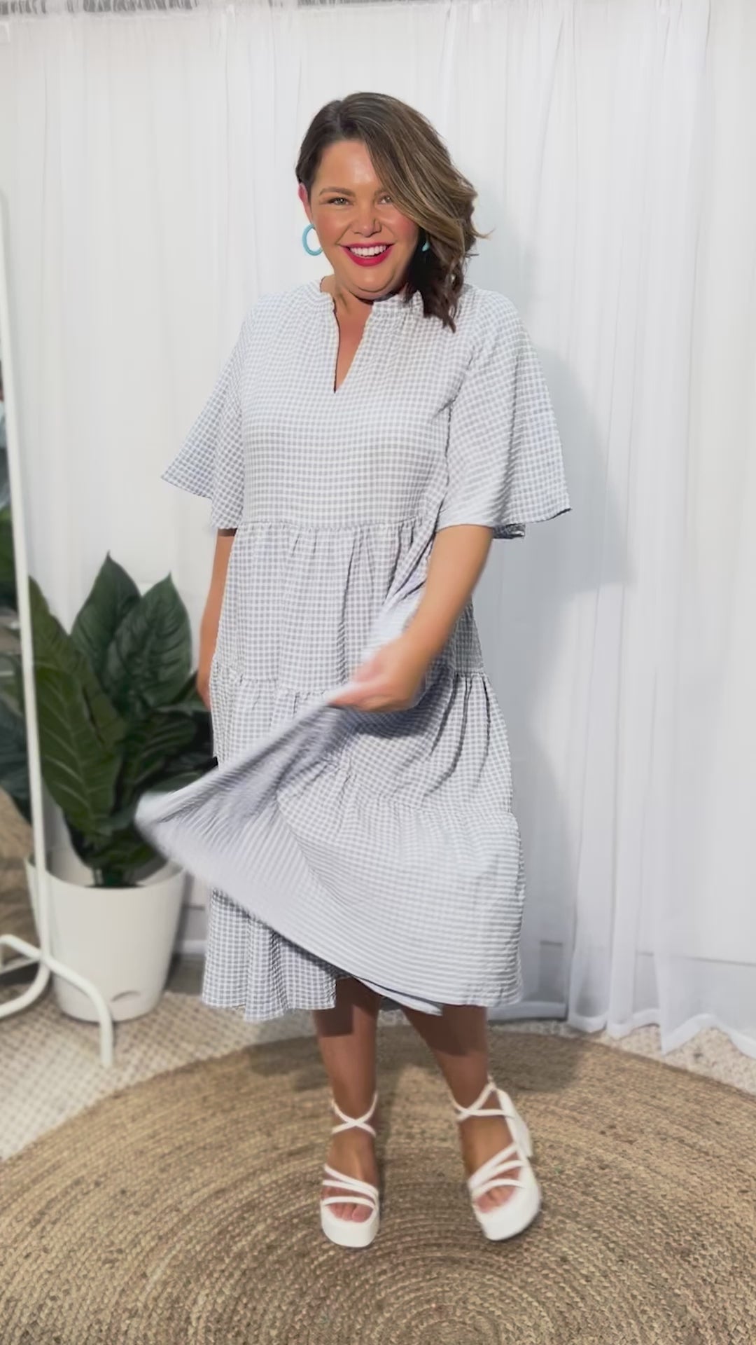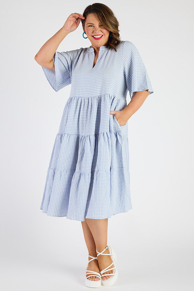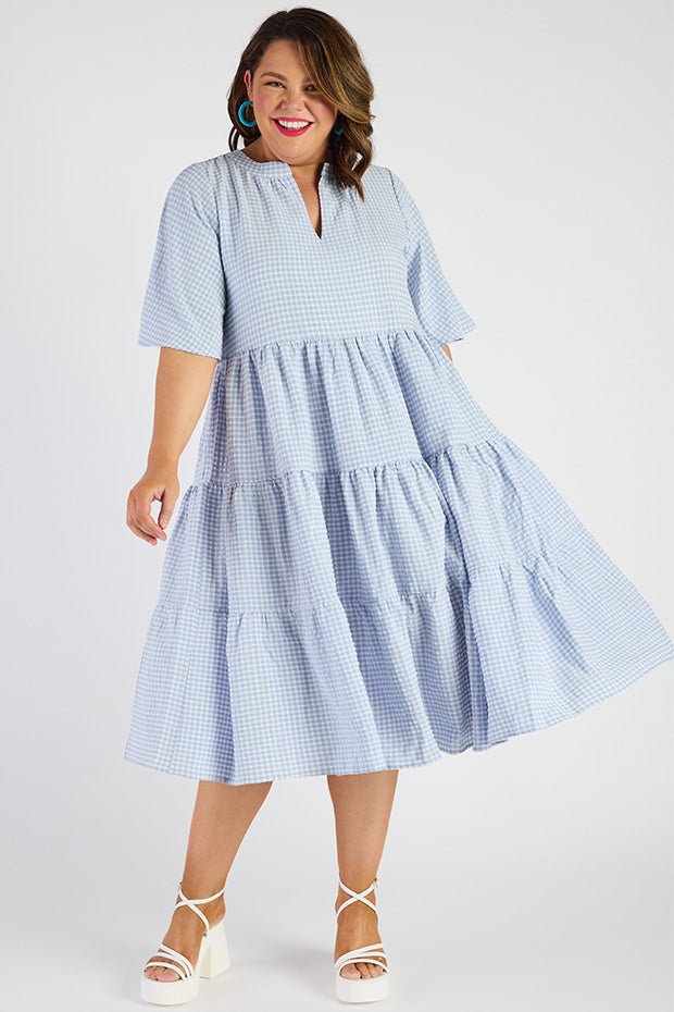 This dress is so pretty and I get compliments when I wear it. It feel very Dorothy like. The dress has a lining and I love the tiers and sleeves. Highly recommend, it can be dressed up or down.
