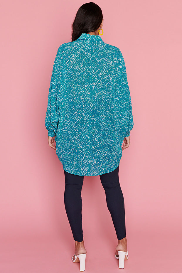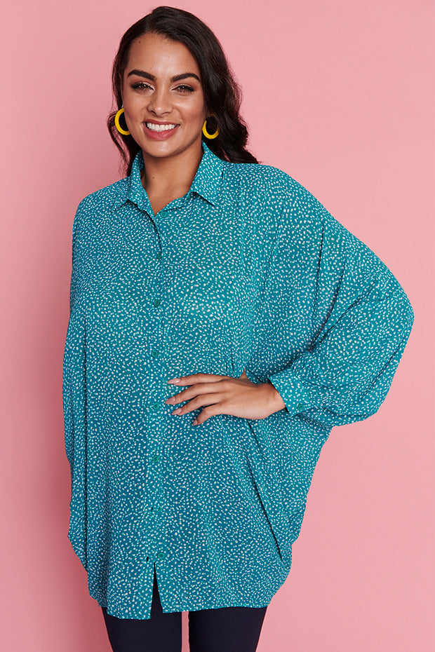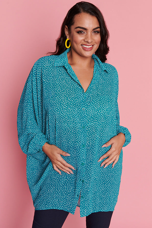This Little Party Shirt is an instant conversation starter! With its lightweight rayon fabrication, full button up front & billowed oversized fit, it is both super comfy & super cool 😎