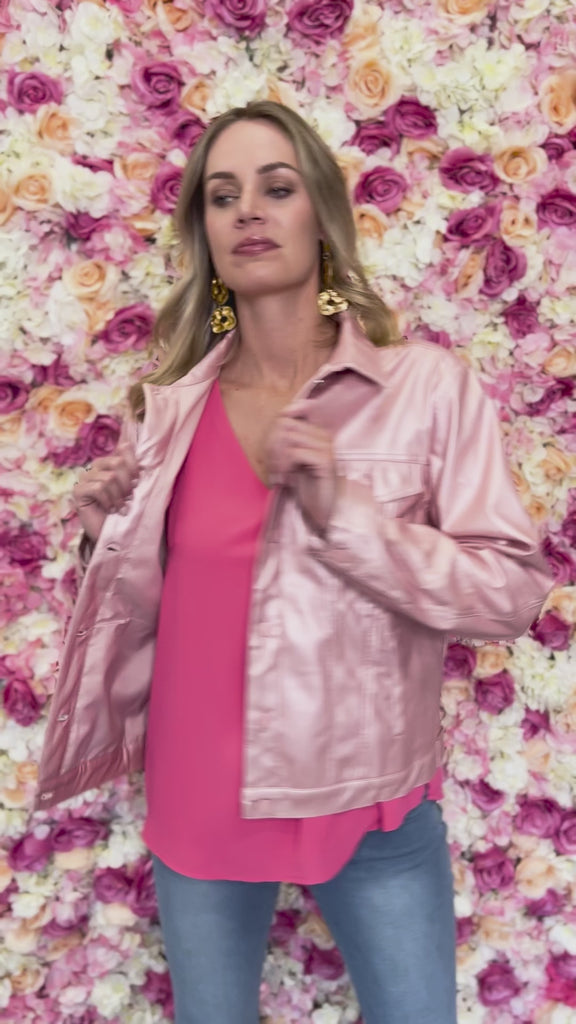 Already a total favourite with the LPD team, the Brigitta Pink Metallic Jacket is here to rock your world, and make a statement!