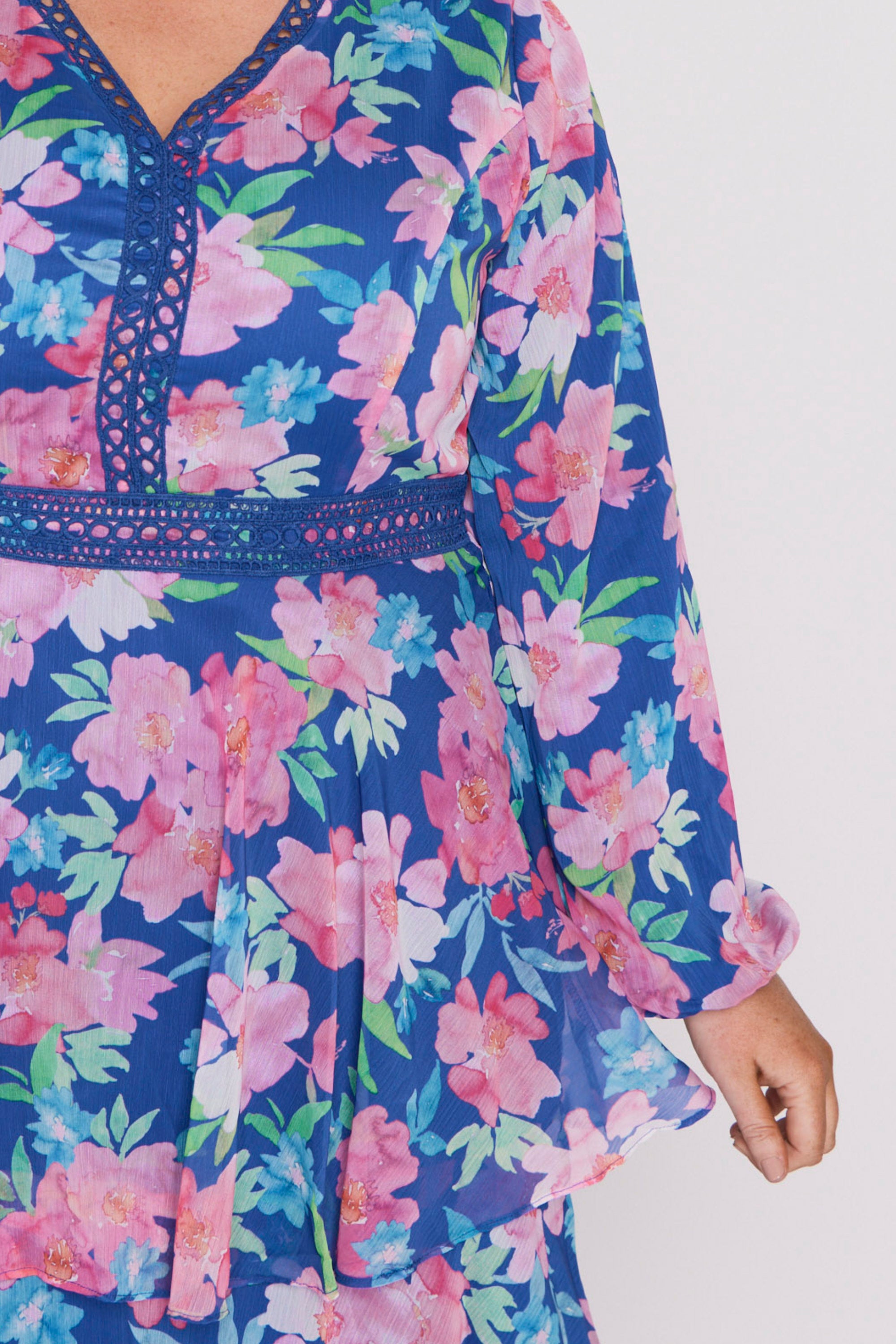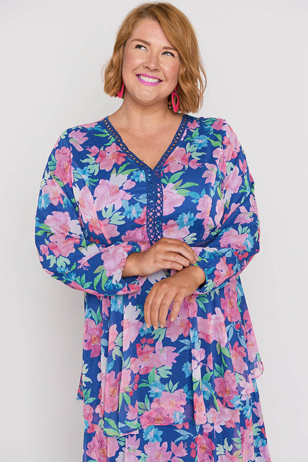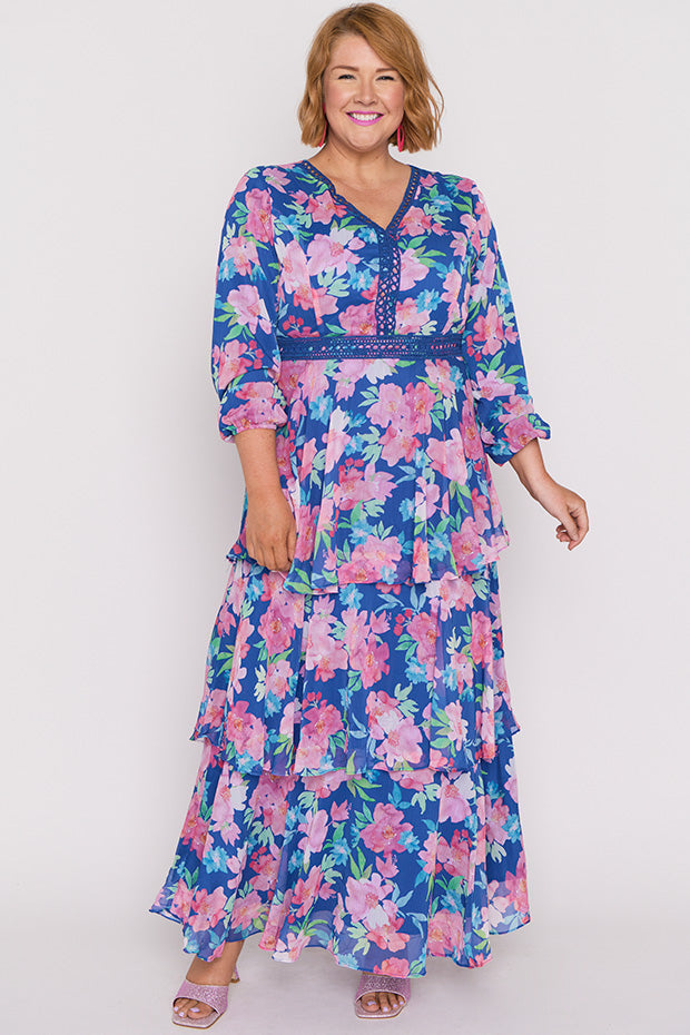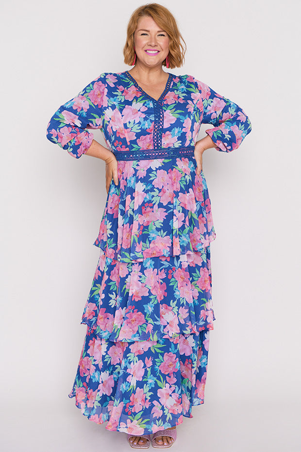 This is a beautiful dress. It is soft, floaty, and has such beautiful colours in it. I found it a bit long but was easy to lift up the petticoat on the last layer.