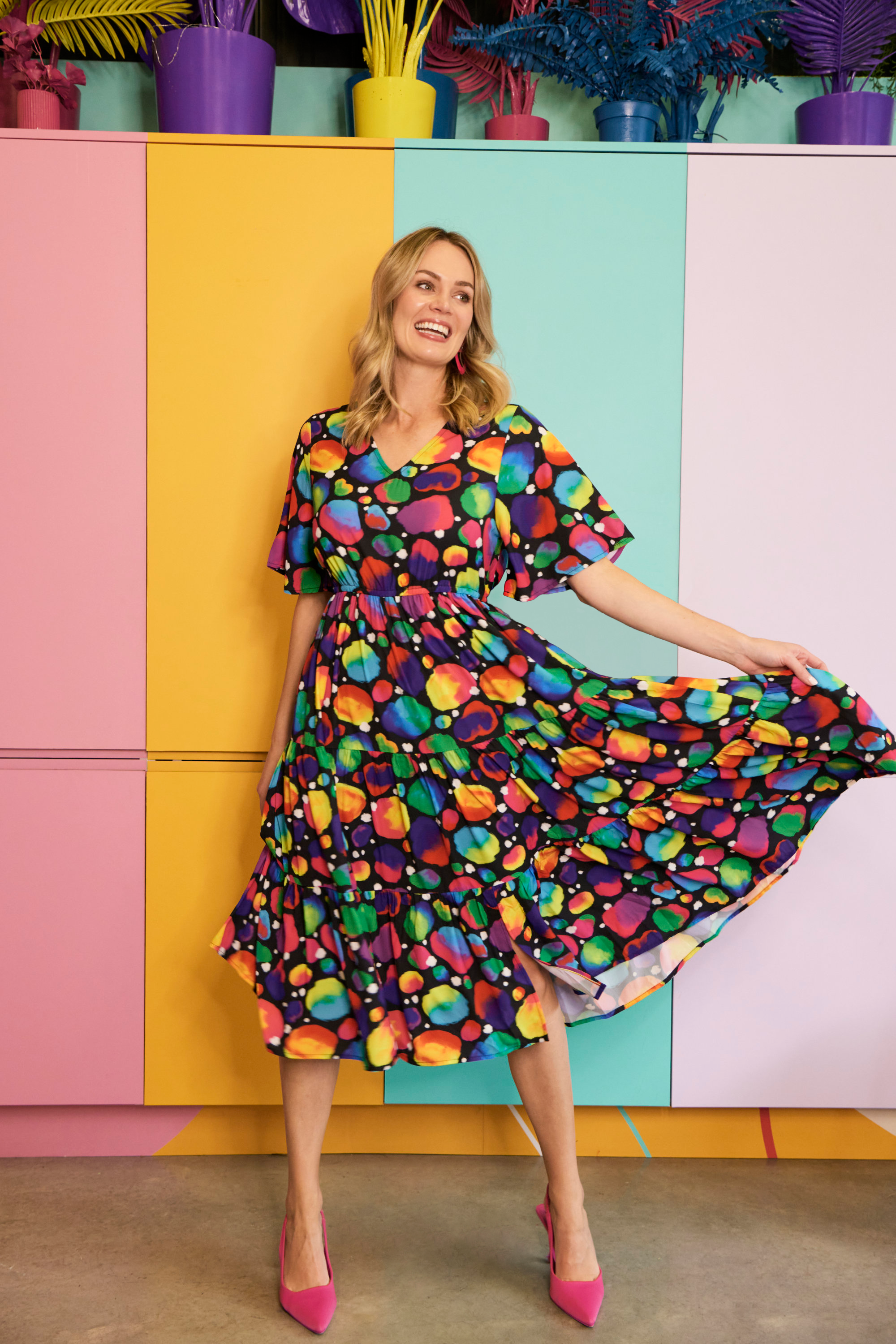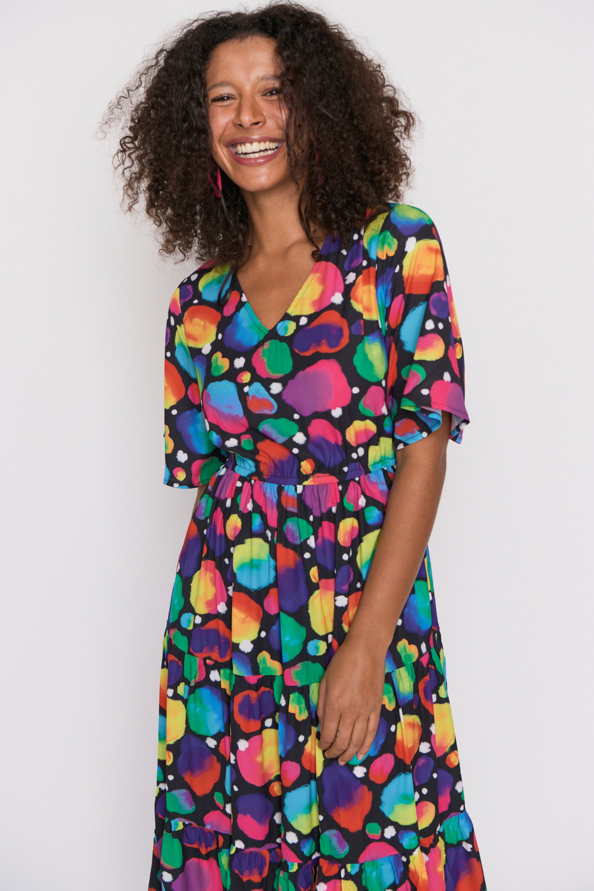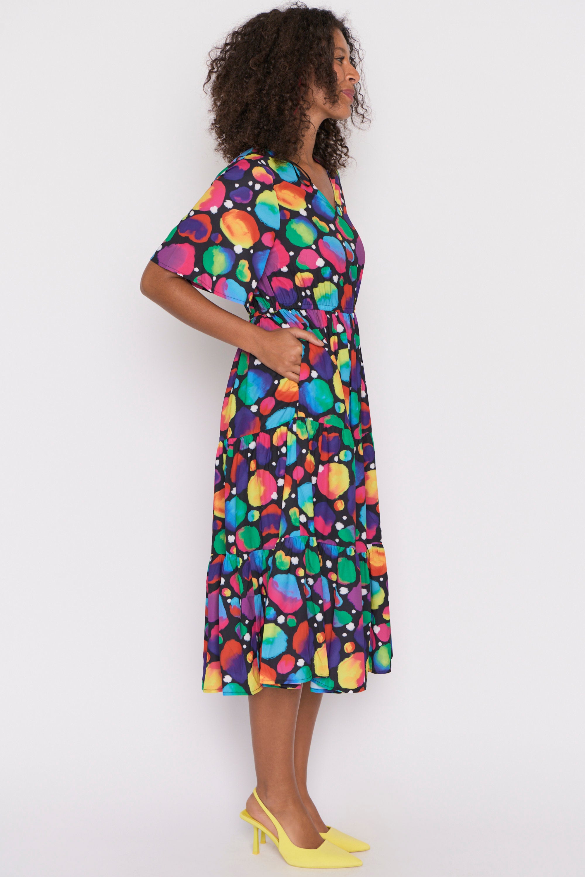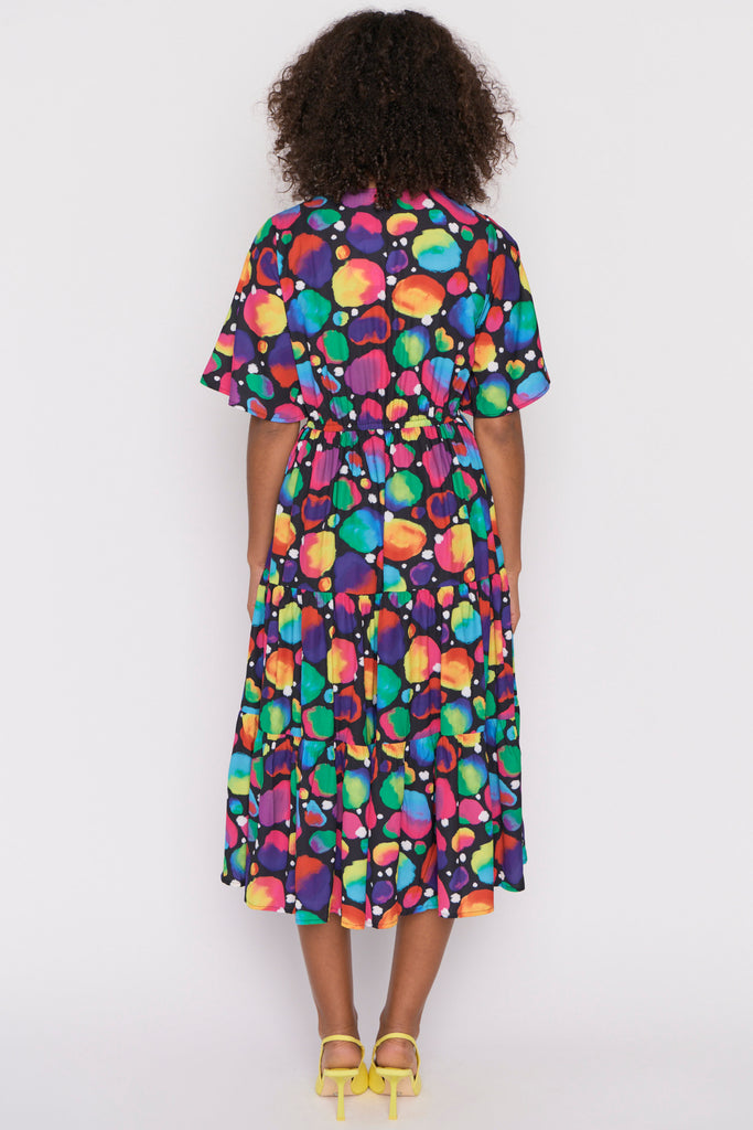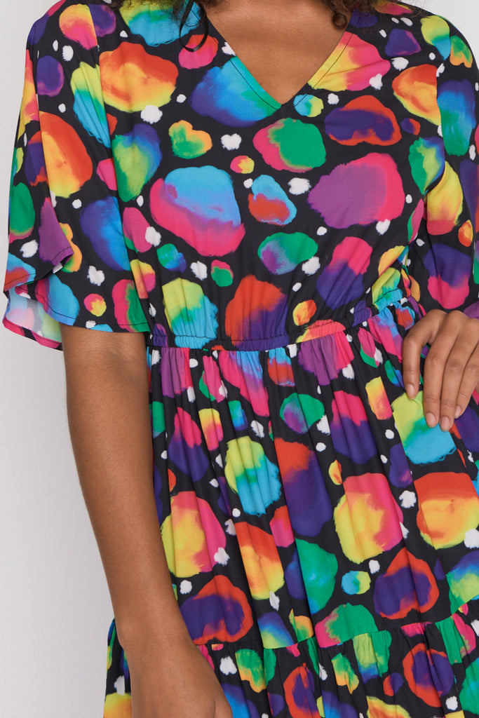 Featuring a V neck & loose flared short sleeves. It has an a-line babydoll shape with a cinched elastic waistline. The tiered skirt falls loosely from the bust and adds volume & a gorgeous silhouette. Don't forget about those hidden pockets and light weight poly fabrication 😍