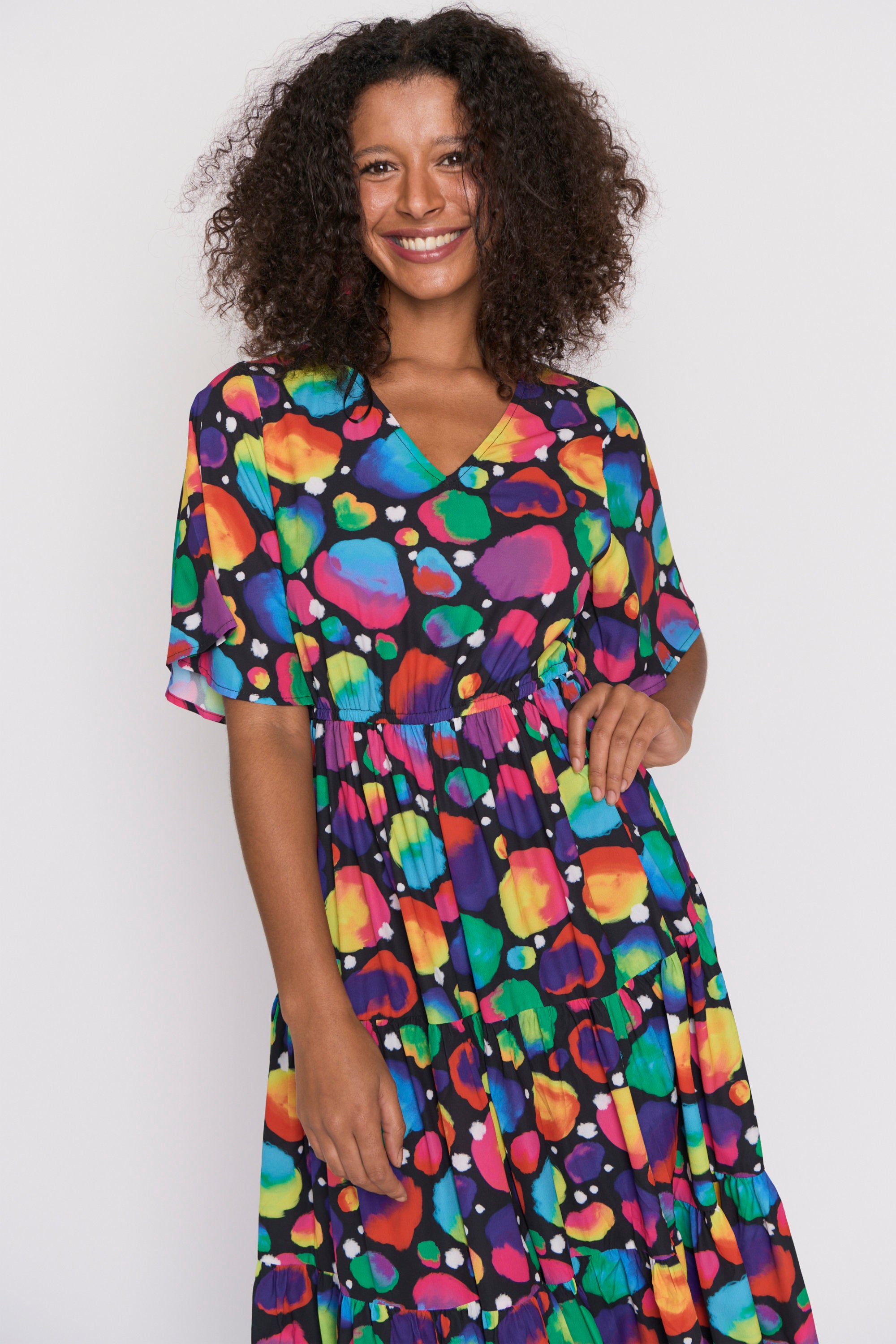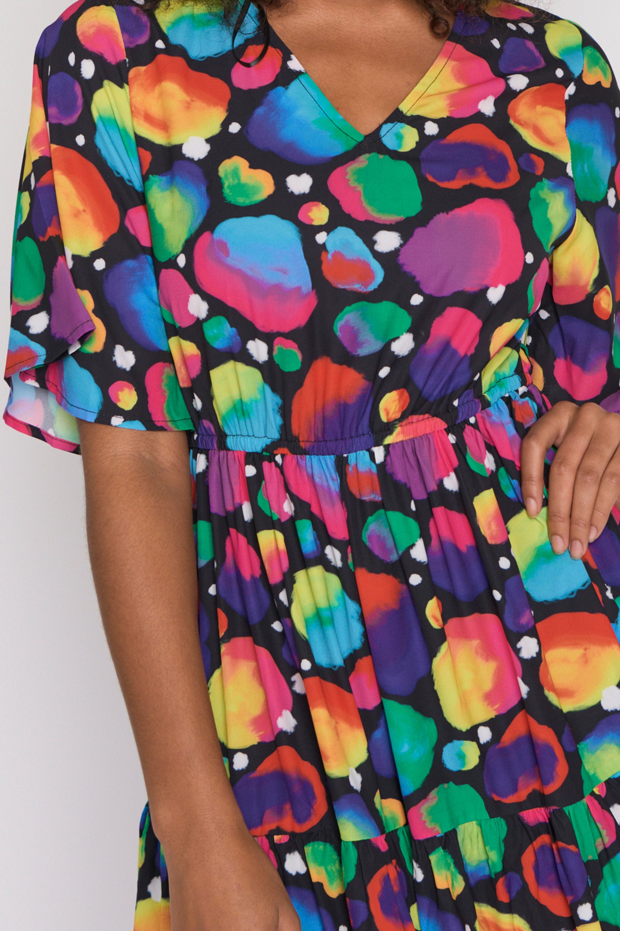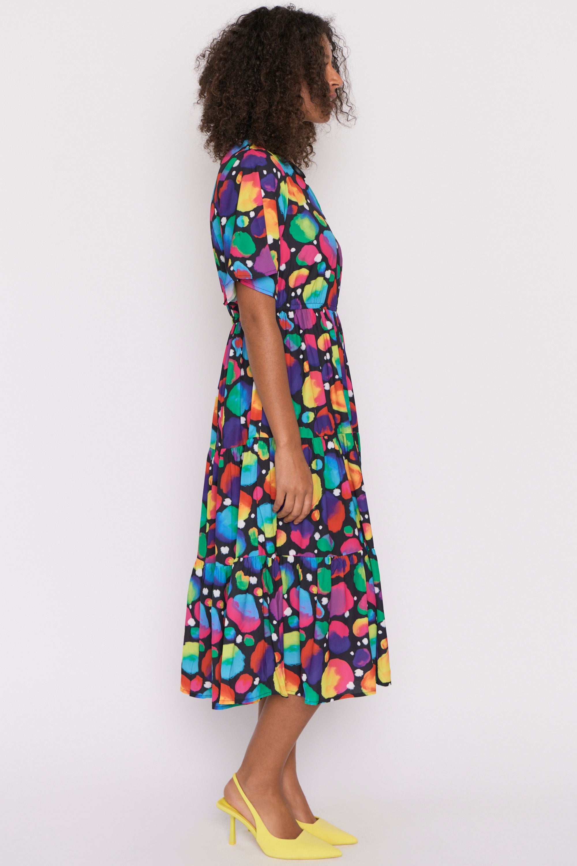 Featuring a V neck & loose flared short sleeves. It has an a-line babydoll shape with a cinched elastic waistline. The tiered skirt falls loosely from the bust and adds volume & a gorgeous silhouette. Don't forget about those hidden pockets and light weight poly fabrication 😍