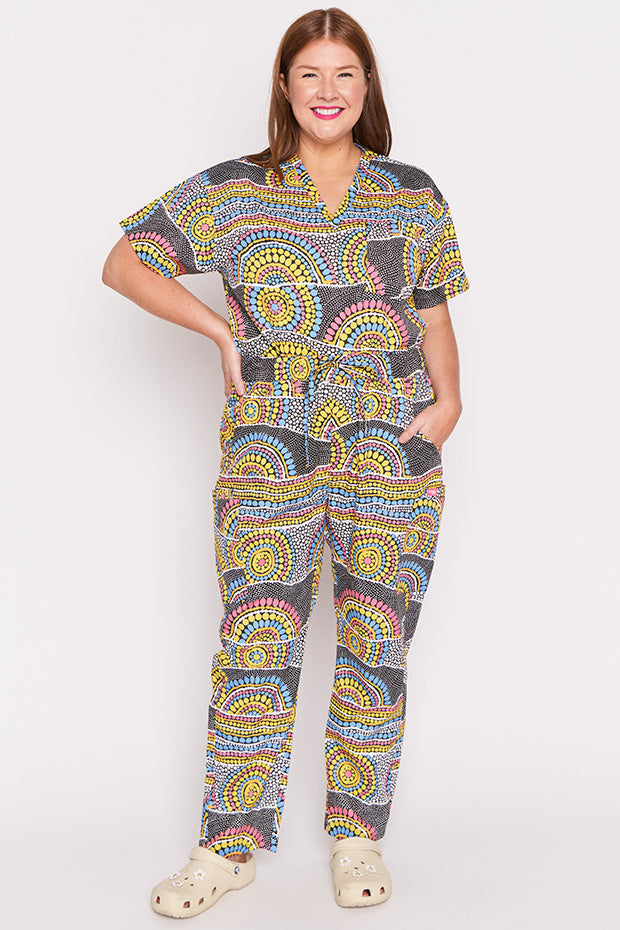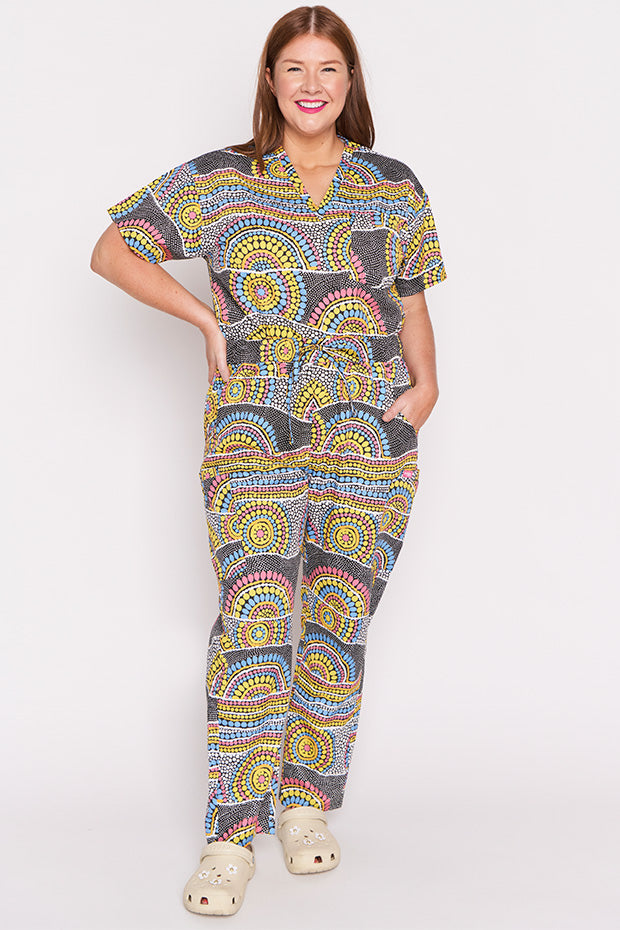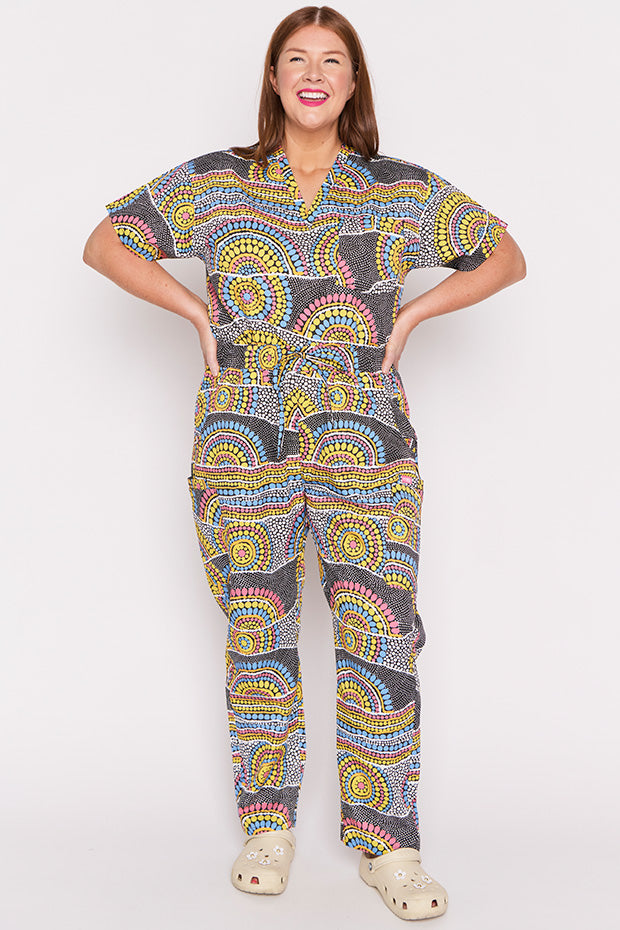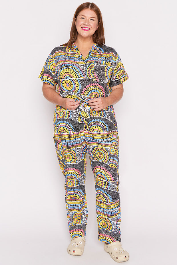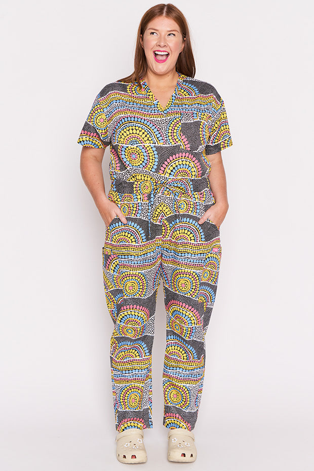 The Cristina Next To You Scrub Pant is made with a super comfy polyester, rayon and elastane blend that moves with you! Featuring a stretchy elastic waist band with a drawstring for the perfect fit every time. This pant has more pockets than you could imagine. Side hip pockets, back pockets and double compartment pockets on the side of each leg!