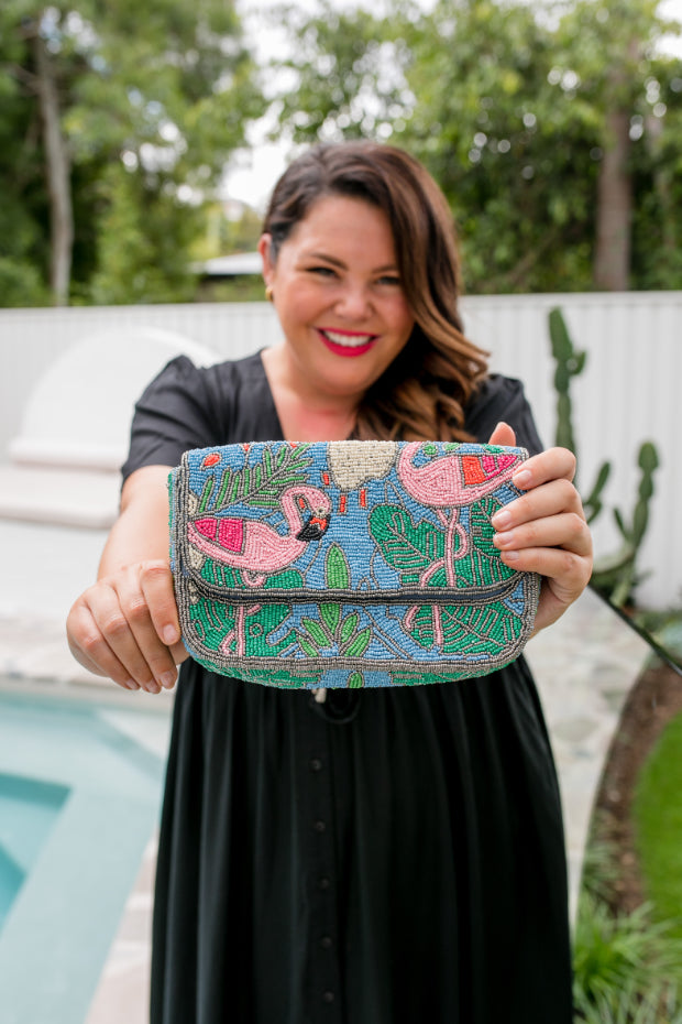 Get funky like a flamingo with our Flamingo Fever Blue Sequin Bag 🦩 Add a bit of sparkle to any look with this stunning sequin party bag🌟