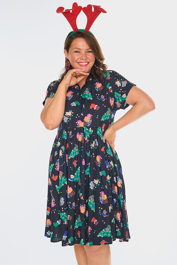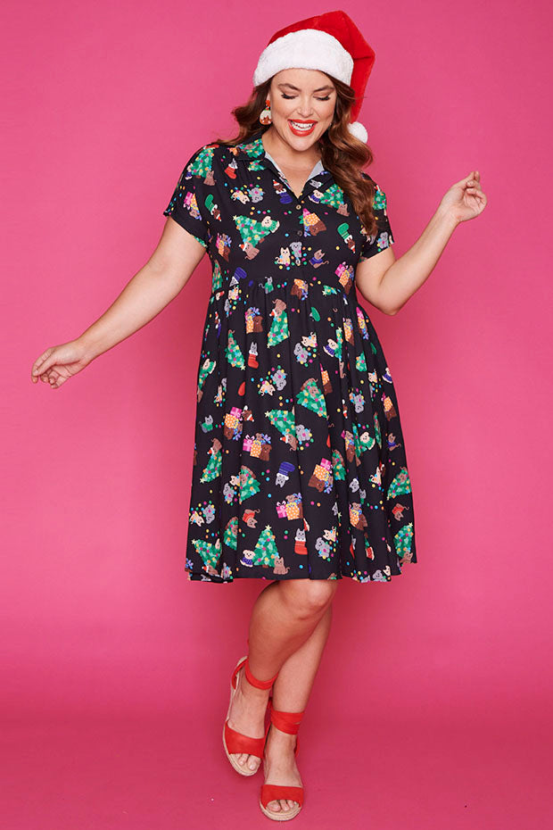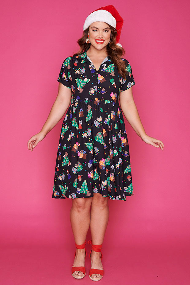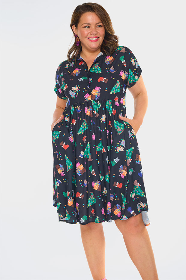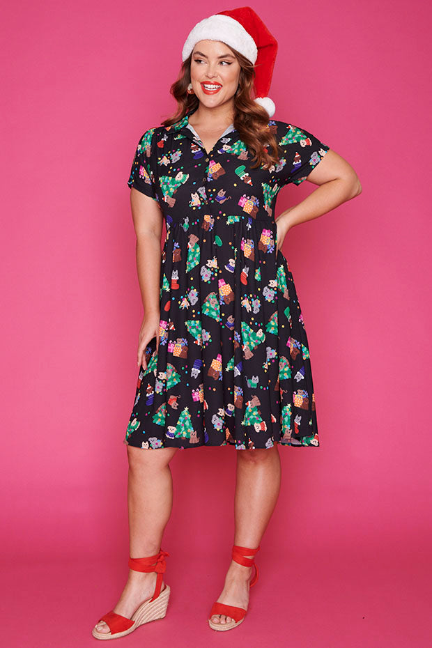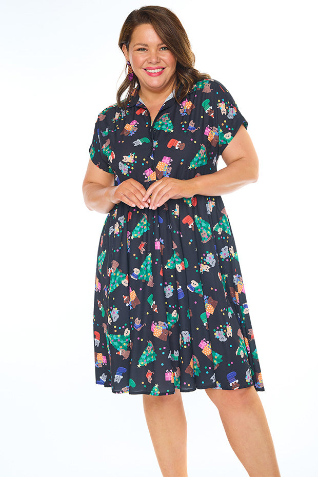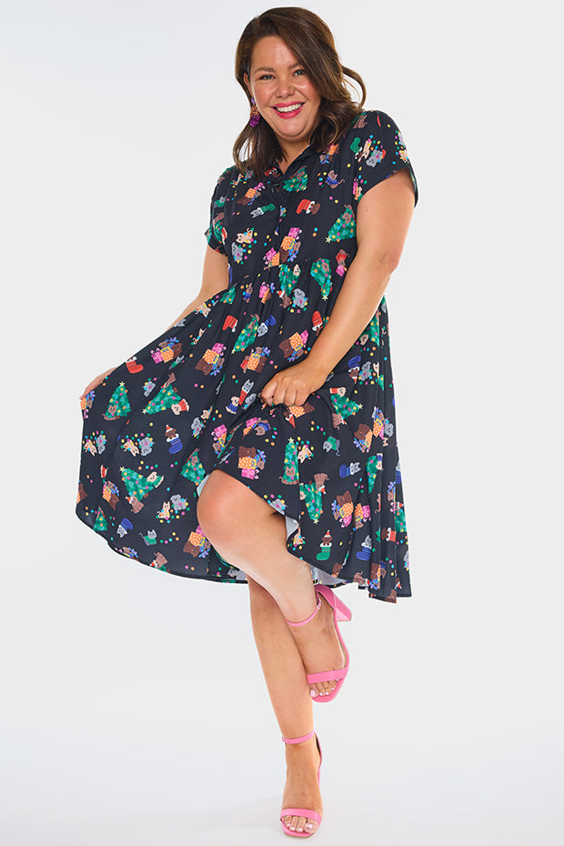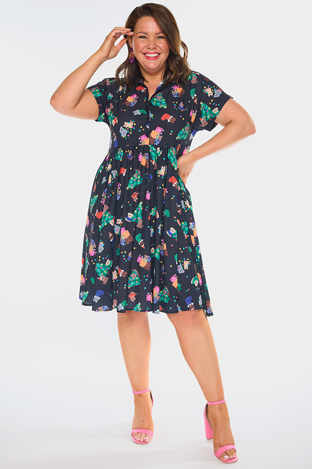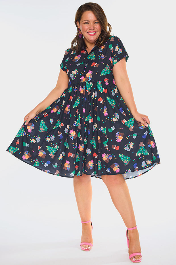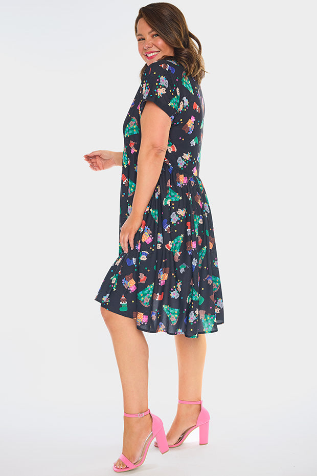 Great cut, flattering waist, cutest pattern! The material is a bit stifling in the Aussie summer, but it's ok because it's so cute!