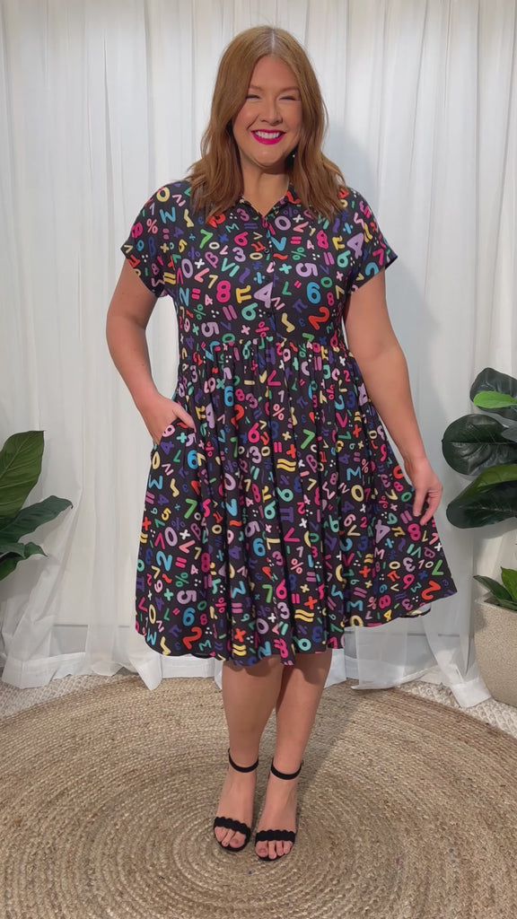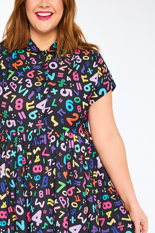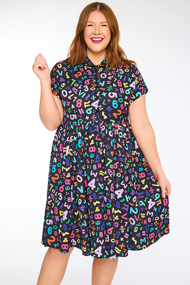 This dress is super comfy and the collar is perfect. As a teacher I love the maths symbols and so do my students. Great length.