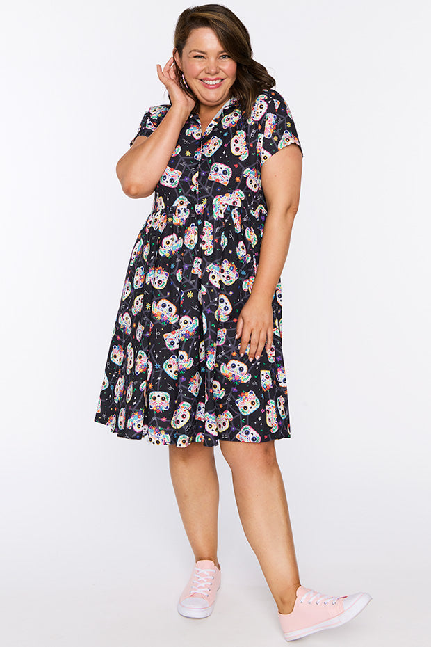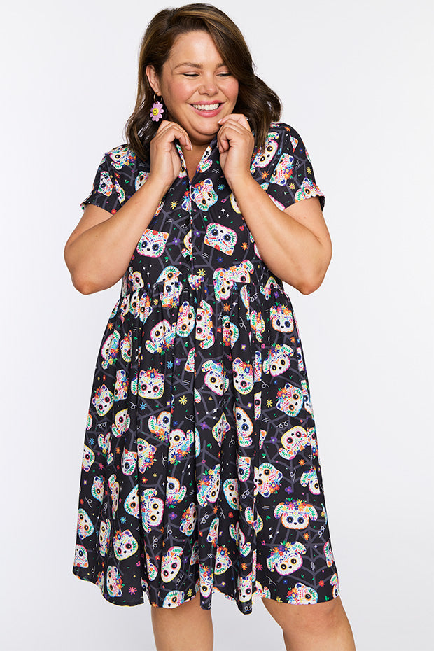 Get into the spooky season with our newest Frankie Sugar Skull Pets Dress! 💀
