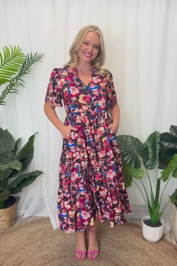 Shine bright in our Hollie Floral Collage Dress ✨🌼