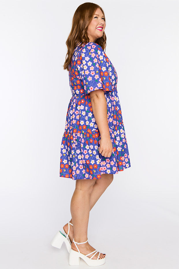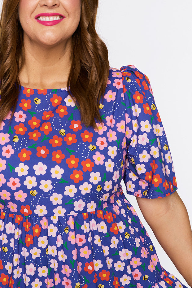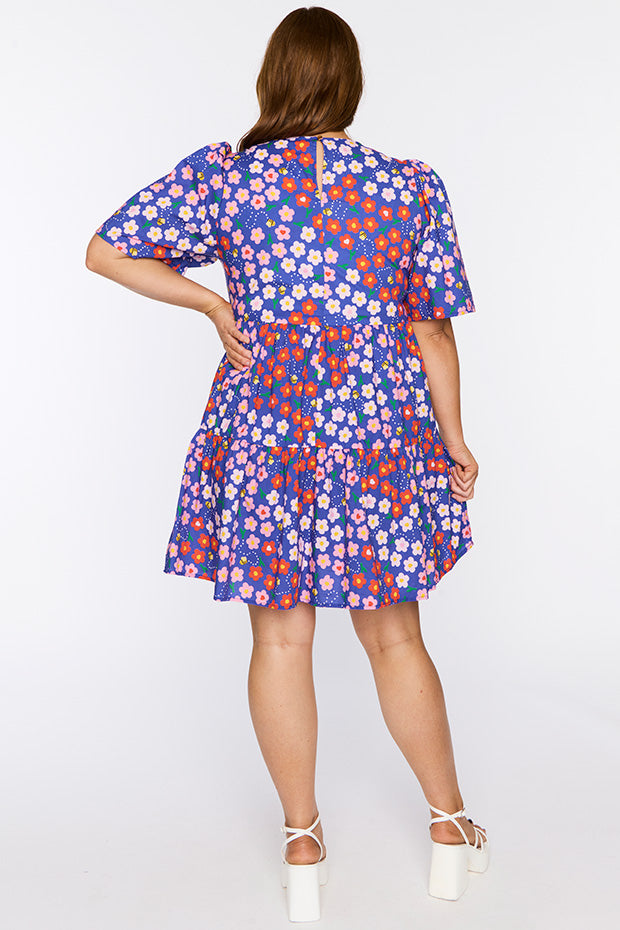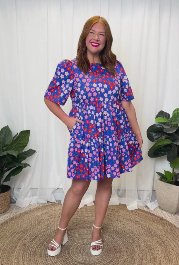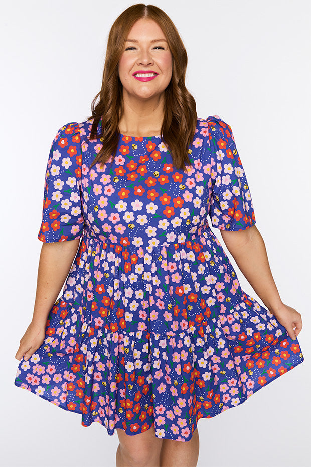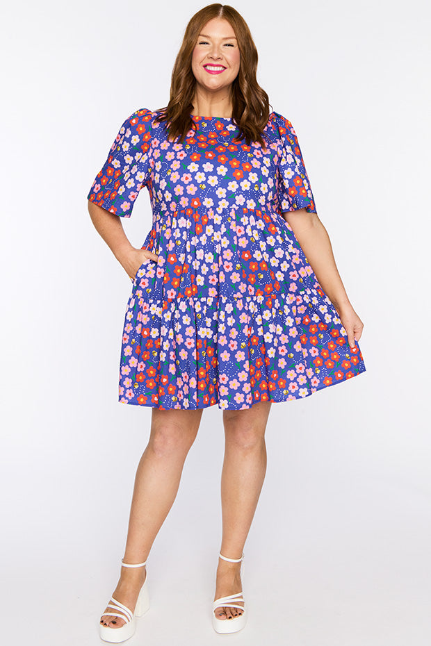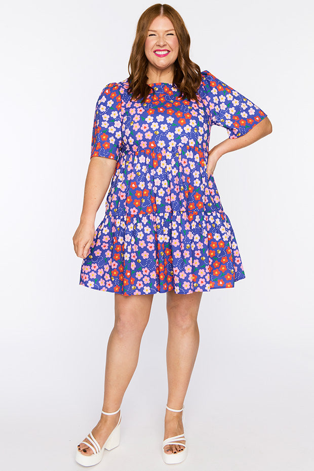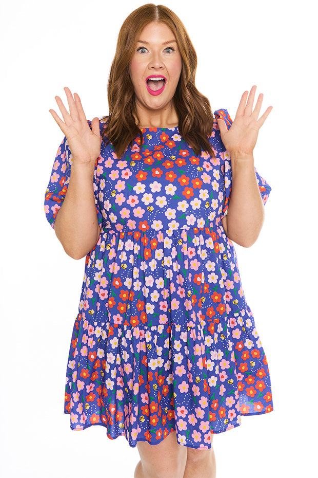 Dress is a generous fit, I wear 16 in some styles but always get away with a 14 in this style and it’s comfortable. Great material too,, cotton type so no static. This pattern is so so pretty and I get many compliments when wearing it. Works well as a teacher dress but also to wear out for a lunch or bbq. Would 100% recommend.
