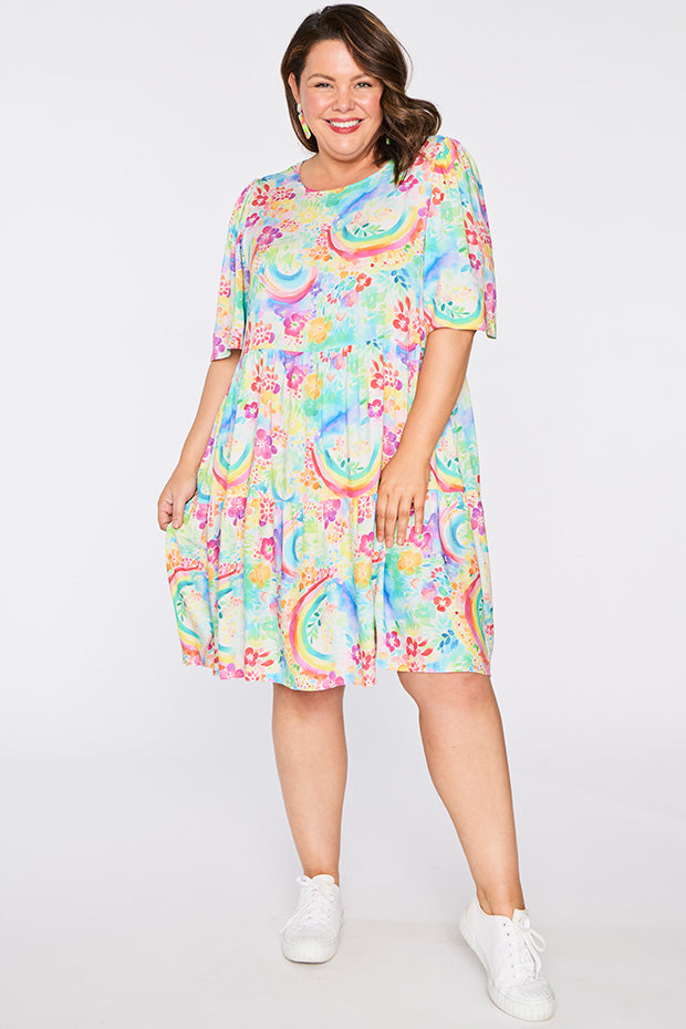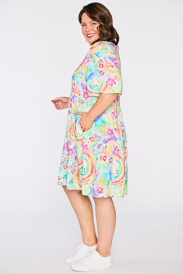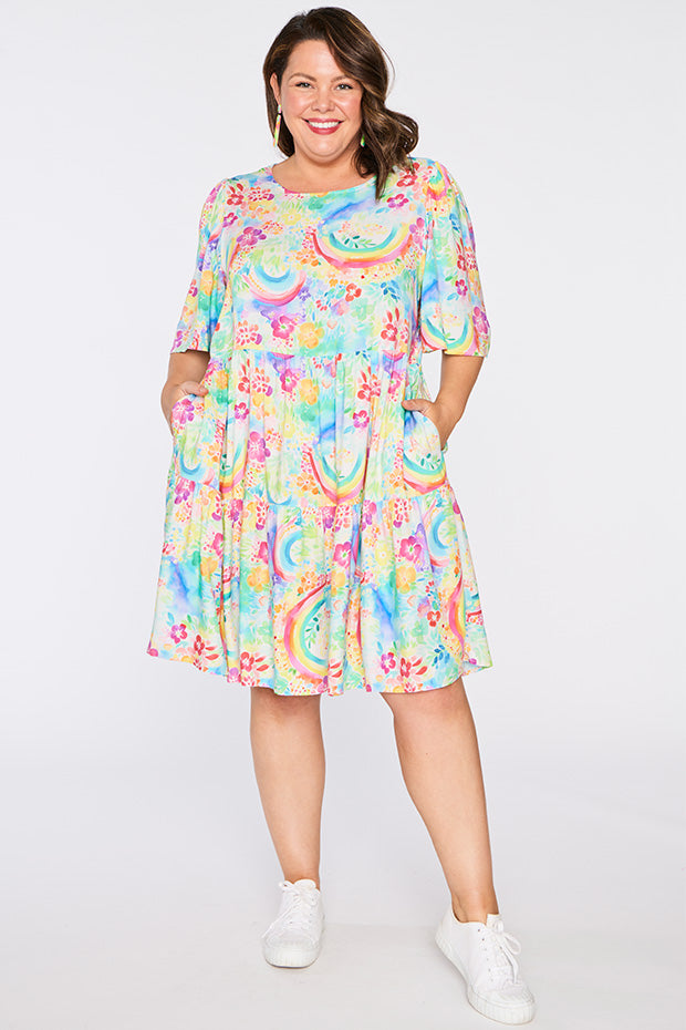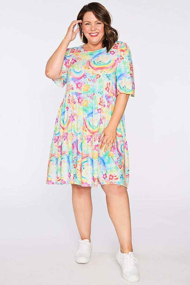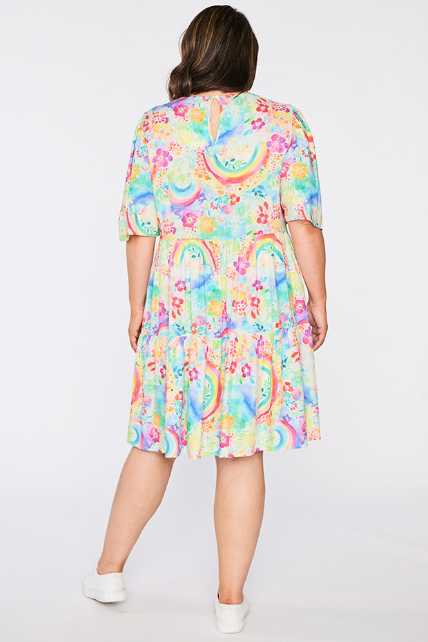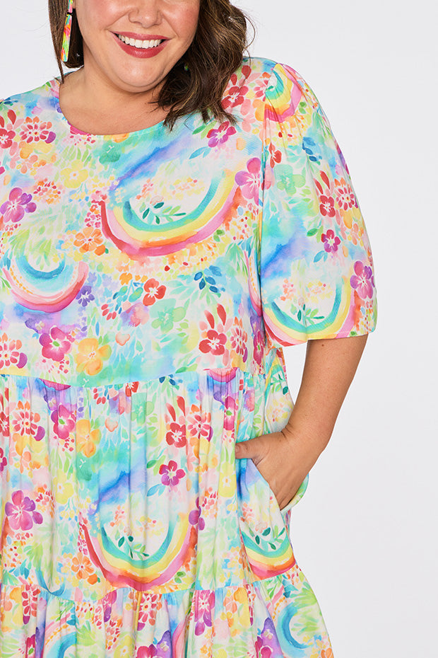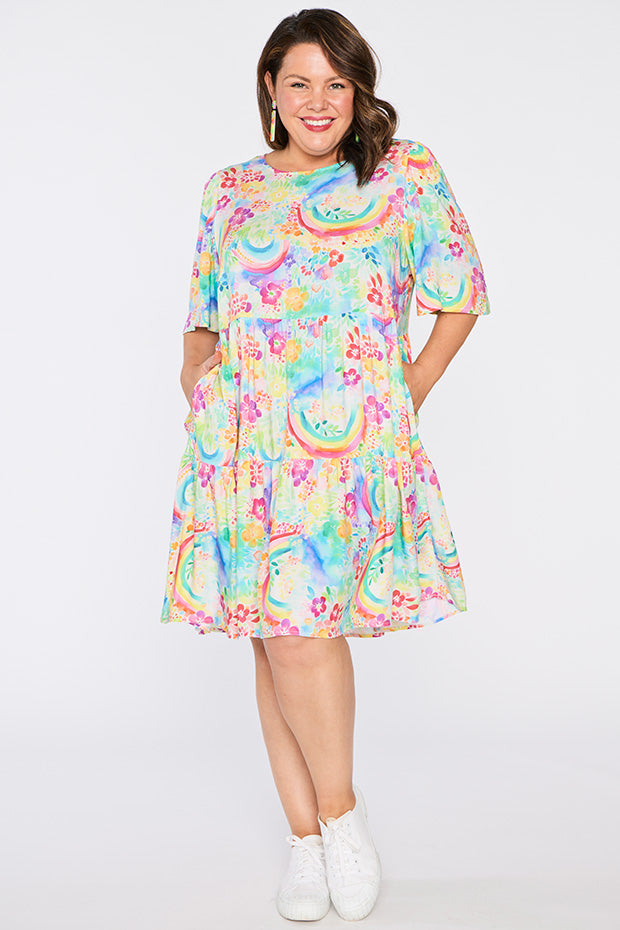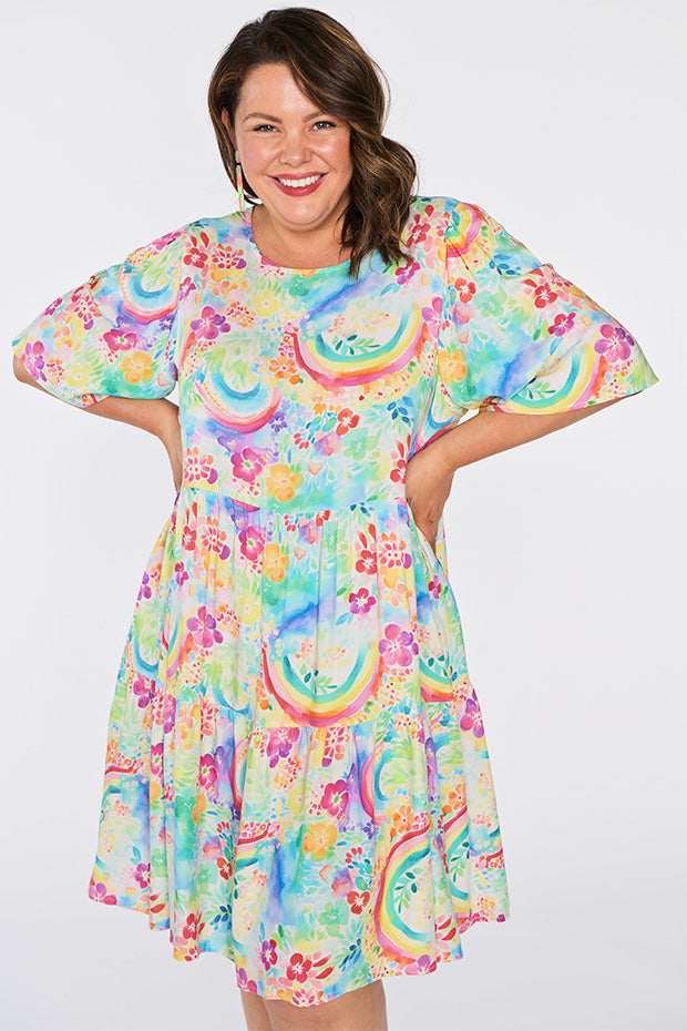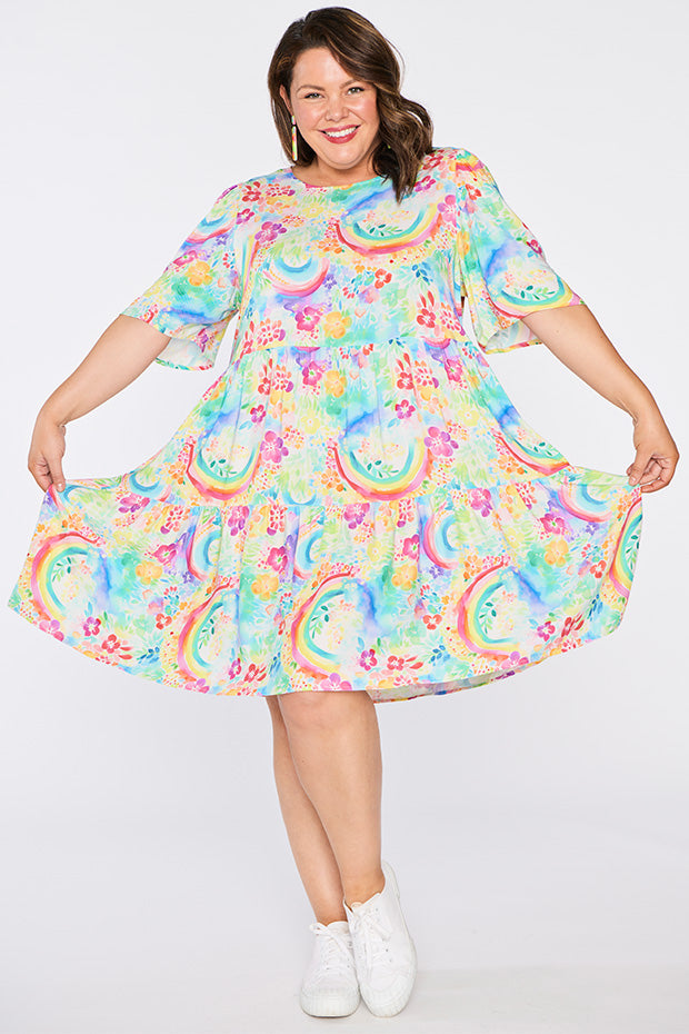 Izzie Rainbow Garden Dress is the versatile & charming wardrobe stunner that we all need! 🌿🌈