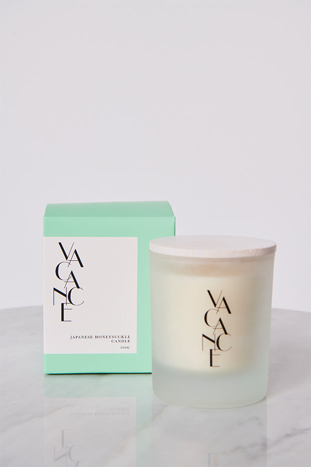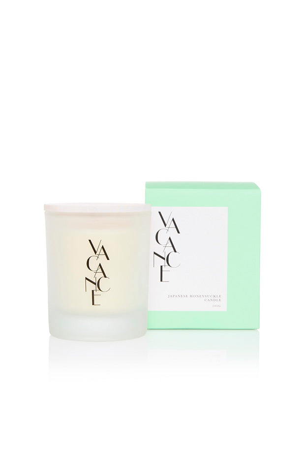 Vacance Japanese Honeysuckle Candle is a fruity floral blend that captures the light-hearted fragrance of the honeysuckle vine. Balanced with mandarin, vanilla and cedarwood, this blend is sweet and intoxicating. Infused with the highest quality fragrance, this custom blended candle will indulge the senses.