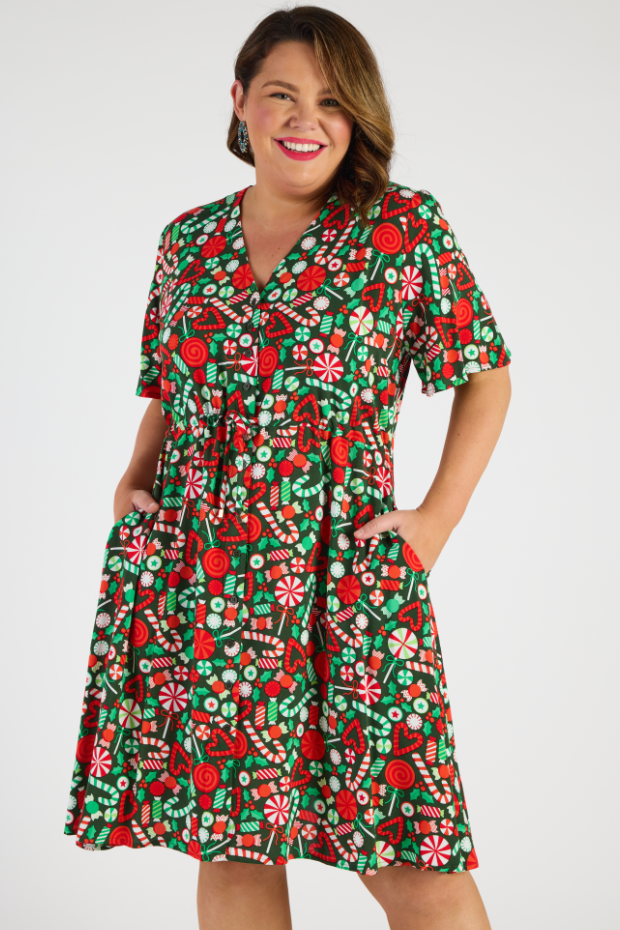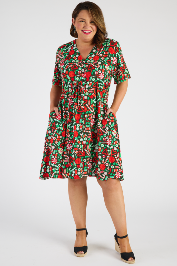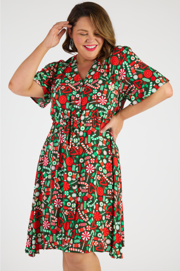 Feel extra sweet this season with our newest Jaz Lollie Christmas Dress 🍬🍭