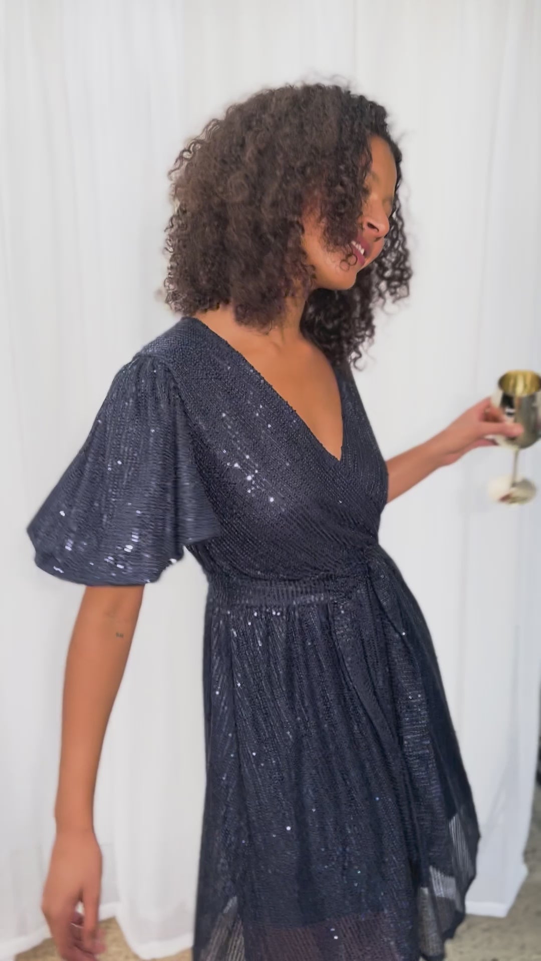 • Due to the delicate nature of sequin fabrics, a small amount of sequins may fall off, not affecting the aesthetic of this stunning piece! We always recommend taking extra care with sequins.