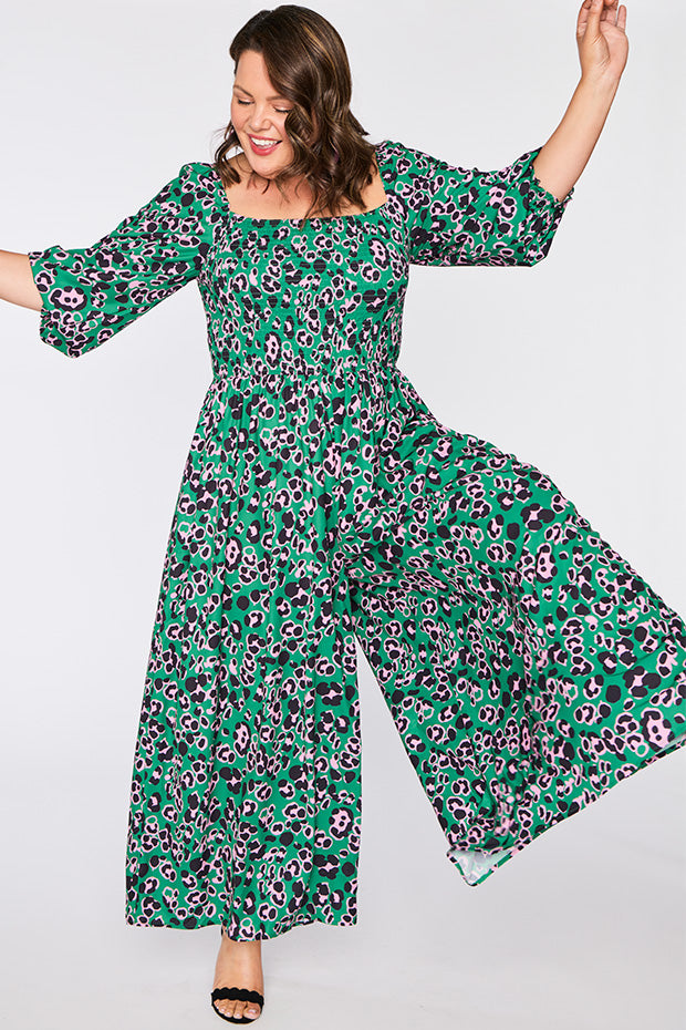 Welcoming your newest wardrobe staple.. the Kiki Green Leopard Jumpsuit 💚🐆