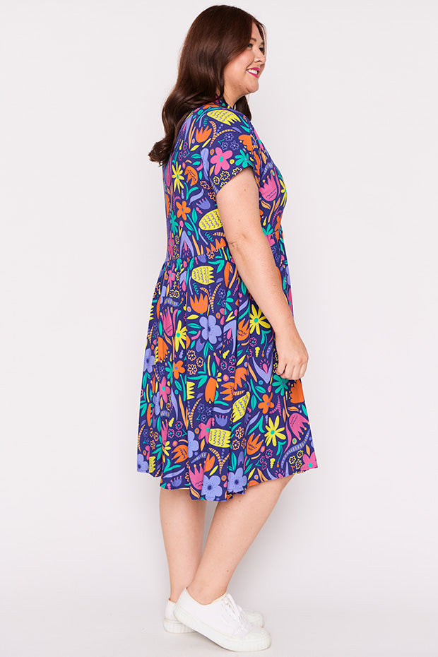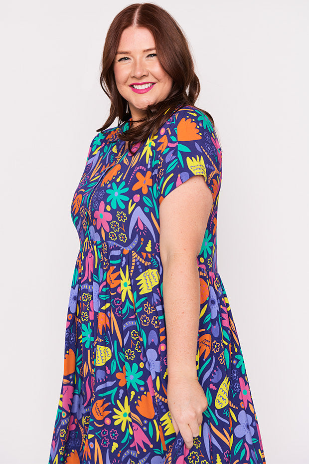 It's spring time all year long in the Kimba Springtime Flowers Dress, a very special collab with the ever-talented artist Annie Coti of Banana Pop Designs ☀️🌸