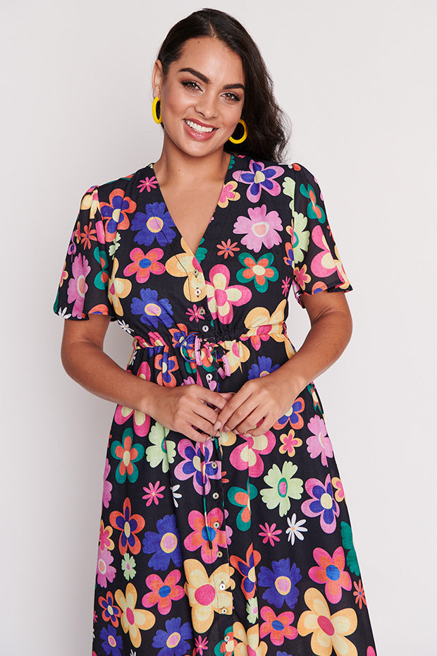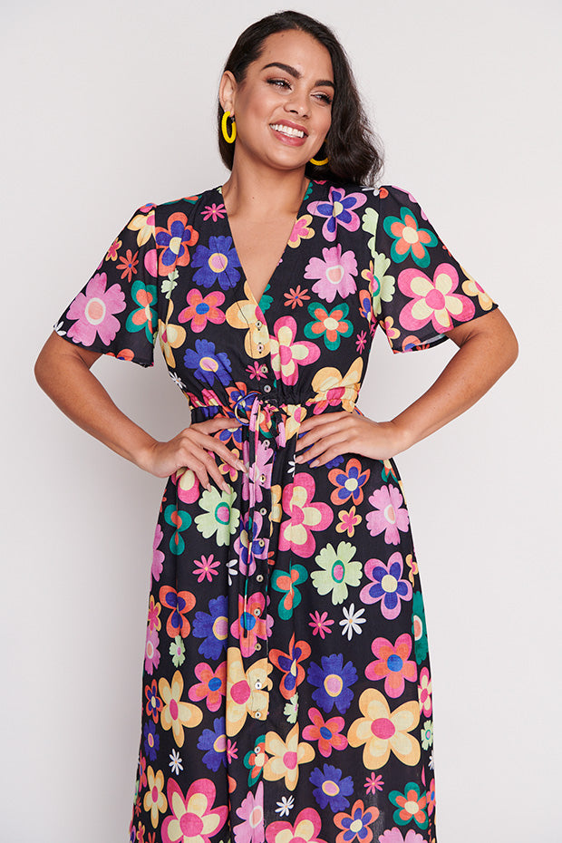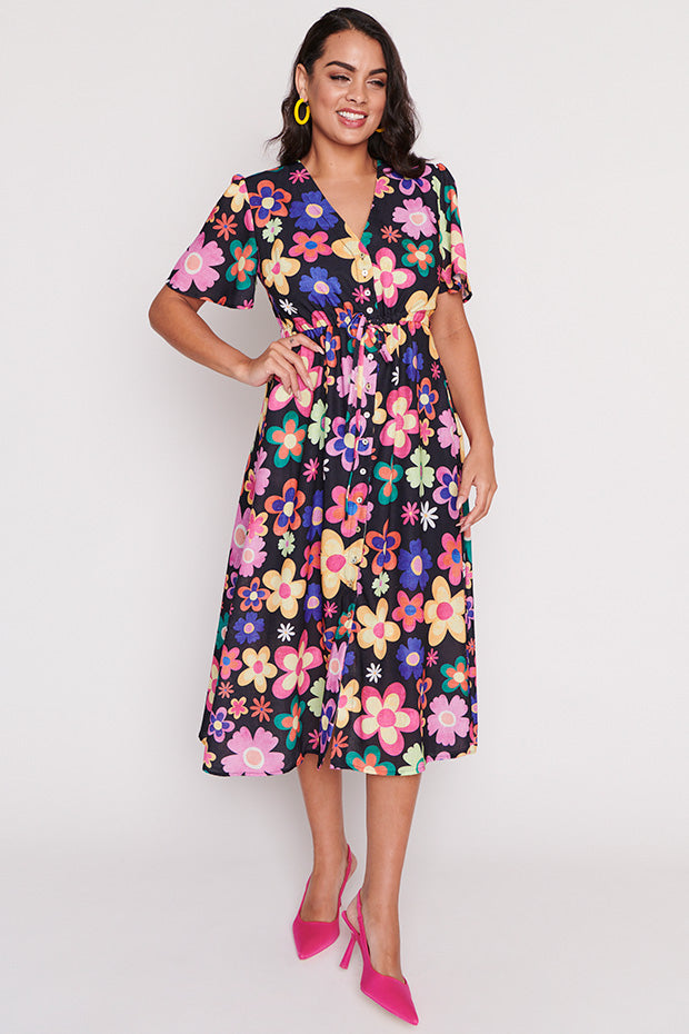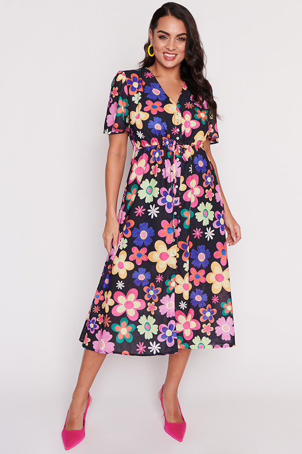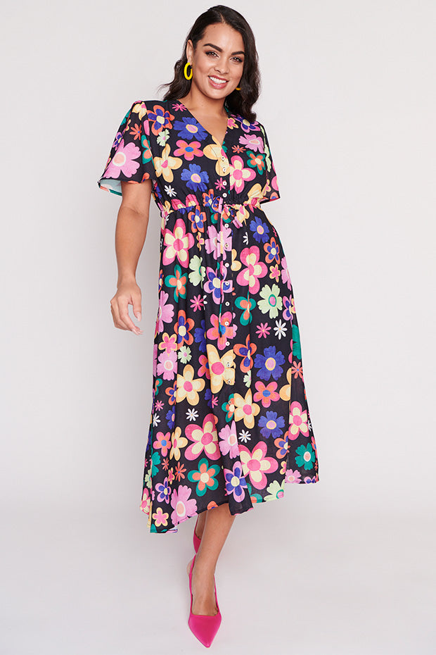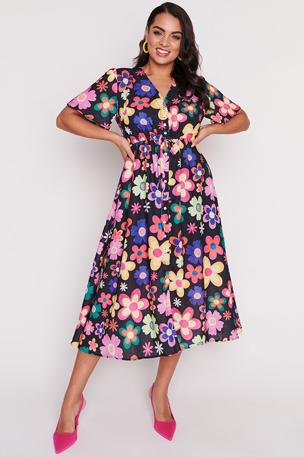 Love this dress, great fit, lovely bright dress, great fabric, love it.