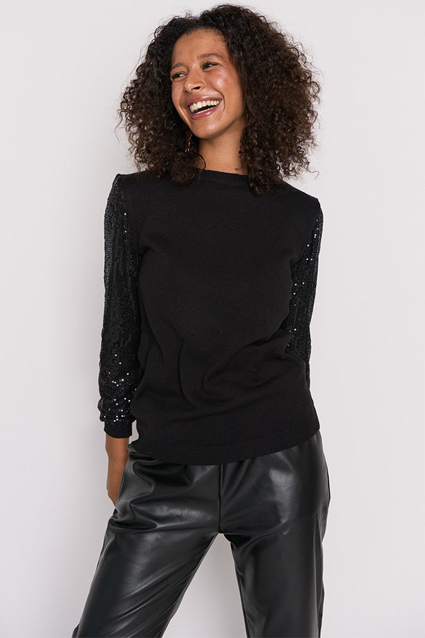 Featuring a viscose blend, cozy standard jumper fit, with gorgeous sequin sleeves. Larrah is guaranteed to elevate any outfit 😍